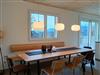 Wohn- und Essbereich: Ausstattung: Esstisch mit Sitzbank und Stühlen, Couch mit Leinwand-Smart-TV, Gesellschaftsspiele, diverse Literatur