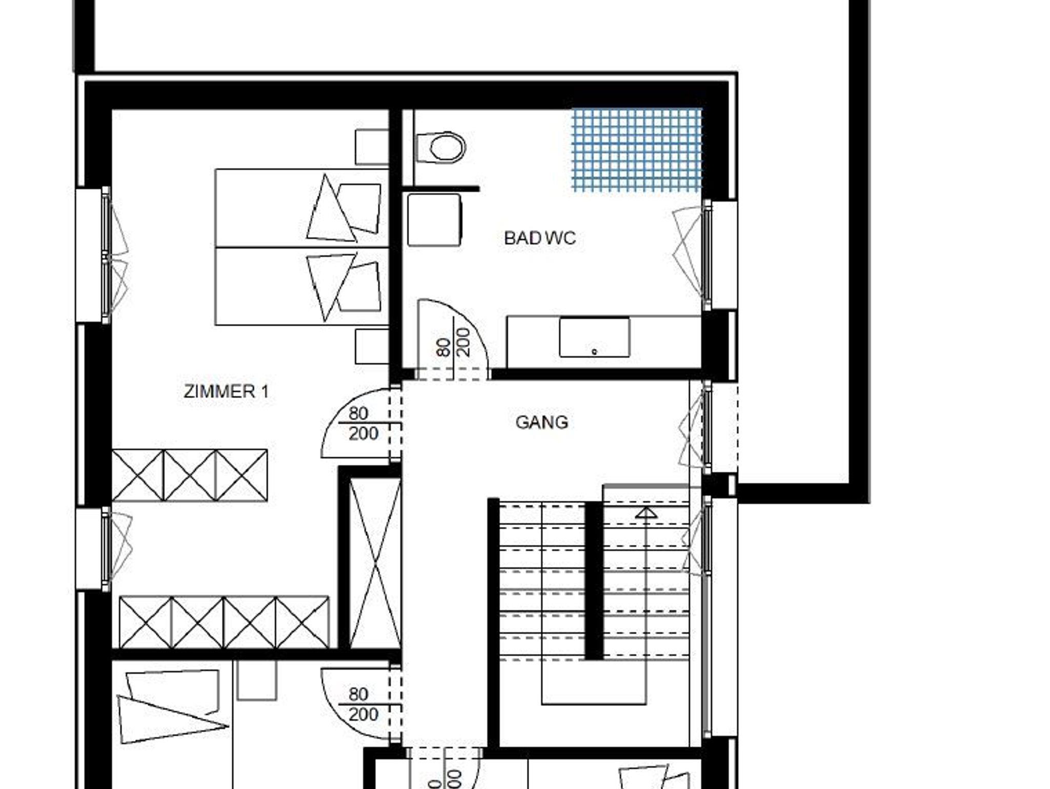 1 Badezimmer im OG: Ausstattung: Dusche, WC, Fön