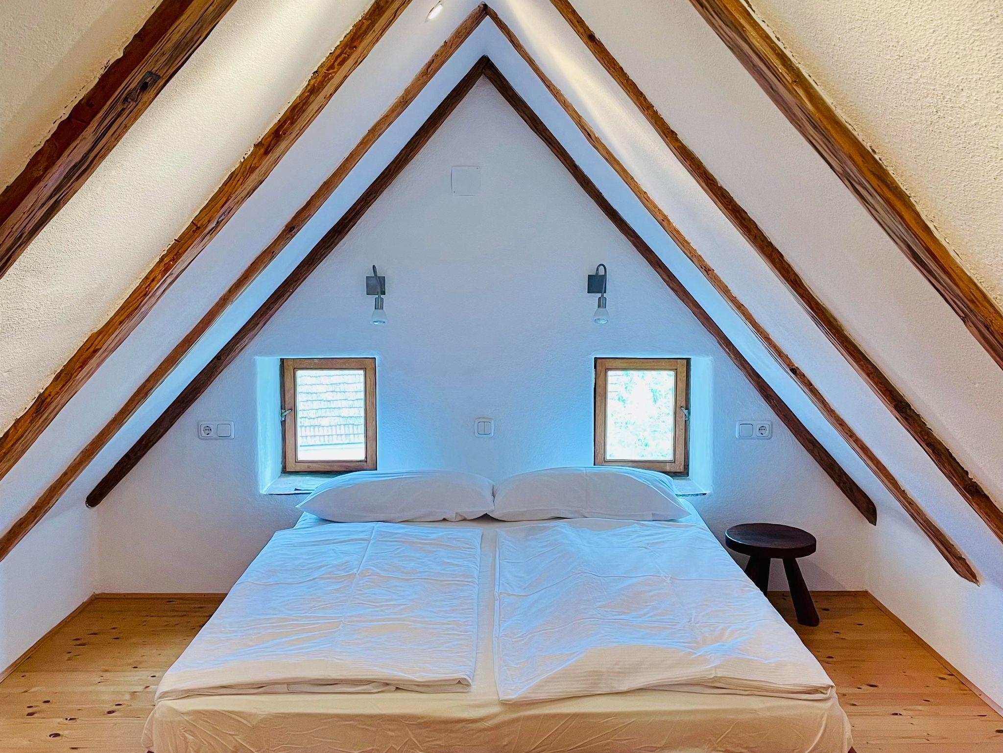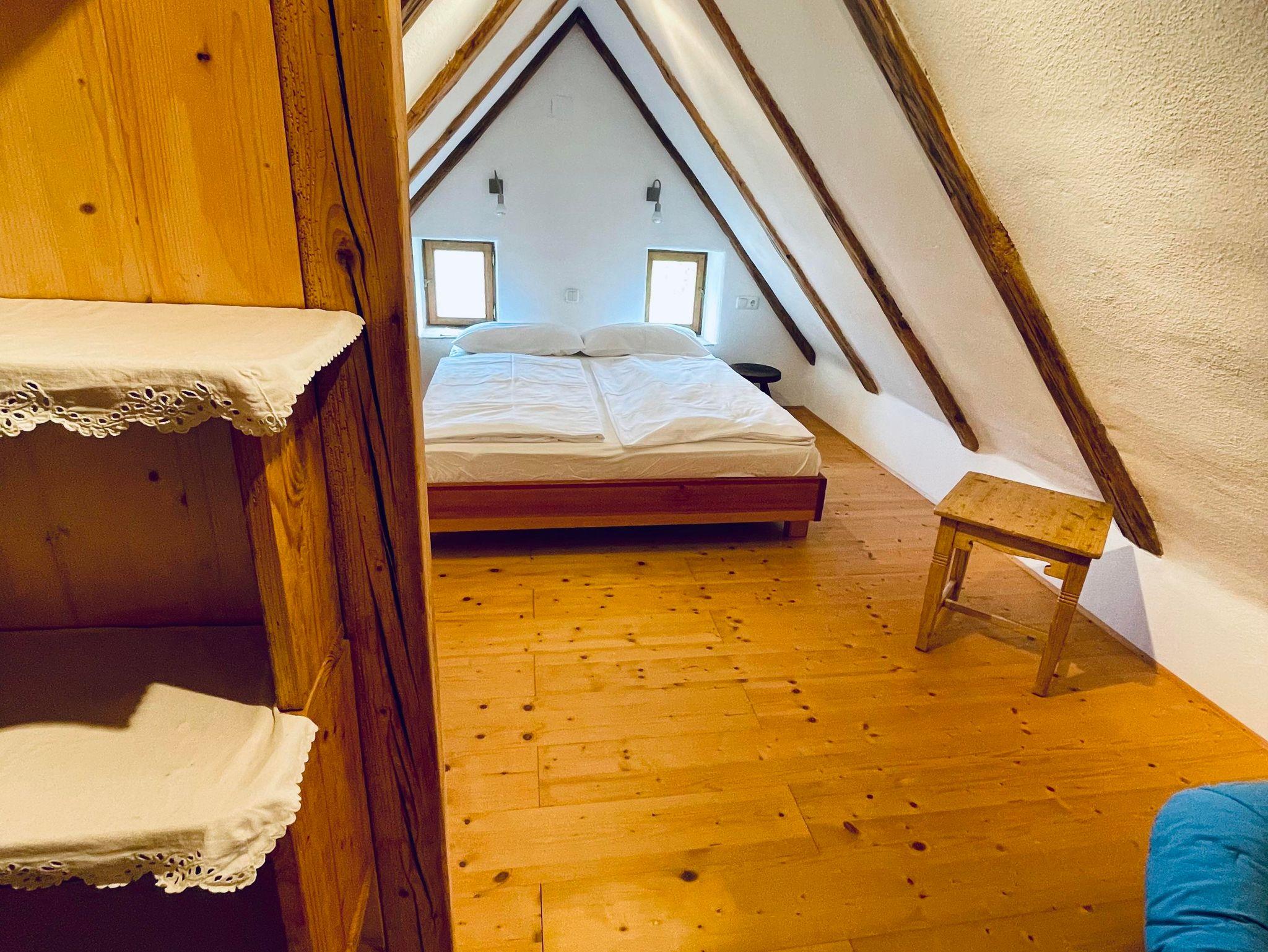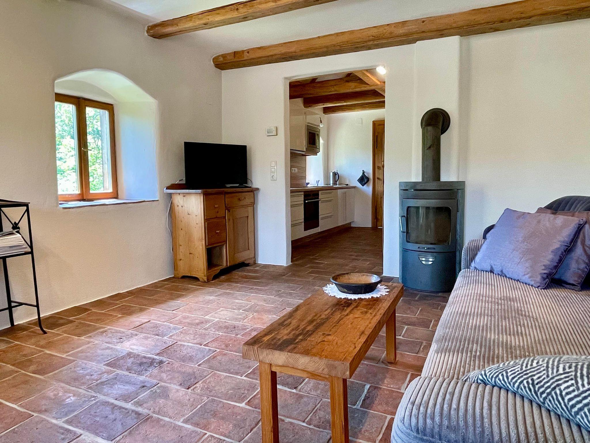 Im Haus finden Sie eine gut ausgestattete Küche, helles Bad, 2 WCs, Wohnzimmer und 2 Schlafräume unter dem Dach. Nichtraucherhaus. Ein schattiger, von Bäumen umgebener Garten mit Holzliege und eigenem Sitzplatz gehört Ihnen alleine. Eine alte Steinbank an der Hausmauer, Schwimmteich mit Holzsteg, Bocciabahn mit Sitzplatz und ein Lagerfeuerplatz laden zum Relaxen ein.