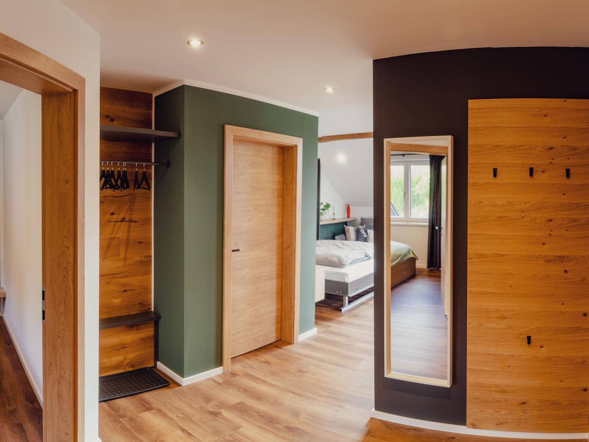 Die 60m2 teilen sich auf in einen Eingangsbereich, einem Schlafzimmer, einem Badezimmer und einem geräumigen Wohnraum. Im Wohnraum befinden sich Küche, Essbereich, Couch + Fernseher sowie ein hochwertiges Klappbett und Zugang zum Balkon.