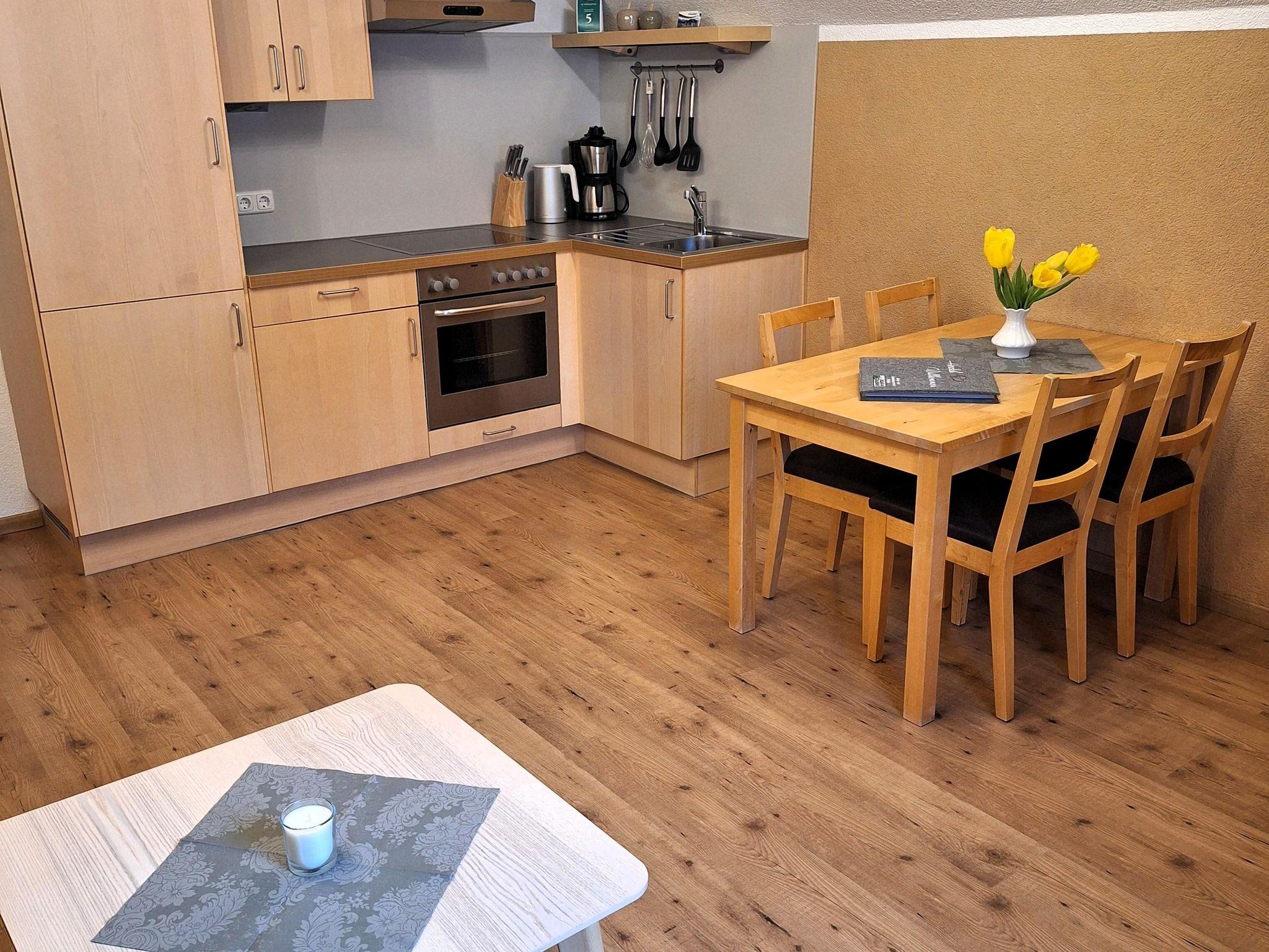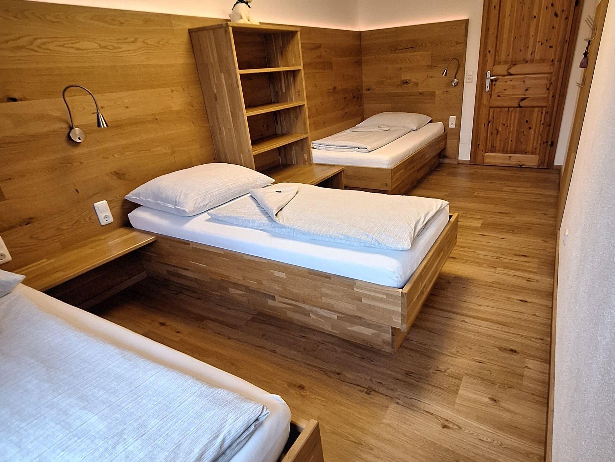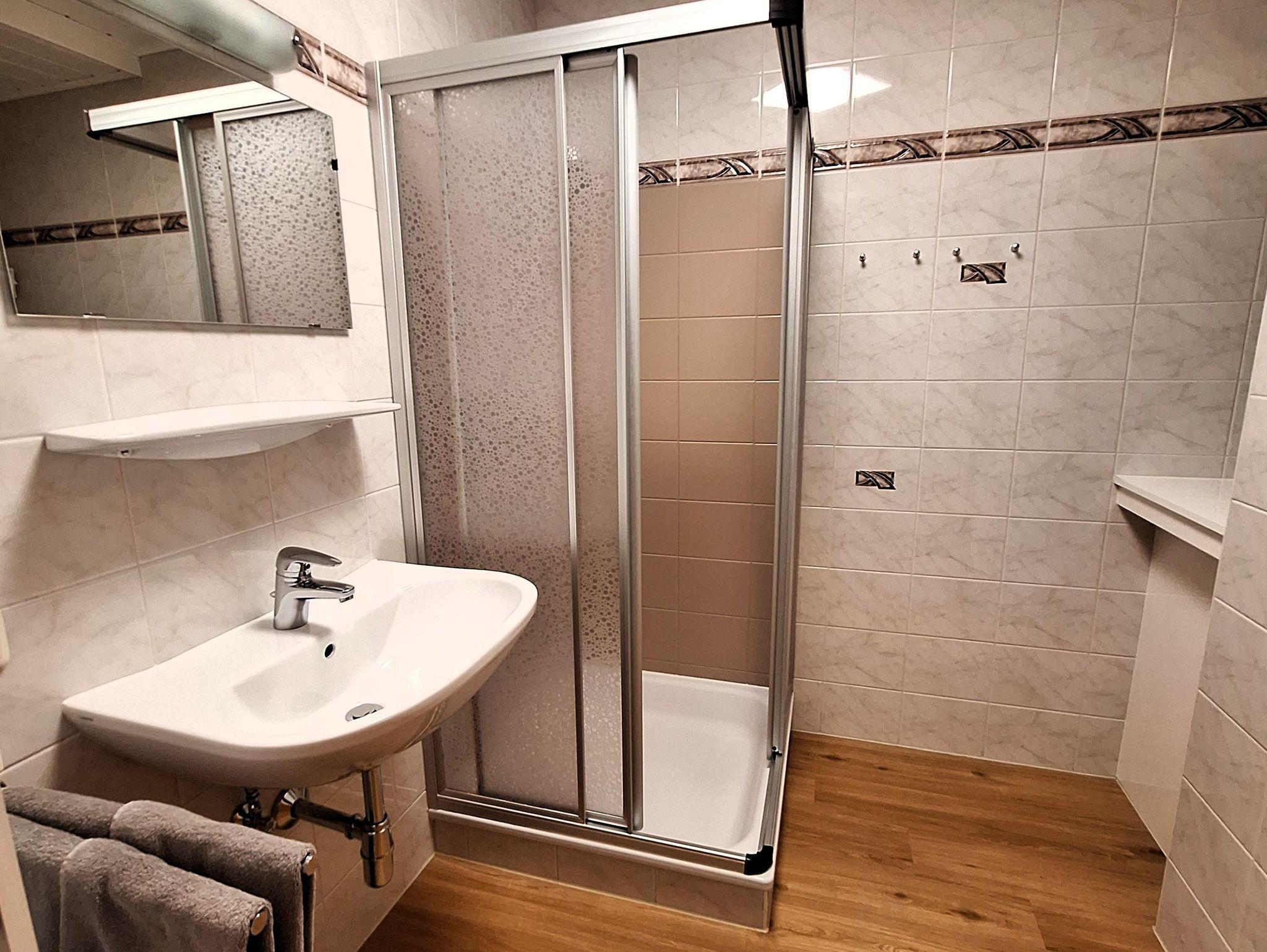 Geräumige Ferienwohnung mit 70m² für 1-7 Personen. Die Wohnung ist ausgestattet mit einem Vorraum, Dusche, WC getrennt, eine Küche mit Geschirrspüler und Mikrowelle, Essecke, ein Wohnraum mit ausziehbarer Couch und TV, ein Doppelbettzimmer mit Balkon und ein Kinderzimmer mit 3 Einzelbetten. Die Wohnung befindet sich im 1. Stock.