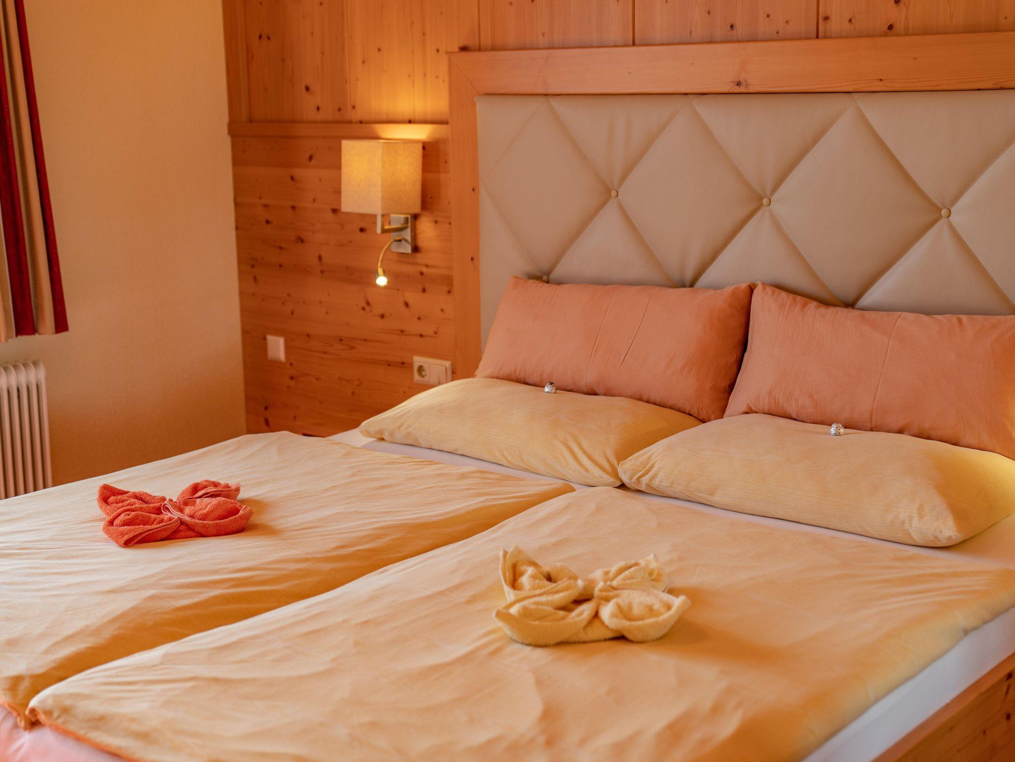 Ländlich eingerichtete Doppelzimmer mit Zustellbett, Dusche/WC, Balkon, Kühlschrank, Zimmersafe, Kabel-TV, Fön und Radio.