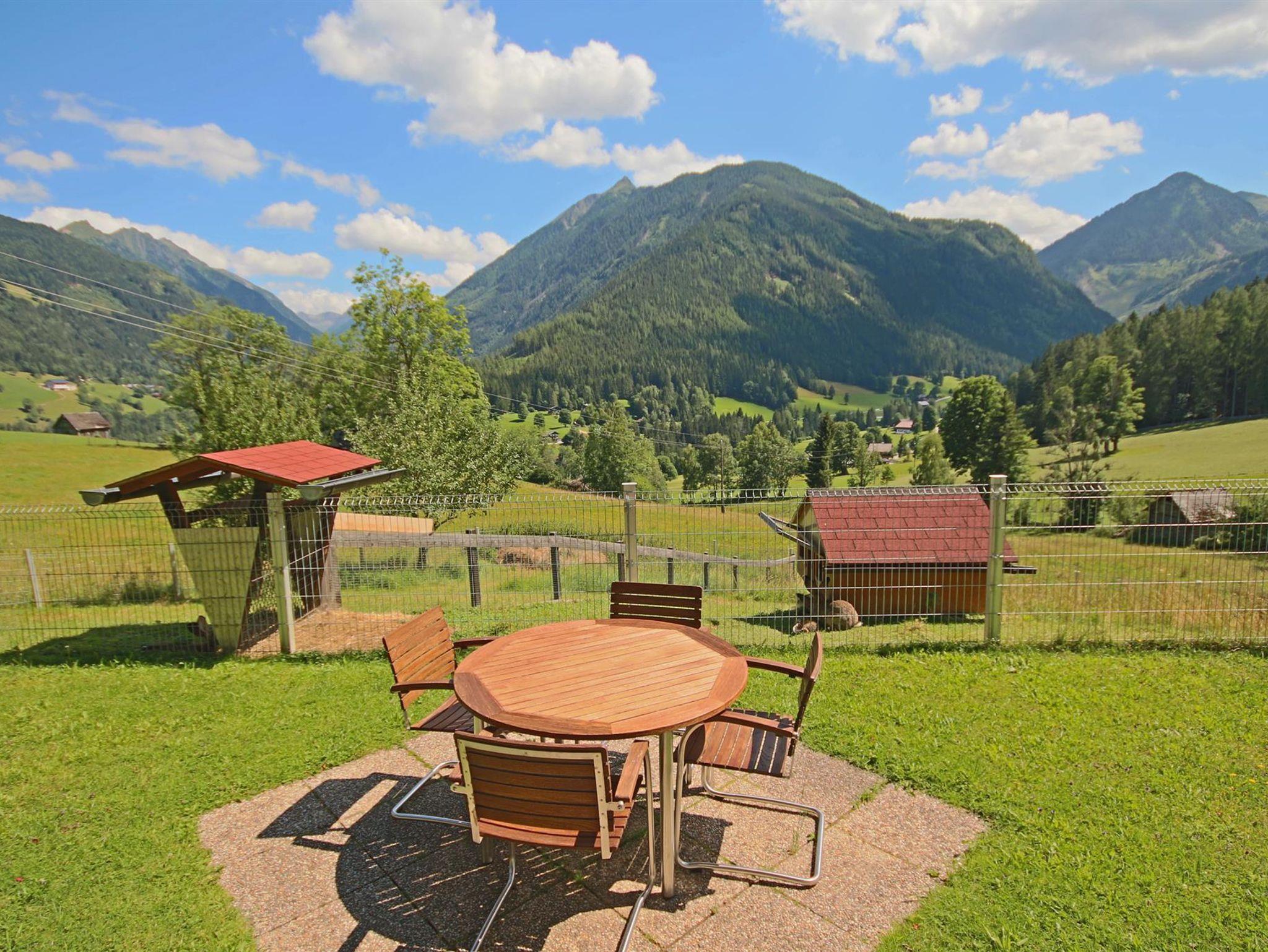 VIEL SONNE - VIEL AUSSICHT - NAHE DER SKIPISTE SOWIE AN WANDER- UND RADWEGEN! Das Appartement Haus Diamant liegt auf 1000m Seehöhe in Rohrmoos und bietet einen fantastischen Ausblick auf das Hochplateau Ramsau am Dachstein sowie die Schladminger Bergwelt. Sie schätzen eine ruhige Lage, möchten aber trotzdem nicht weit entfernt vom Geschehen und der Skipiste sein, dann ist dieses Urlaubsdomizil genau das Richtige für Sie. Das Appartement liegt im Untergeschoss eines Blockhauses und bietet Platz für 5 Personen mit 2 separaten Schlafzimmer (1. Schlafzimmer mit einem Doppelbett, 2. Schlafzimmer mit einem Doppelbett und einem Einzelbett), 2 Badezimmer sowie einer großen Wohnküche. Direkt vor dem Haus befindet sich eine südseitige Terrasse und große Liegewiese. Für Ihre Kleinsten gibt es einen Streichelzoo mit Hasen, die täglich gefüttert werden möchten! In ca. 10 Gehminuten erreichen Sie das Zentrum von Rohrmoos, in 10 Fahrminuten die Stadt Schladming. Die Skipiste (Sunjet) ist zu Fuß in 500m erreichbar, bei guten Schneebedingungen können Sie von der Piste zum Haus Diamant mit den Skiern fahren. Bushaltestelle und im Sommer Rad- und Wanderwege liegen nur ca. 200m vom Haus entfernt.