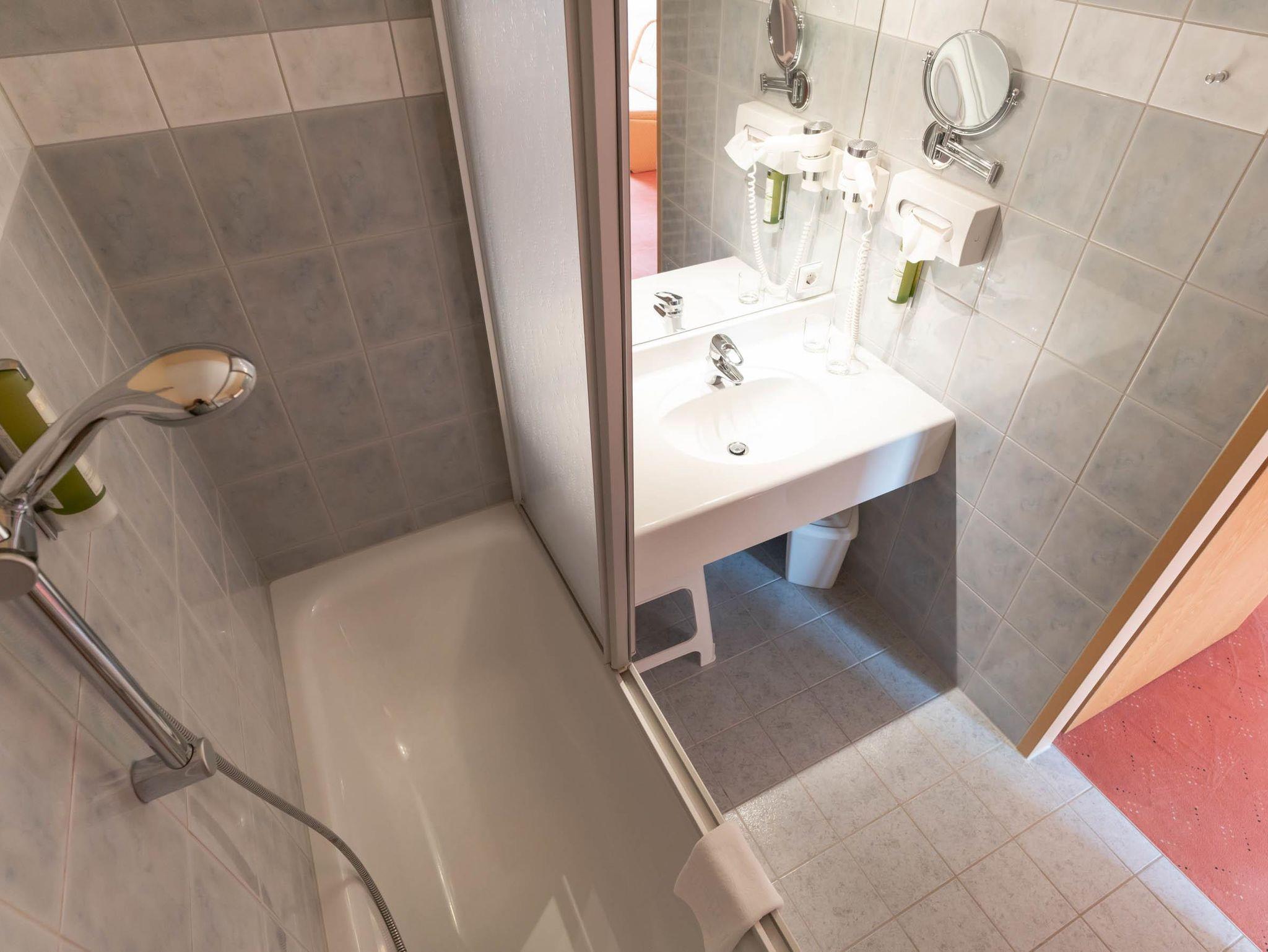 • Badezimmer mit Badewanne oder großer Dusche, WC separat