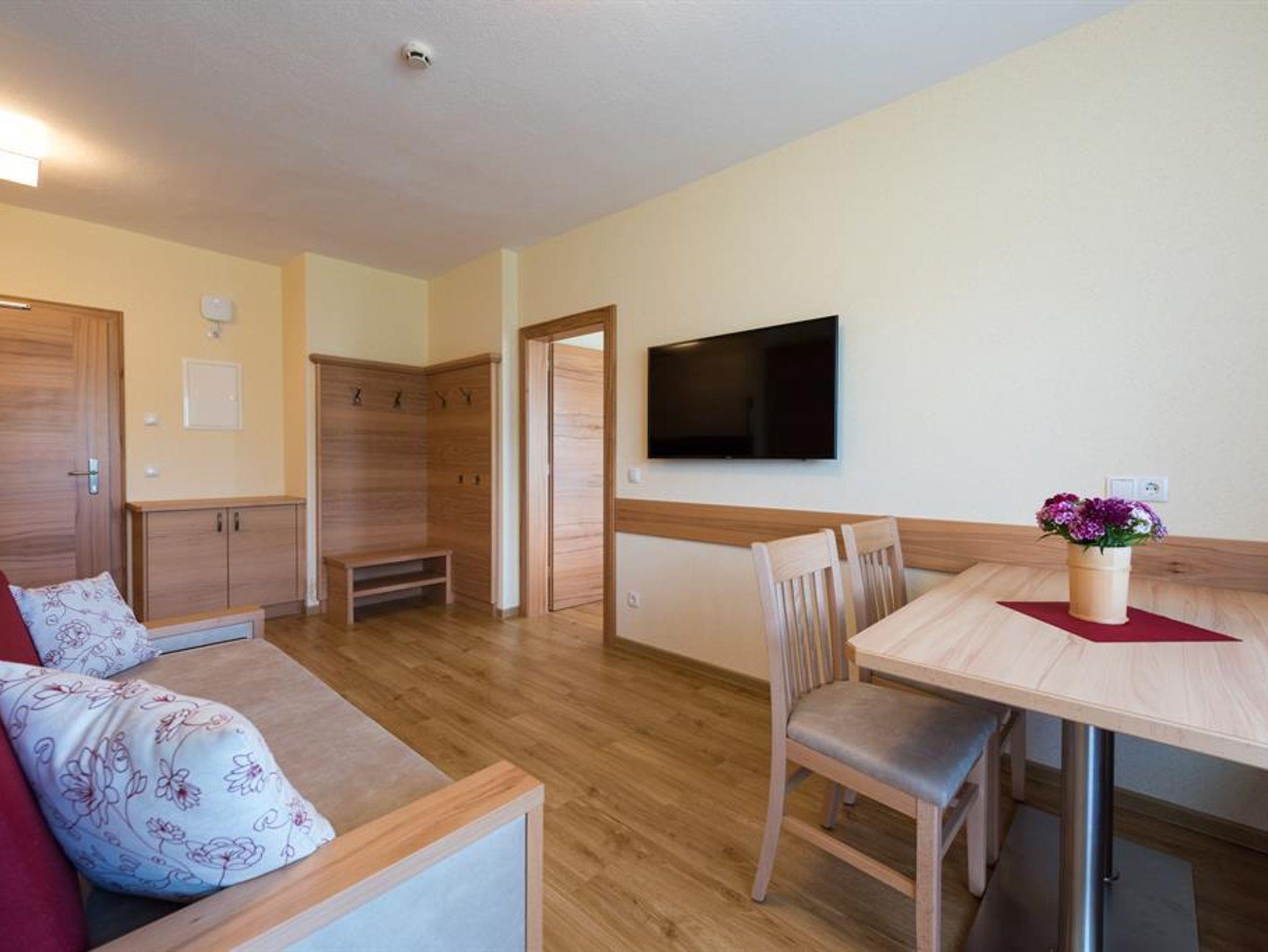 Im Frühjahr 2016 komplett saniert!!! Schlafzimmer: * Handgefertigte Zirbenholzmöbeln * Doppelbett mit hochwertigen QUL-zertifizierten Relax-Matratzen * Kabel-TV * Balkon mit Talblick und Morgensonne Badezimmer: * Waschtisch * Dusche * WC * Handtuchtrockner * Leistungsstarker Fön Wohnraum: * Gemütliche Sitzecke mit Tisch * Kabel-TV * Couch (verschwindet bei Bedarf in der Wand und ein Doppelbett wird hervorgezaubert) Küche: * 2 Herdplatten * Mikrowelle * Kühlschrank * Kaffeevollautomat * Geschirrspüler * Wasserkocher * Geschirr und Geschirrtücher Gesamte Suite: * Fußbodenheizung * gratis WiFi