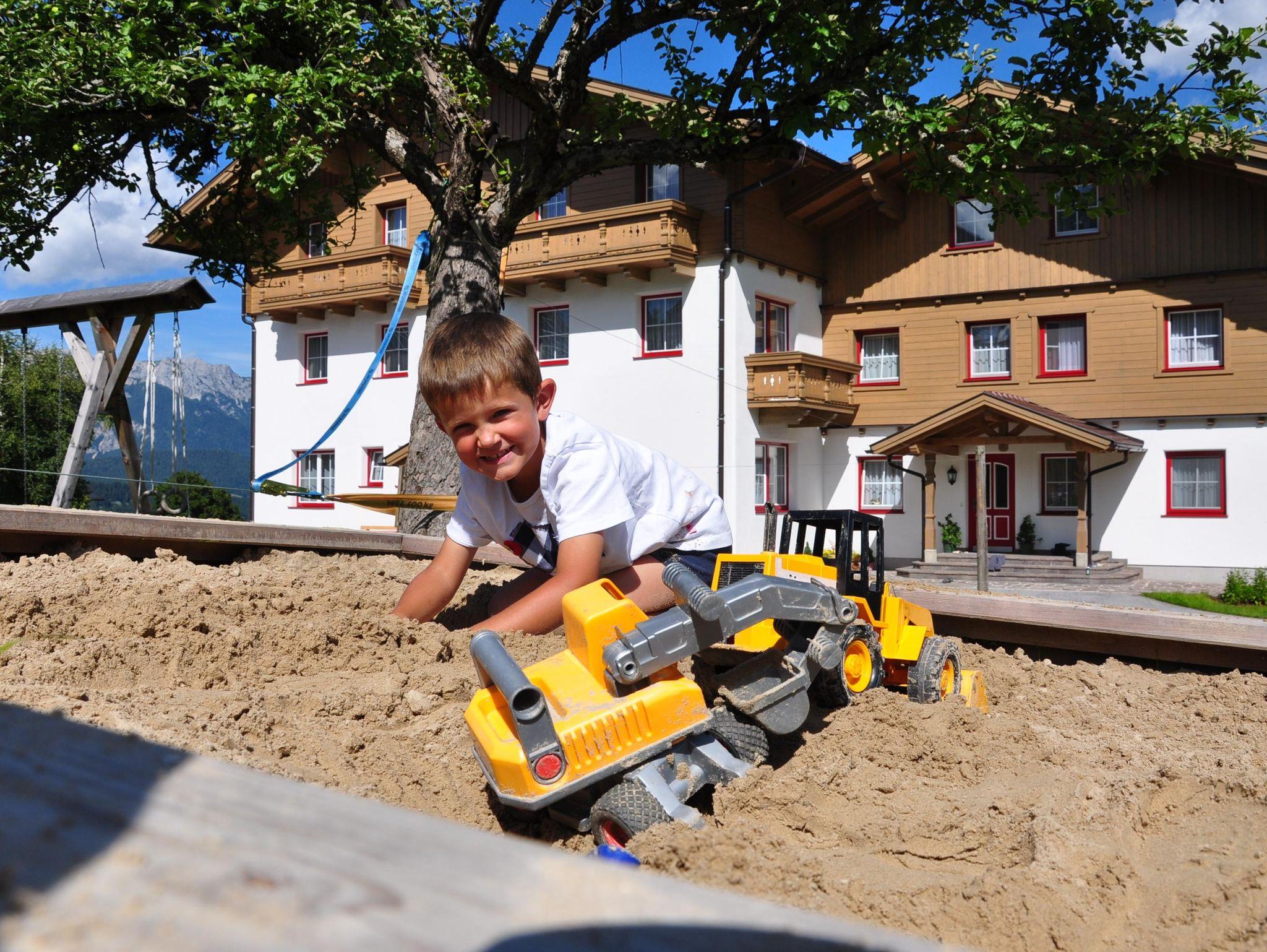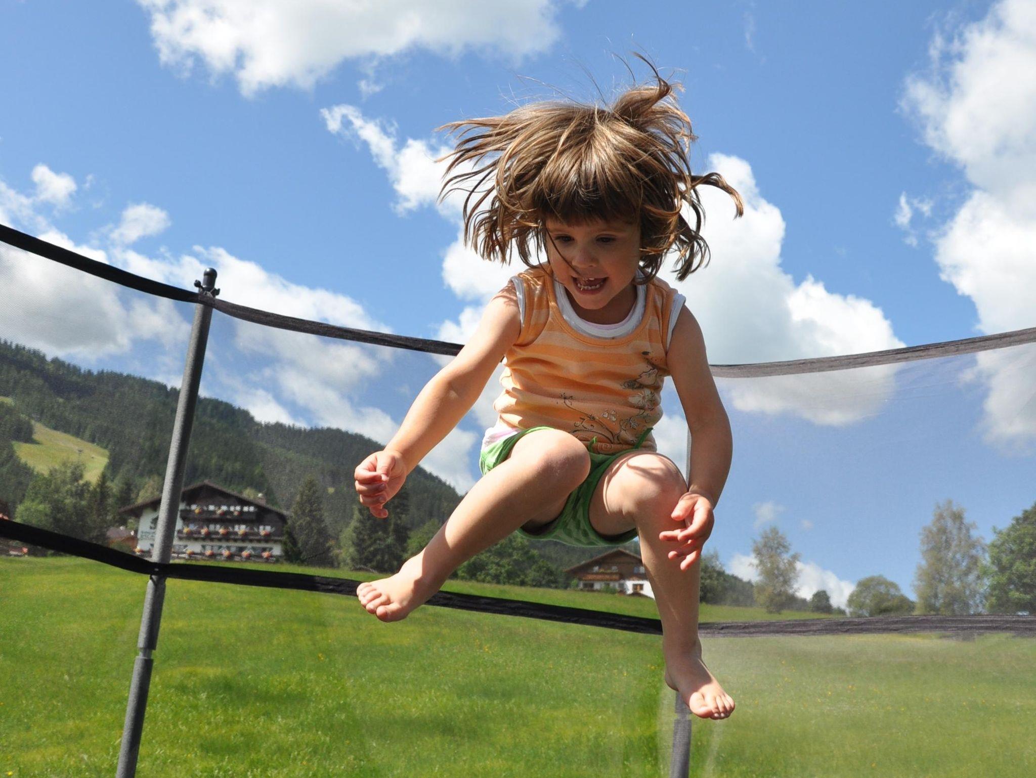 Sandkisten, Schaukeln, höhenverstellbare Reckstange, Tischtennis, ein Riesentrampolin mit Airflow- und Twinspringtechnologie, ein kleines Naturbächlein und unser Kinderfuhrpark (Roller, Laufrad, Trettraktor, Fahrräder, Bobby-Cars) warten auf kleine Entdecker.
