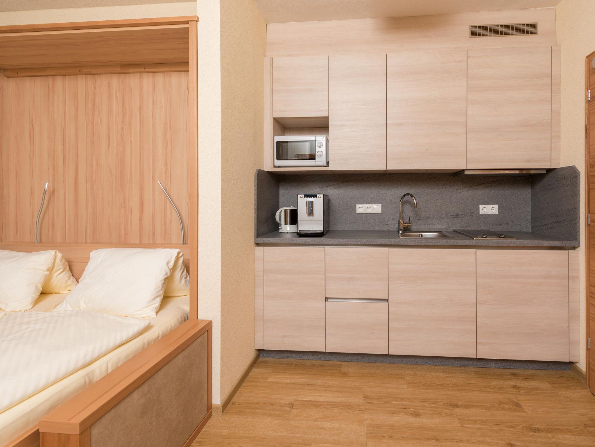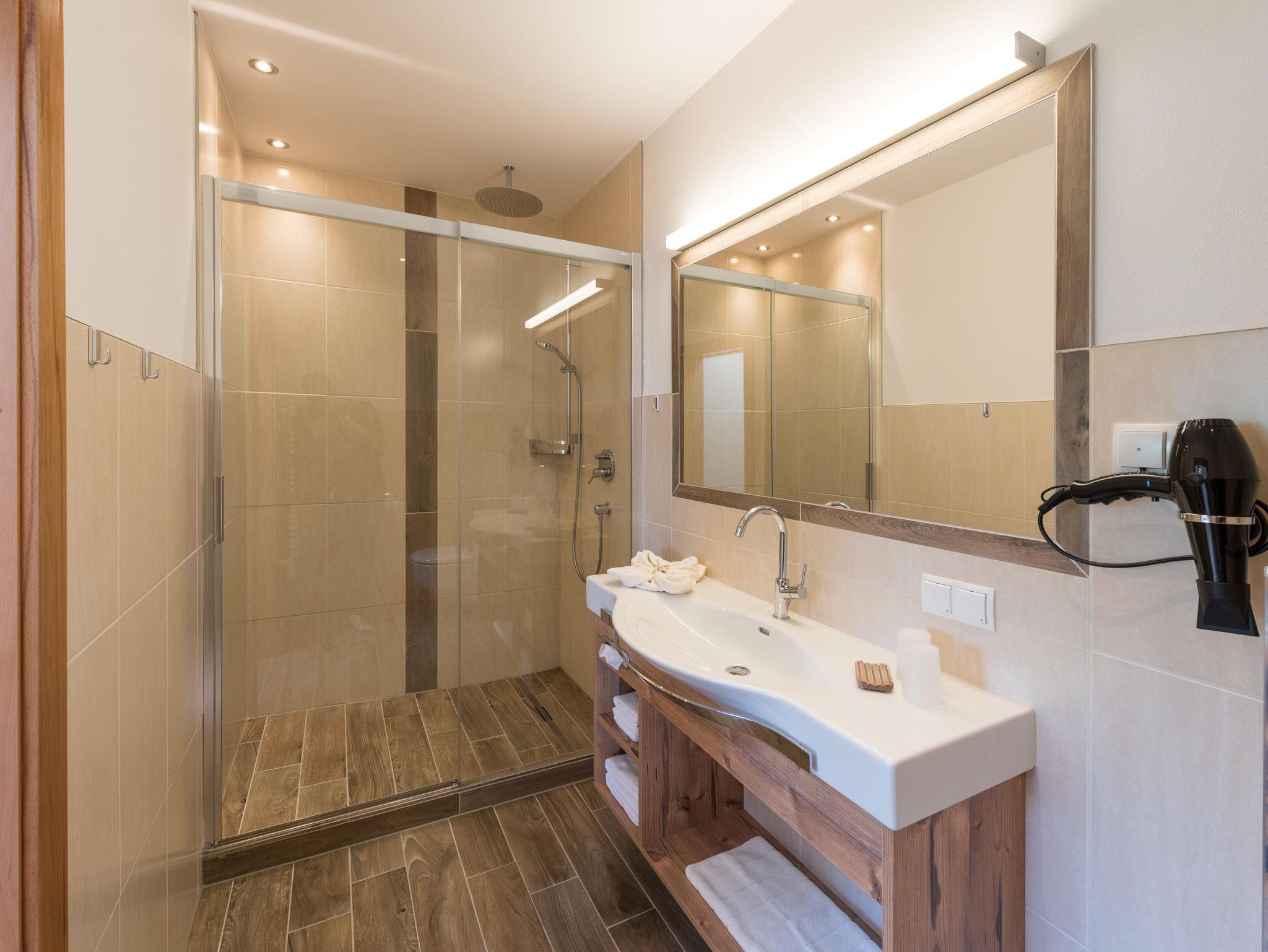 Das Appartement Ennstal besteht aus zwei Doppelzimmern mit jeweils 1 Bad und einer geräumigen Wohnküche. Die Möbel der beiden Doppelzimmer wurden in liebevoller Handarbeit aus Buchenvollholz gefertigt. Jedes der beiden Zimmer verfügt über gratis WiFi, Kabel-TV, Teppichboden, Bodenheizung und ein eigenes Bad (DU/WC). In der Wohnküche gibt es eine großzügige Sitzecke mit Esstisch, gratis WiFi und Kabel-TV. Die Couch im Wohnraum kann bei Bedarf als weiteres Zusatzbett genutzt werden. Die Küche ist ausgestattet mit zwei Kochplatten, Kühlschrank, Wasserkocher, Mikrowelle, Kaffeevollautomat und einem Geschirrspüler. Dieses Appartement kann NICHT gemeinsam mit Zimmer Talblick/Enns gebucht werden.