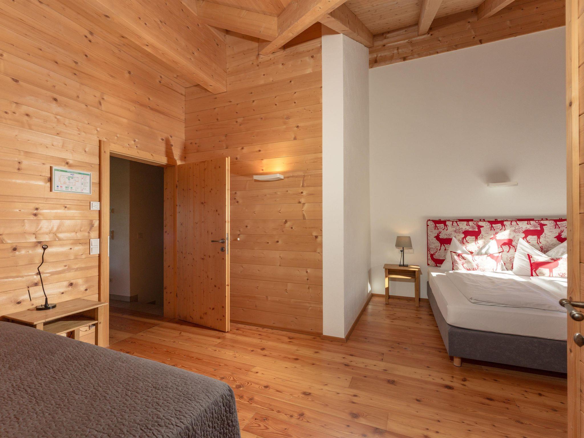 Aufgeteilt in zwei Häusern befinden sich 4 separate Lodges - zwei für je 8 Personen und zwei für je 10 Personen. Jedes der vier Lodges bietet entweder 3 oder 4 Schlafräume mit jeweils einem eigenen Badezimmer und eigenen Wellnessbereich mit Sauna und Ruheraum. Restaurants, Geschäfte und Bushaltestelle befinden sich in unmittelbarer Nähe. Ein Skiraum und ein Schuhtrockner befinden sich in jeder Lodge, der Parkplatz ist direkt vor der Haustüre, Kostenfreies WLAN steht in jeder Lodge zu Verfügung.