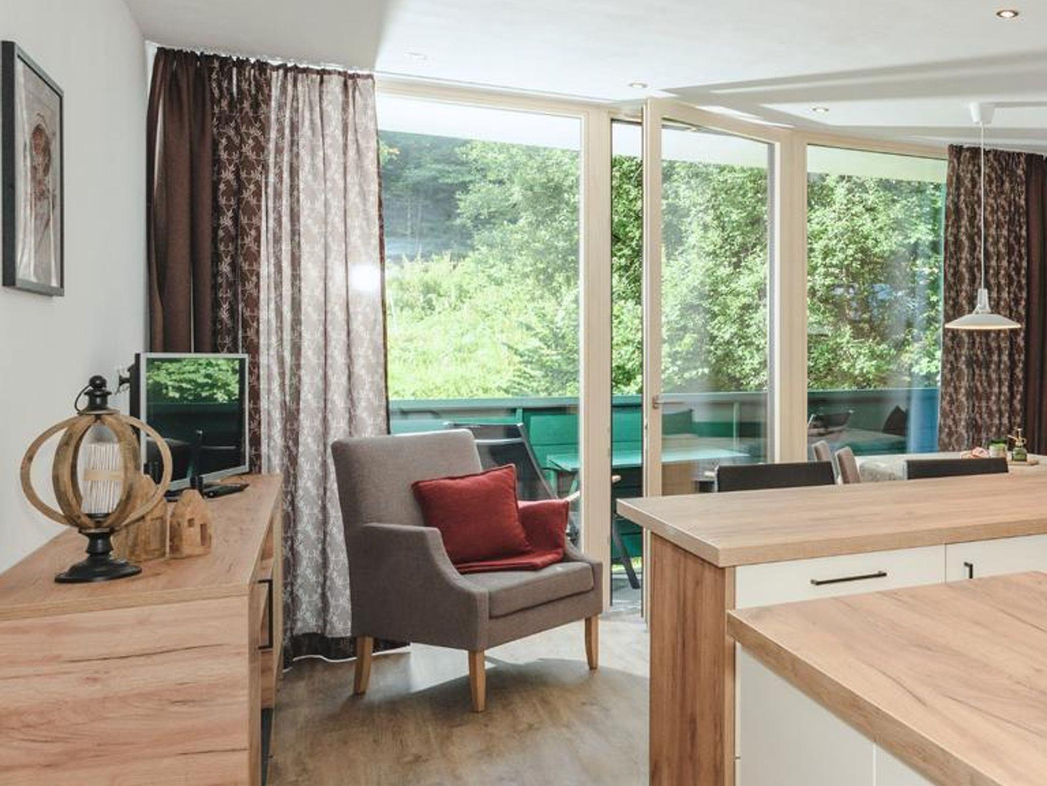 Ein besonderes Highlight des Appartements ist die große Fensterfront. Die harmonische Verbindung von Innen- und Außenraum schafft eine angenehme Atmosphäre und lässt Dich den Alltag vergessen.