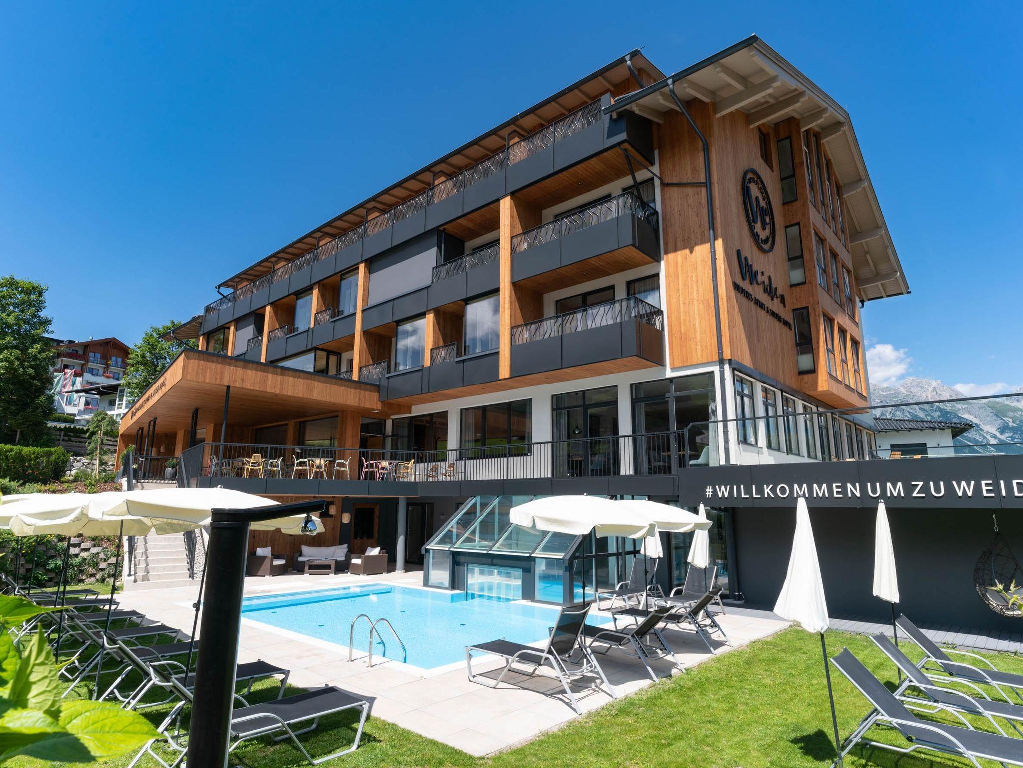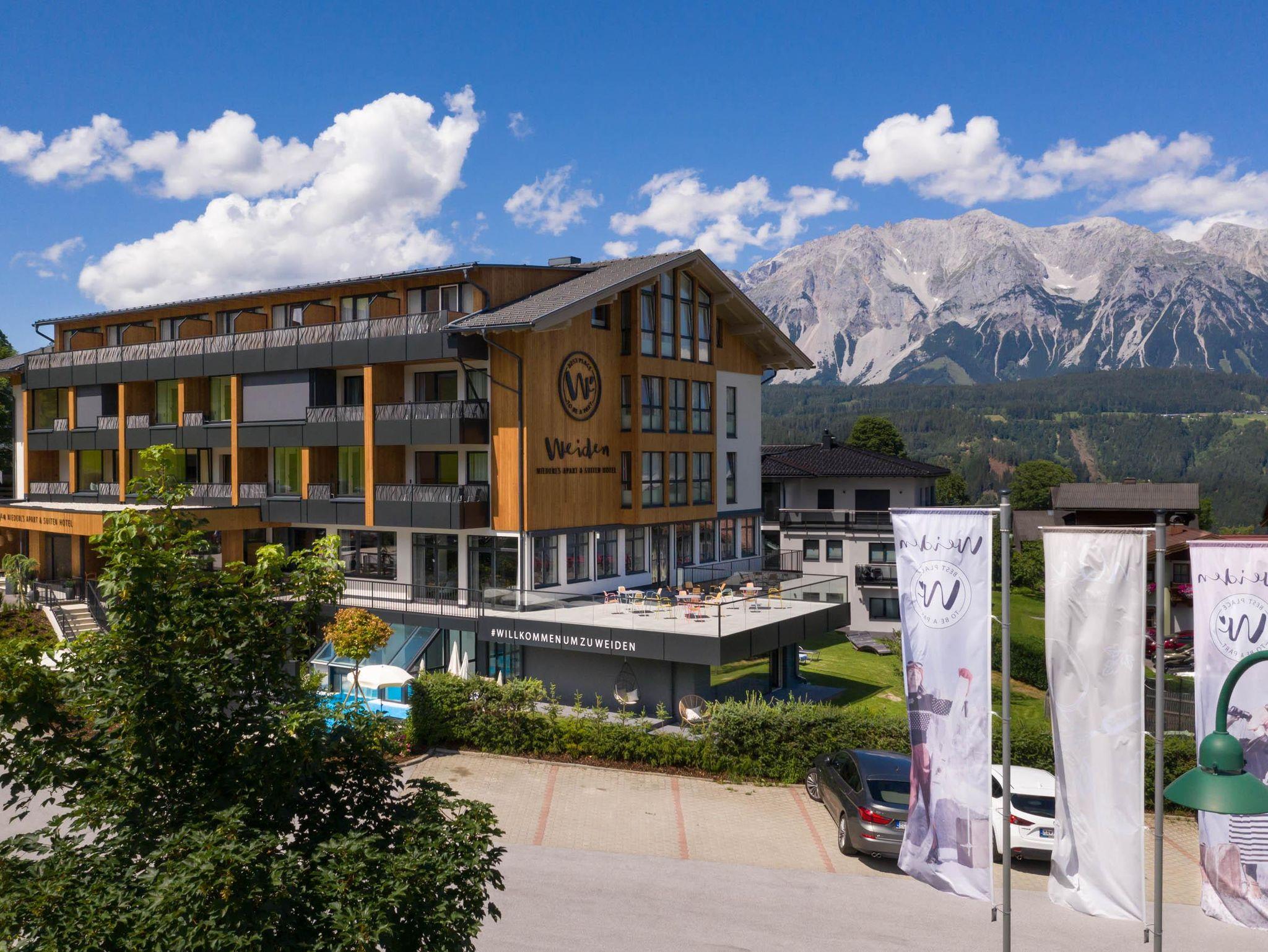 Das Hotel WEIDEN mit Wohnzimmerfeeling und innovativem Konzept hat erstklassige Lage am Hochplateau Rohrmoos oberhalb von Schladming. Im Skiurlaub direkt neben der Skipiste, im Sommerurlaub mitten in der Wanderregion Schladming Dachstein.