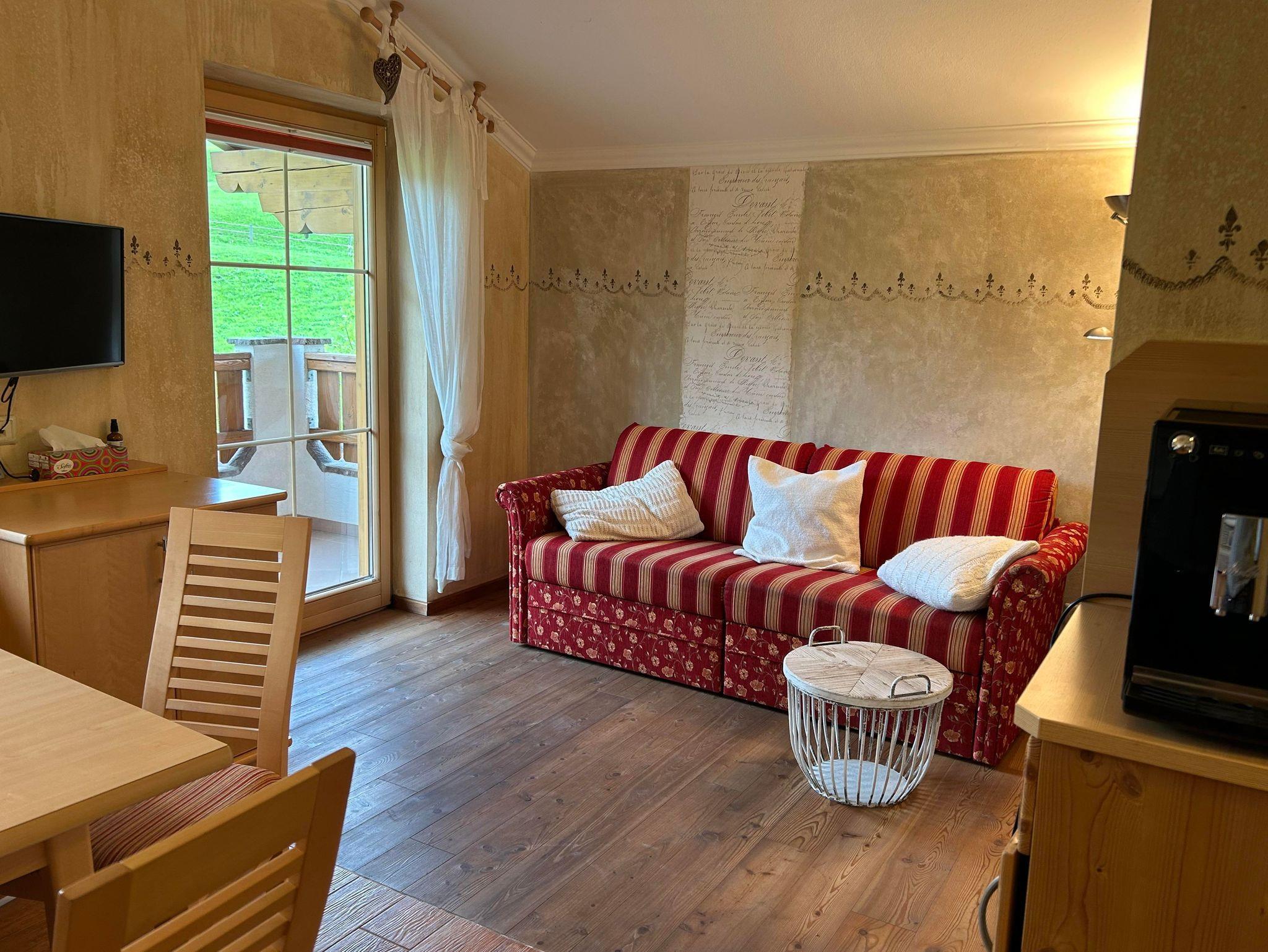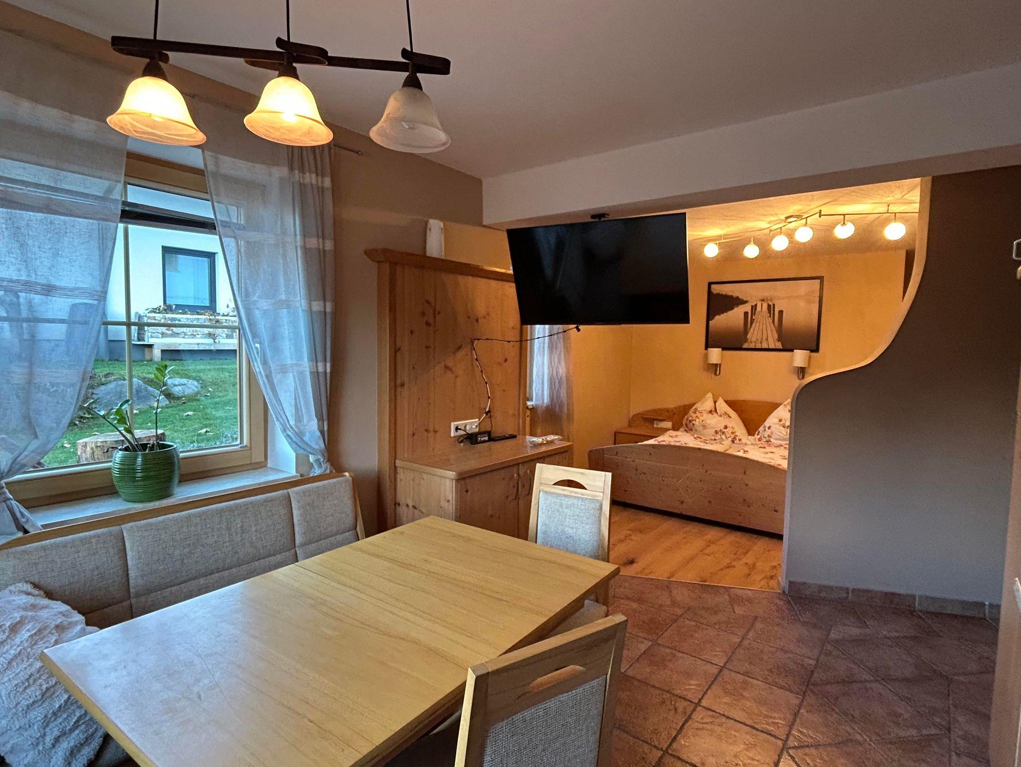 Gemütliches Appartement mit 2 Schlafräumen , voll eingerichtete Wohnküche mit Sonnenterasse , 2 Badezimmer und separate Toilette. Die voll ausgestattet Küche verfügt über Backofen, Mikrowelle, Geschirrspüler, Kühlschrank mit Eisfach, Espressomaschine, Wasserkocher und ausreichend Geschirr und Besteck. Für Bettwäsche, Handtücher ,Geschirrtücher sowie Saunatücher ist natürlich gesorgt. Diese Wohnung verfügt über Balkon und Terrasse mit Blick auf unserer wunderschöne Bergwelt. Das Appartement befindet sich auf der 1. Etage. Unser Haus befindet sich direkt an der Skipiste in sonniger ruhiger und doch zentraler Lage!