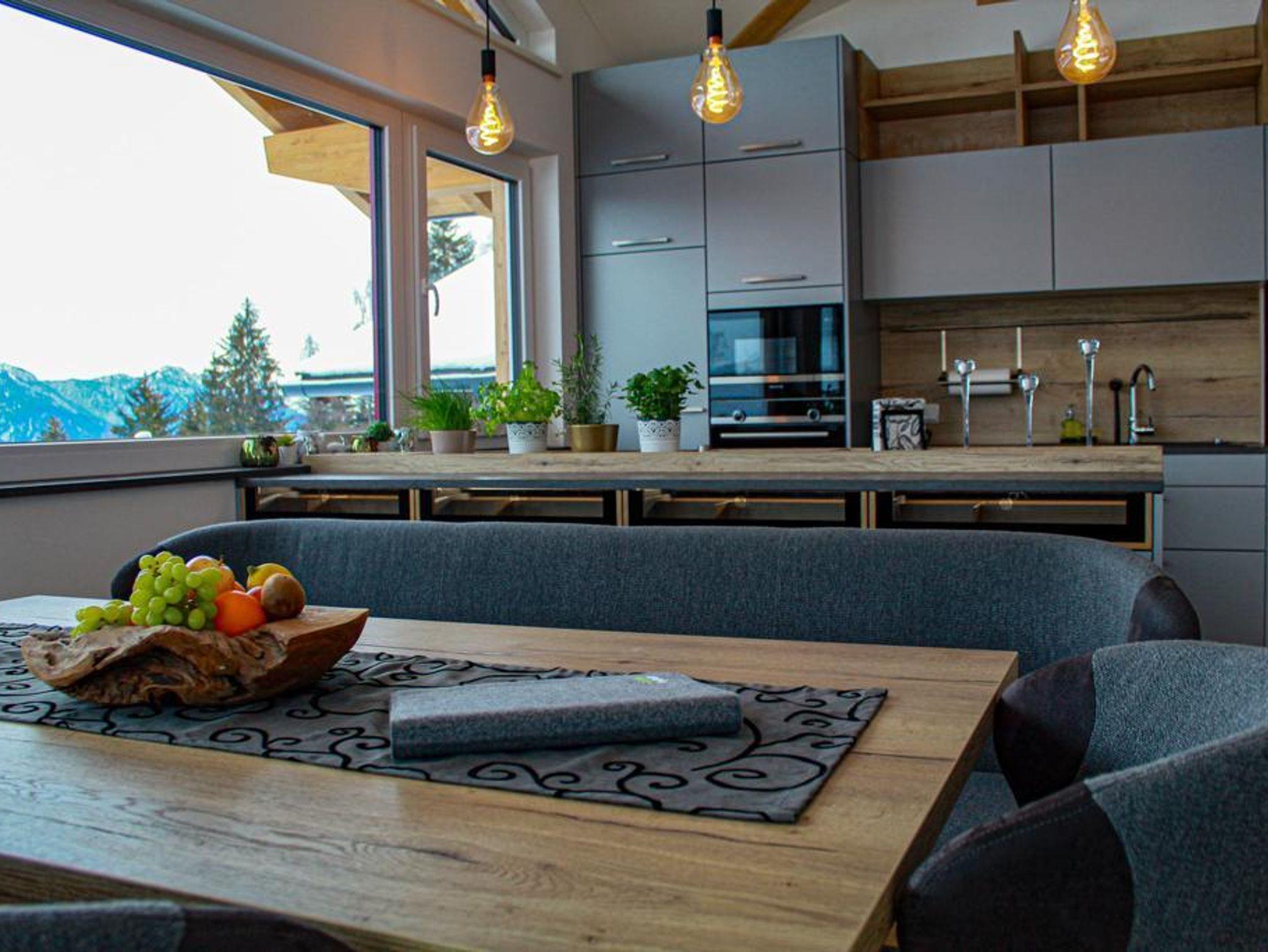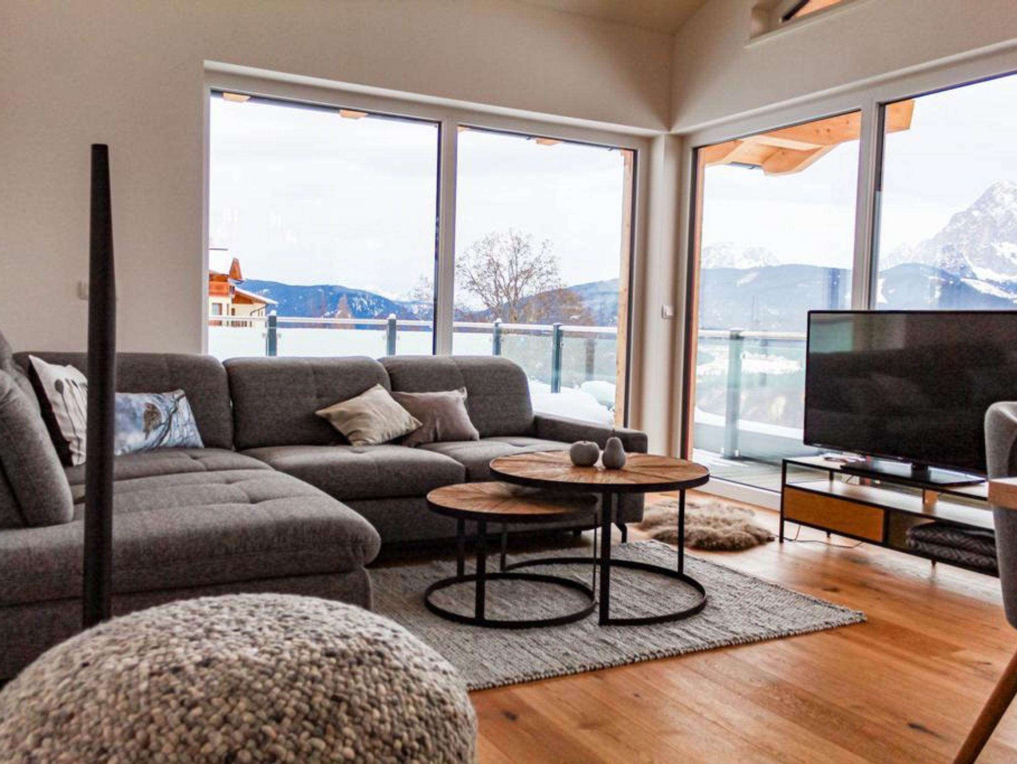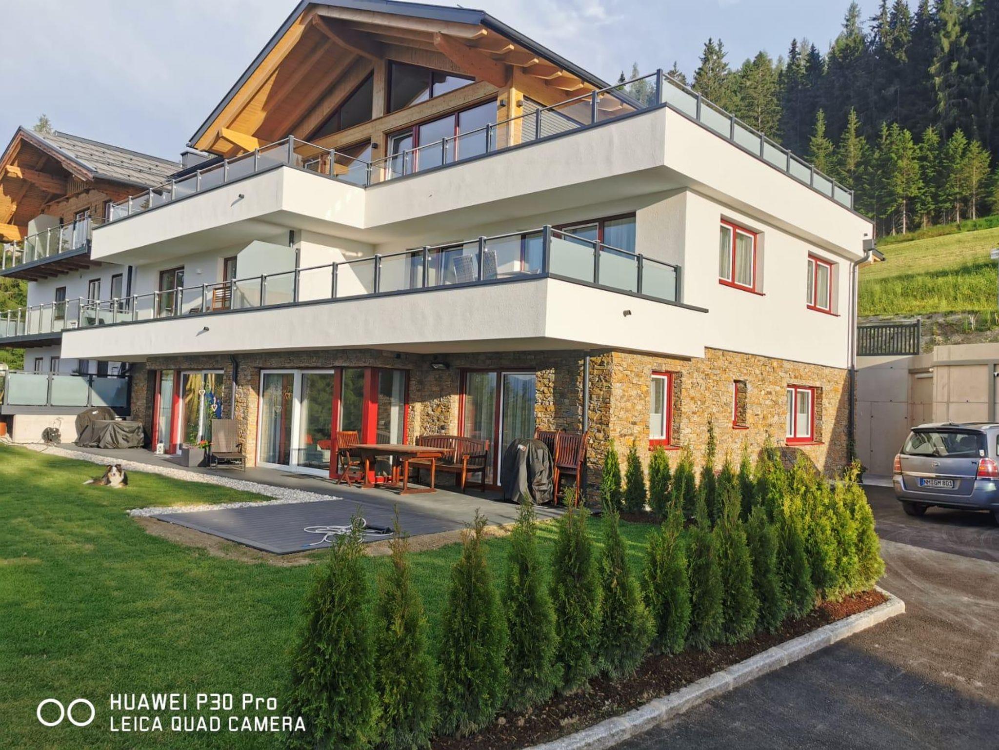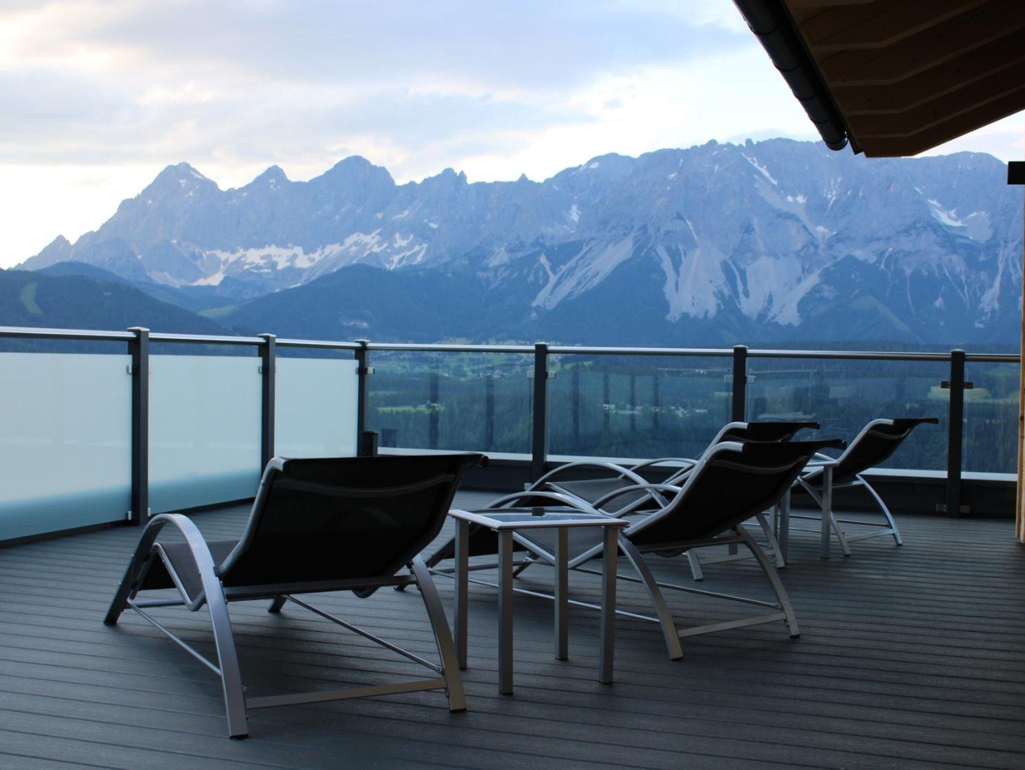 Neu errichtete Ferienwohnung für bis zu 8 Personen. Ca. 90 m2 groß mit 2 Schlafzimmer, Wohnküche mit Essecke und Couch, 2 Badezimmer mit Dusche und WC,90 m2 Terrasse mit Blick Richtung Dachstein.