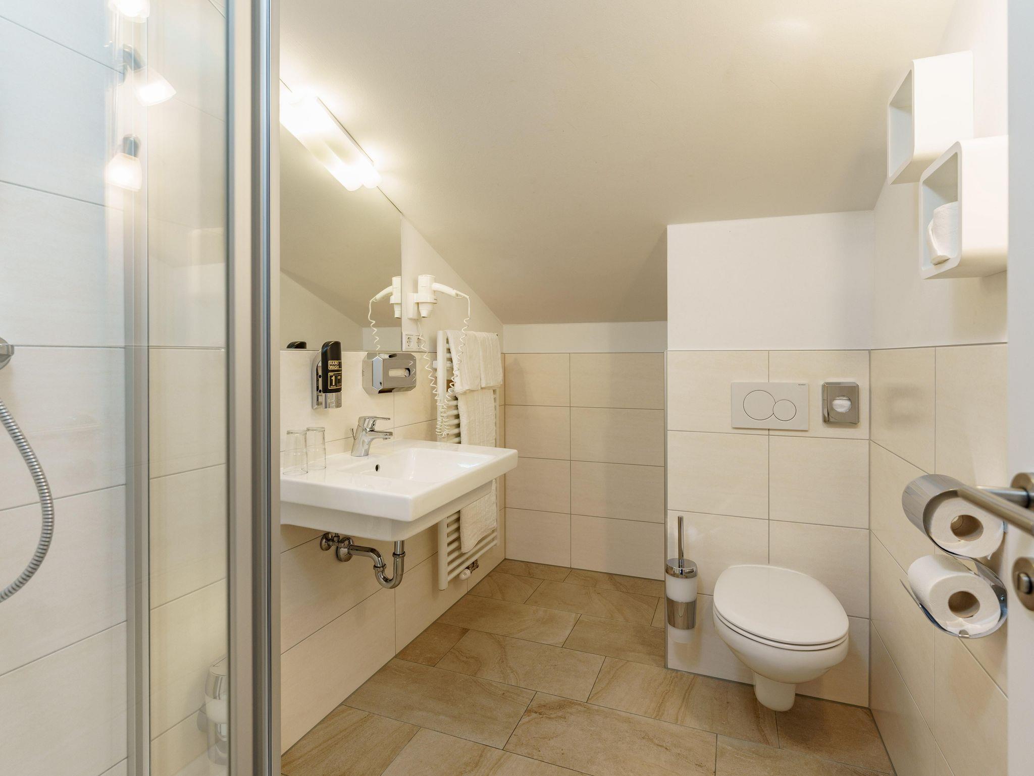 • Badezimmer mit Dusche/WC, Schminkspiegel, Haarföhn & Handtuchtrockner