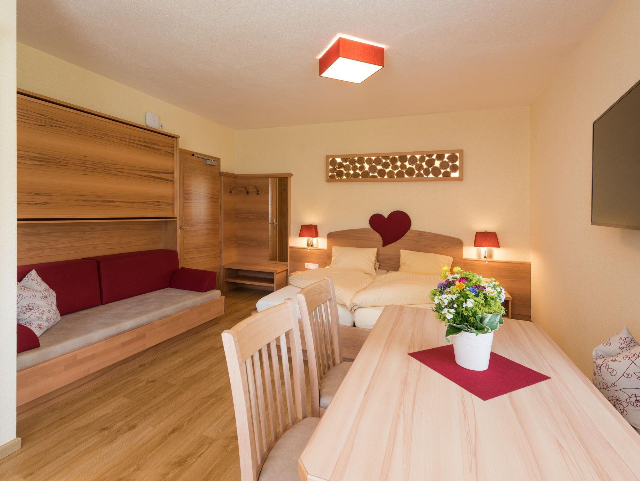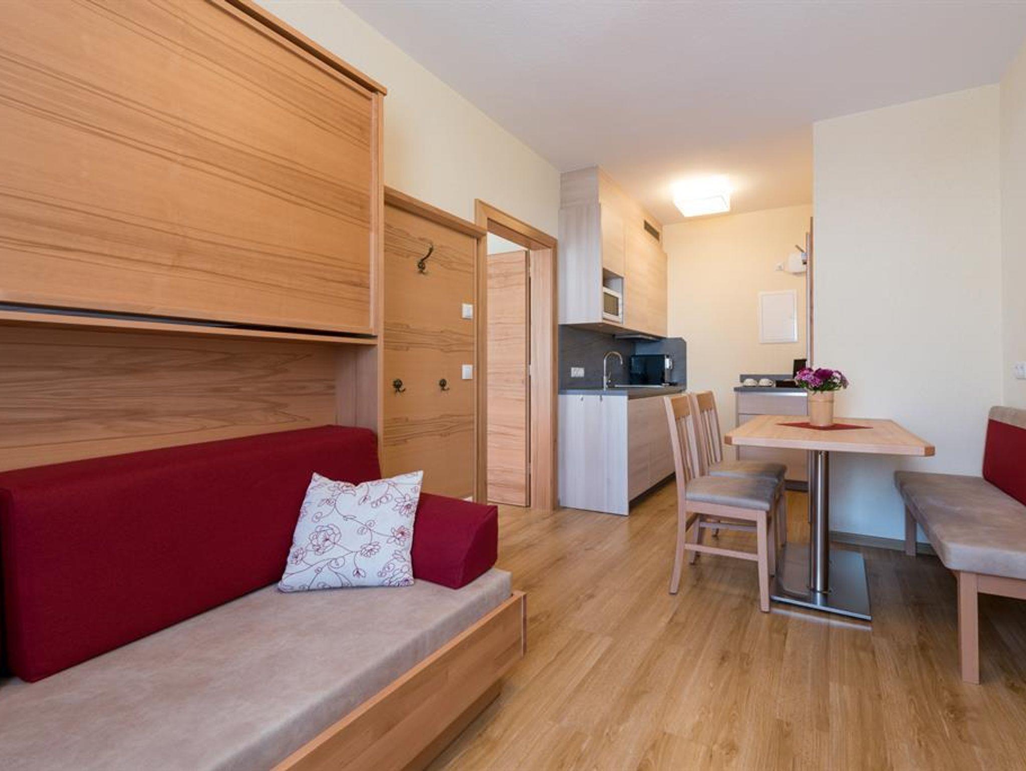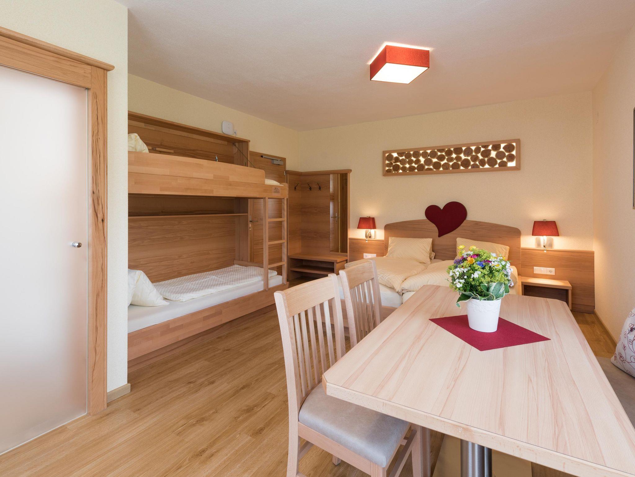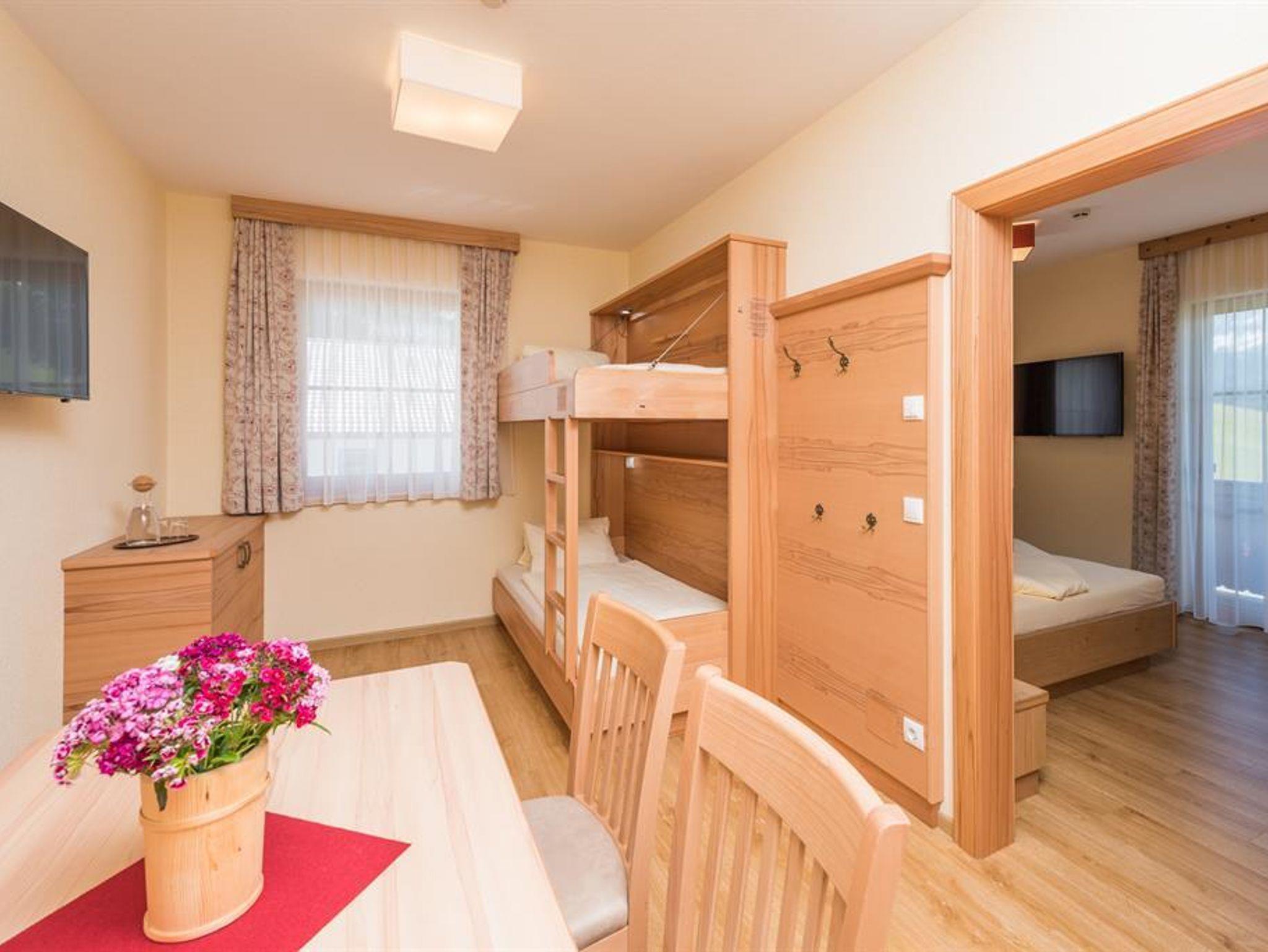 Im Frühjahr 2016 komplett saniert!!! Schlafzimmer: * Handgefertigte Zirbenholzmöbeln * Doppelbett mit hochwertigen QUL-zertifizierten Relax-Matratzen * Kabel-TV * Balkon mit Bergblick und Nachmittags-Sonne Badezimmer: * Waschtisch * Dusche * WC * Handtuchtrockner * Leistungsstarker Fön Wohnraum: * Gemütliche Sitzecke mit Tisch * Kabel-TV * Couch (kann in ein Stockbett verwandelt werden) Küche: * 2 Herdplatten * Mikrowelle * Kühlschrank * Kaffeevollautomat * Geschirrspüler * Wasserkocher * Geschirr und Geschirrtücher Gesamte Suite: * Fußbodenheizung * gratis WiFi