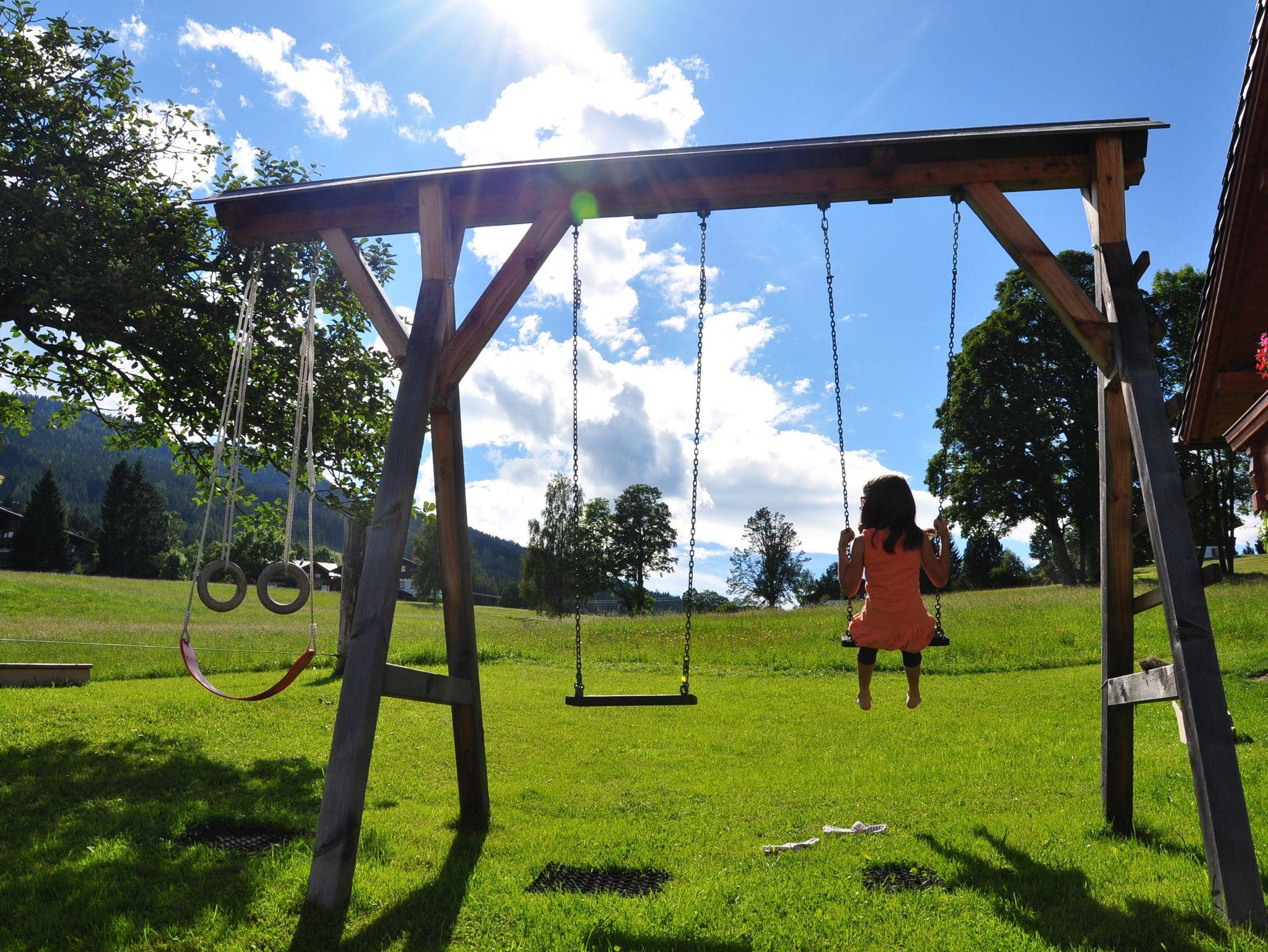 Sandkisten, Schaukeln, höhenverstellbare Reckstange, Tischtennis, ein Riesentrampolin mit Airflow- und Twinspringtechnologie, ein kleines Naturbächlein und unser Kinderfuhrpark (Roller, Laufrad, Trettraktor, Fahrräder, Bobby-Cars) warten auf kleine Entdecker.