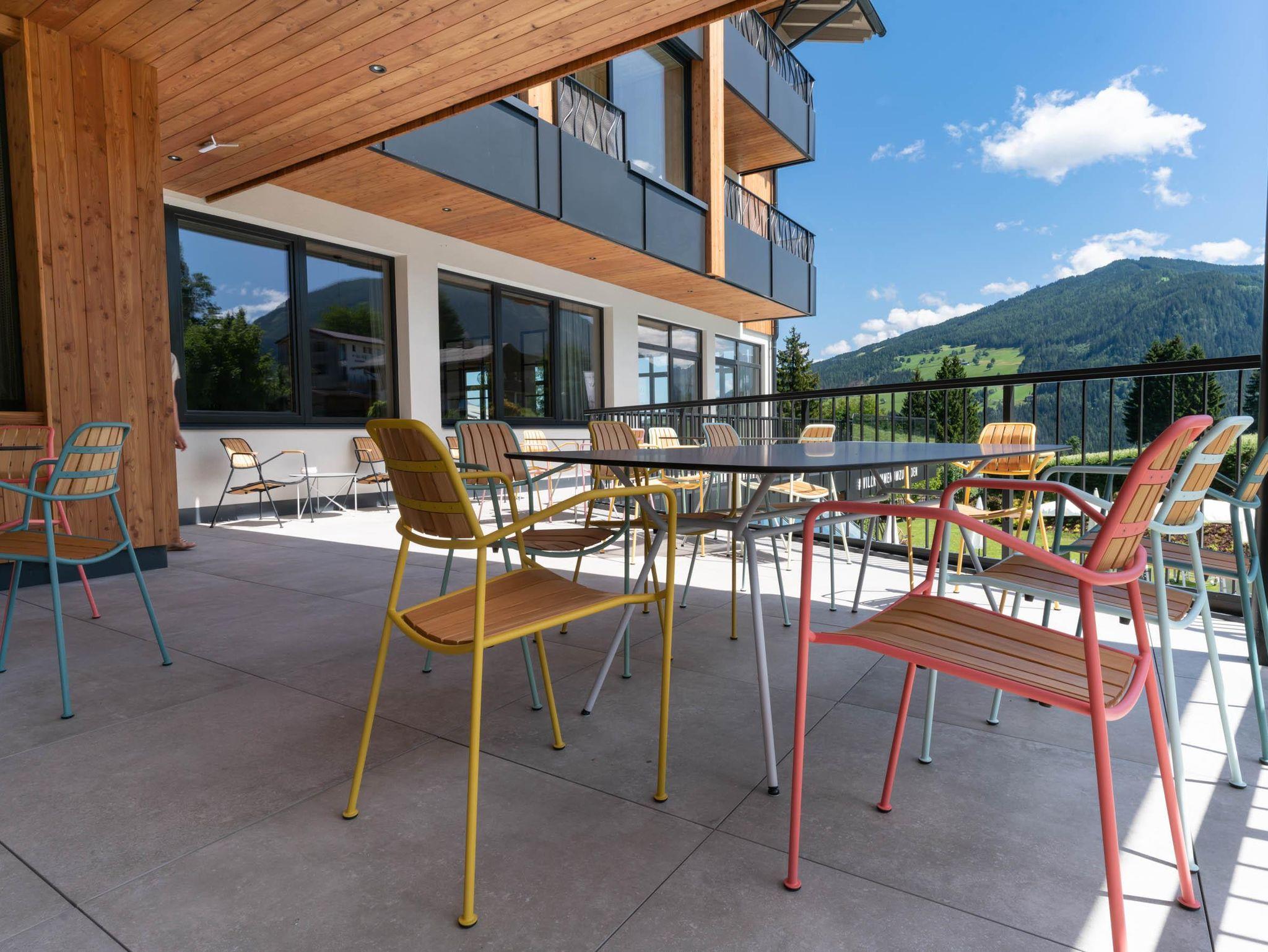 • großer Balkon mit Sitzgelegenheit und Bergpanoramablick zum Dachsteinmassiv oder zum Tauerngebirge (in 2 Suiten sogar 2 Balkone)