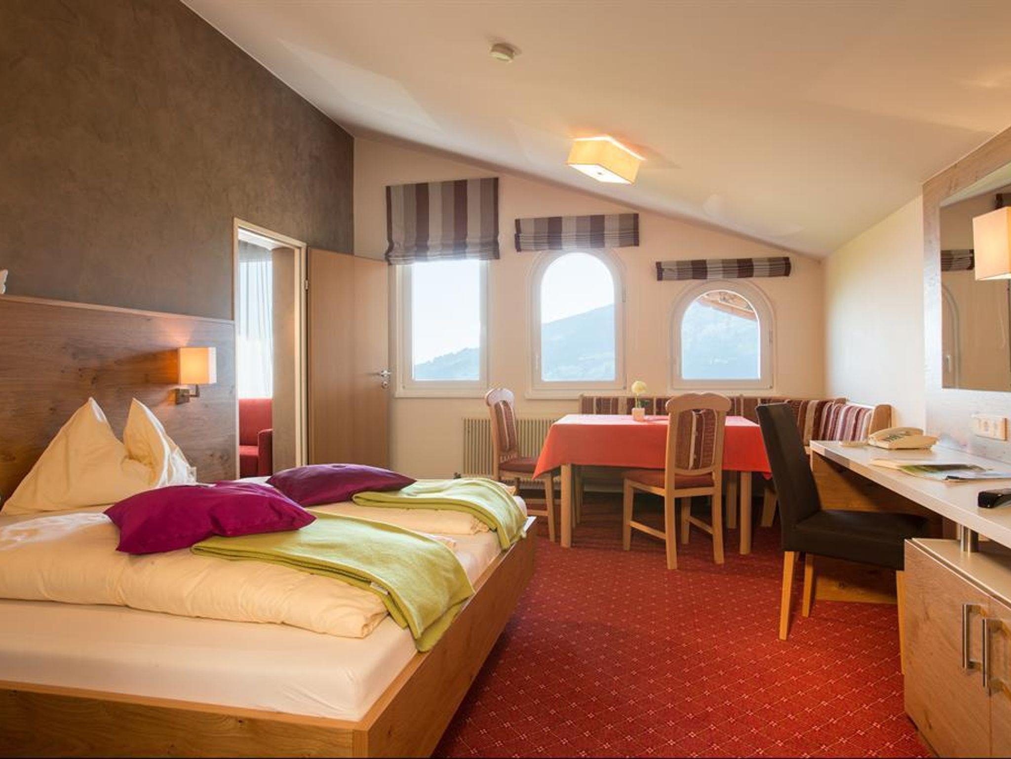 Großzügige Zimmer und Appartements: mit Dusche/WC, Telefon, Flat-TV, Safe, Balkon.