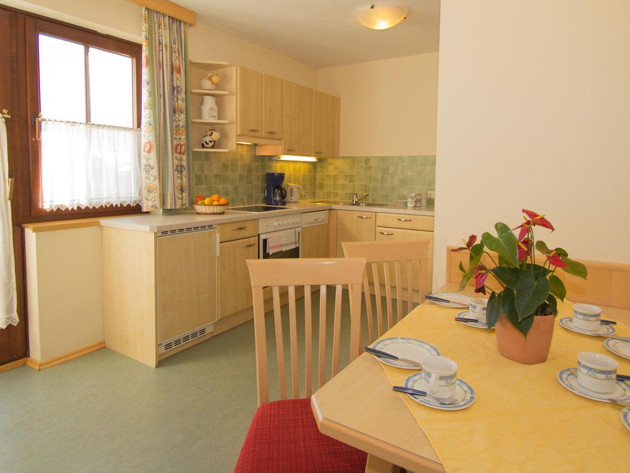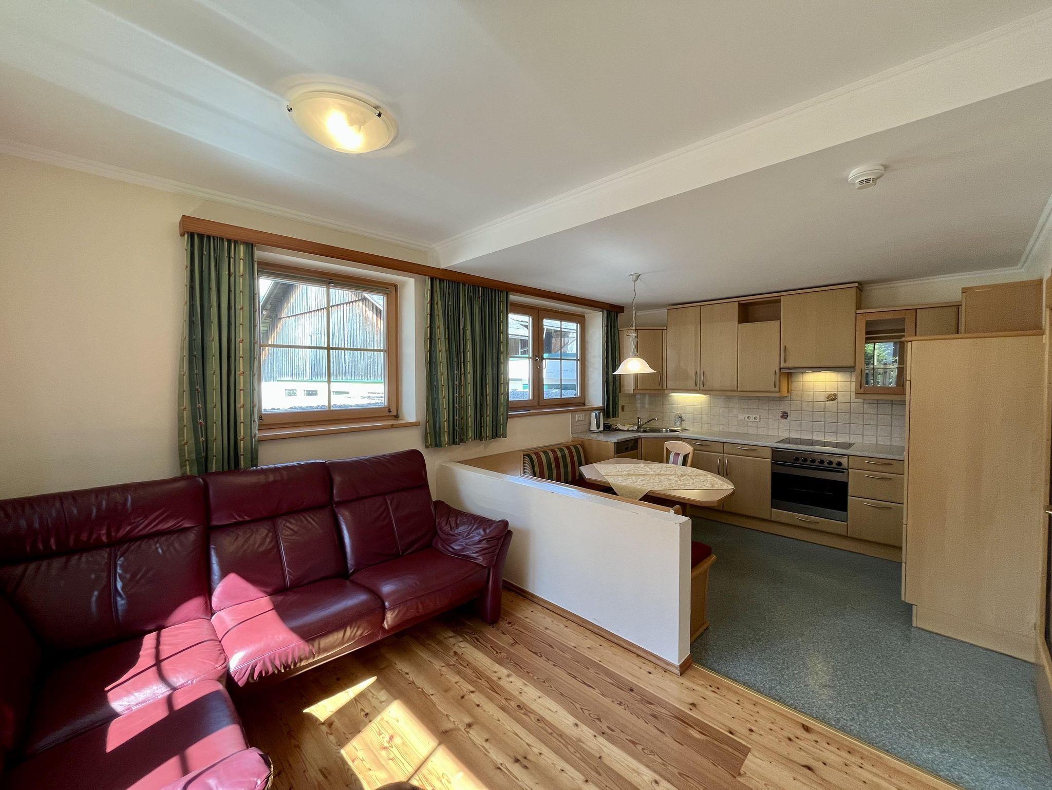 Die Feriewohnung Reiteralm ist im Erdgeschoß, eine Wohnküche mit Sofaecke.