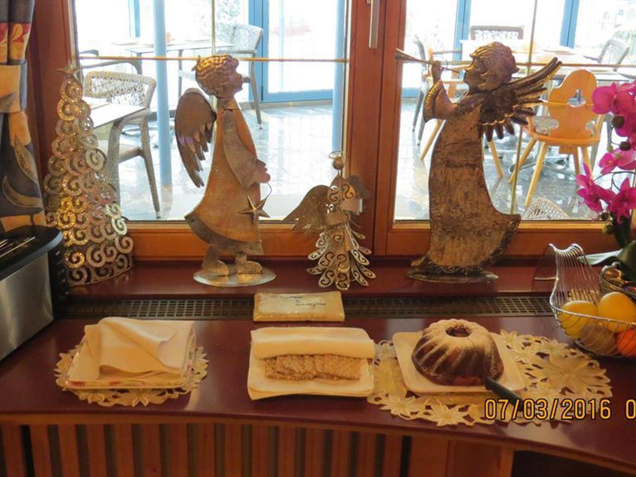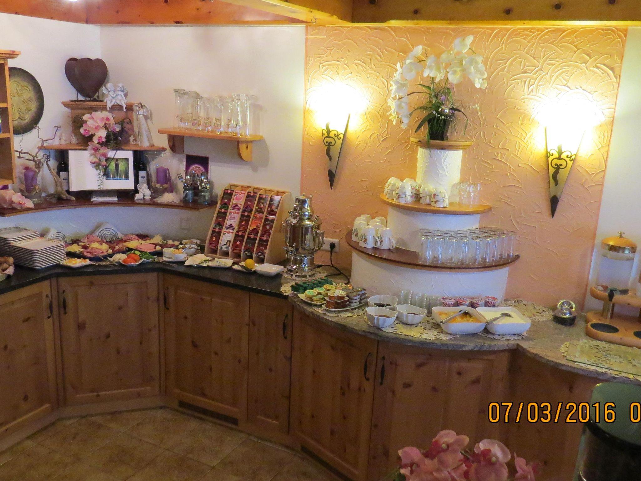 Reichhaltiges Buffetfrühstück möglich: Euro 12,--/Erw. und Kinder bis 12 Jahre Euro 8,-- - auch Brötchenservice wird angeboten.