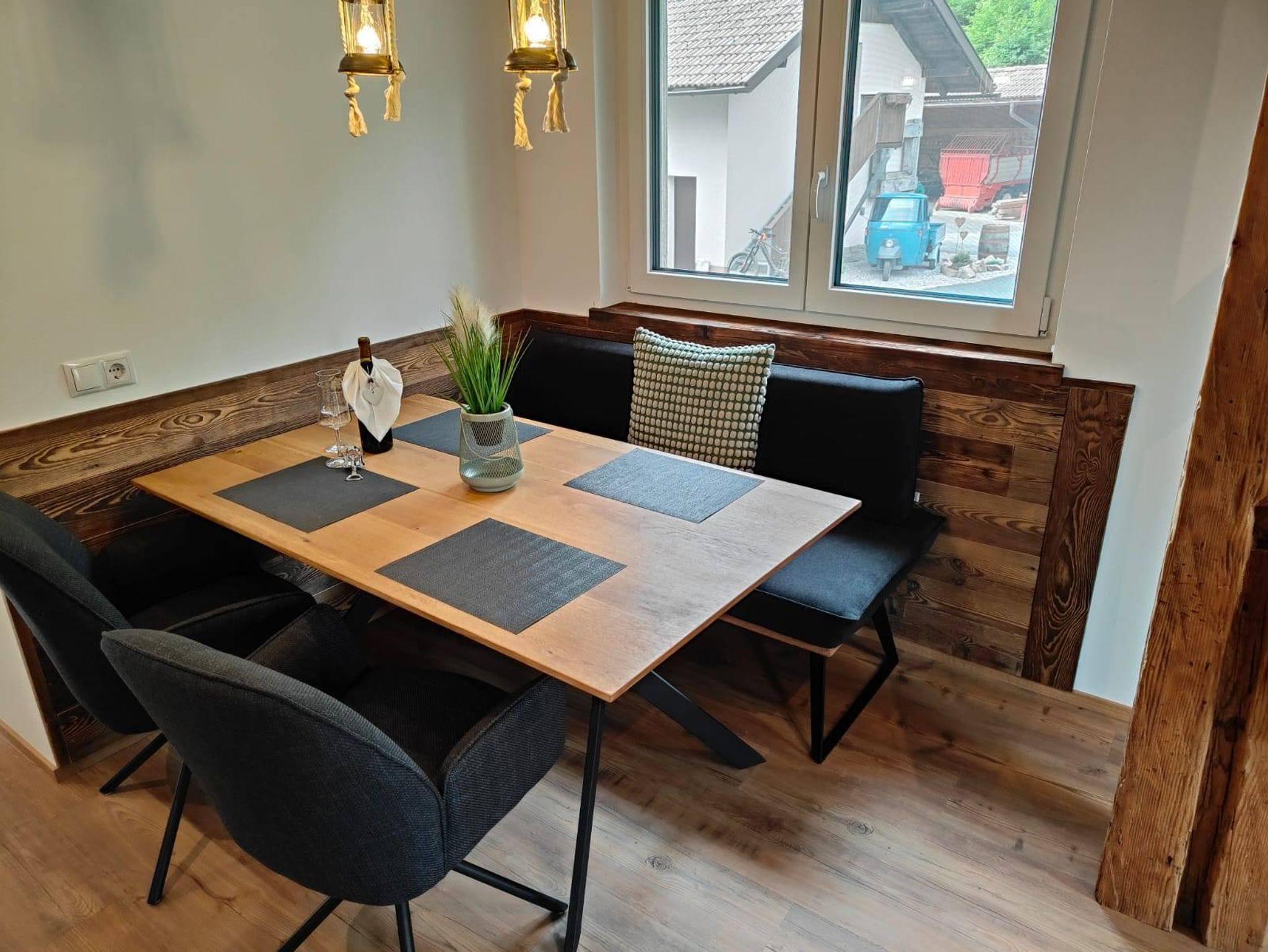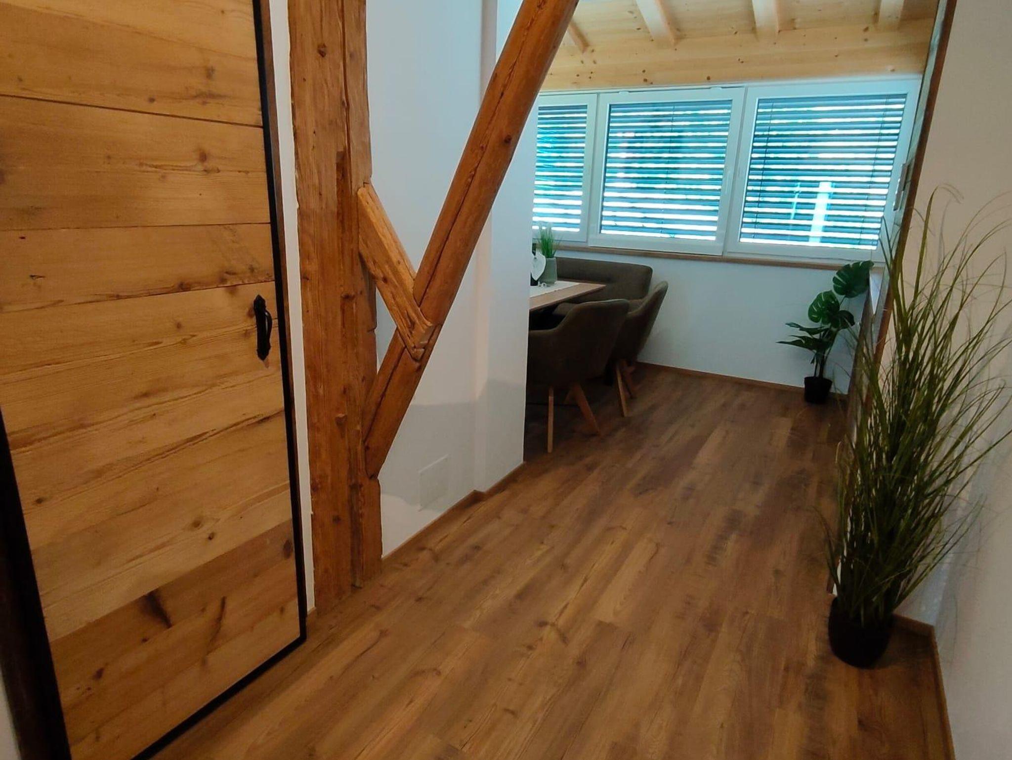 Was dich am Burgbichl erwartet Liebevoll eingerichtete und komplett ausgestattete Neubau Apartments im ehemaligen Stadel,rustikal modernes Ambiente Keine Langeweile für unsere jüngeren Gäste dank der großen Wiese zum Fußball spielen,Federball,Boccia,Tischtennis,Tischfußball,Dart oder bauen einer tollen Burg im Sandkasten.