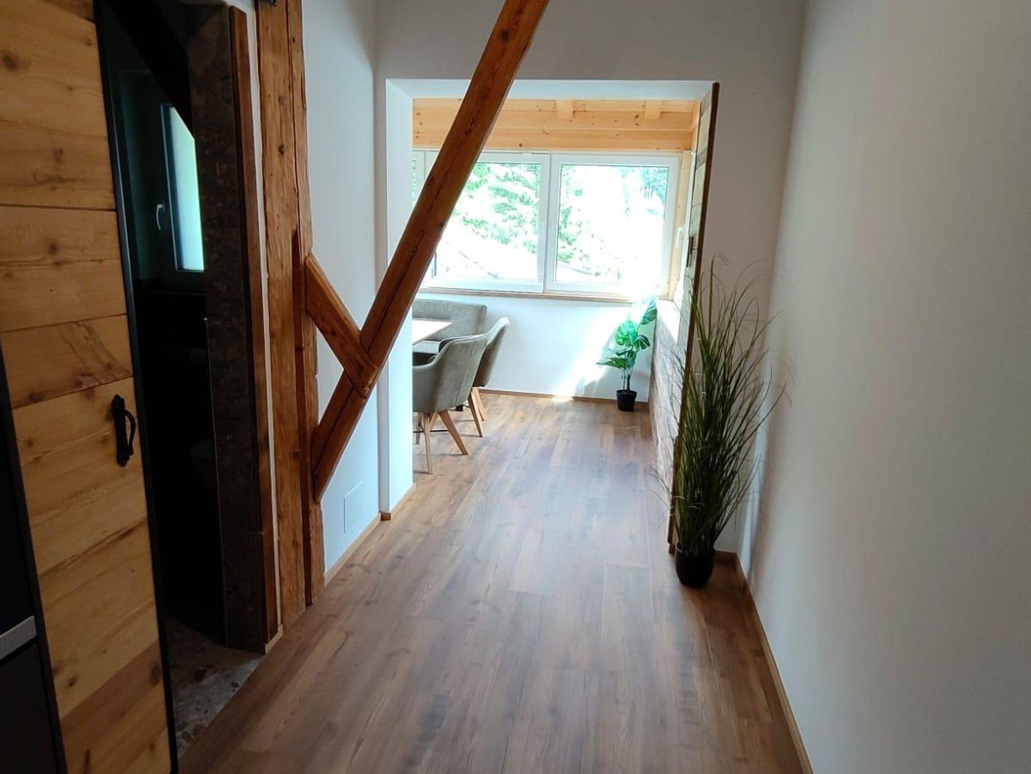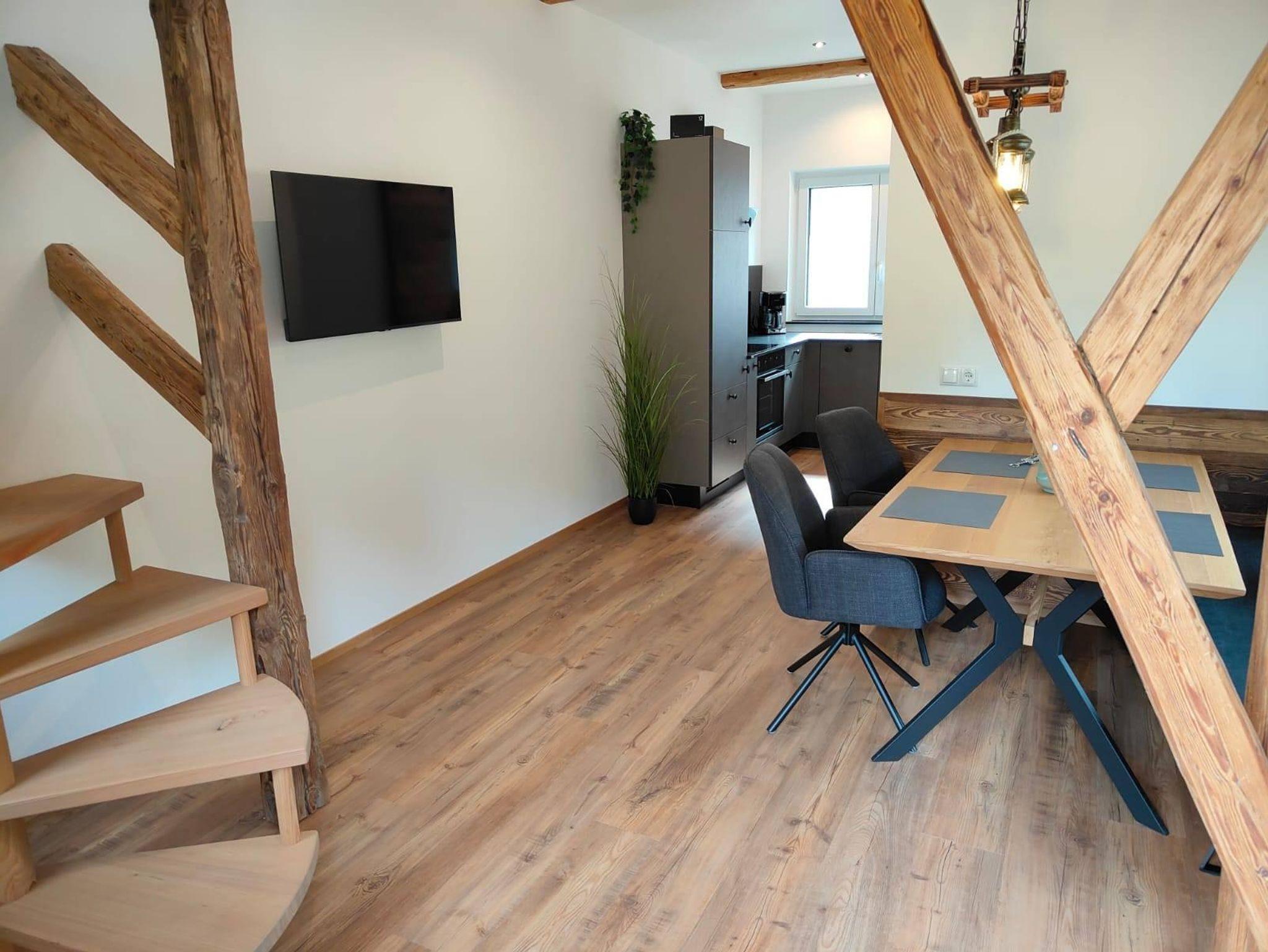 Auf der Ebene 1 befindet sich der rustikal moderne und komplett eingerichtete Wohnraum mit Küche,ein schöner Balkon, sowie unser tolles Badezimmer mit XXL Dusche.