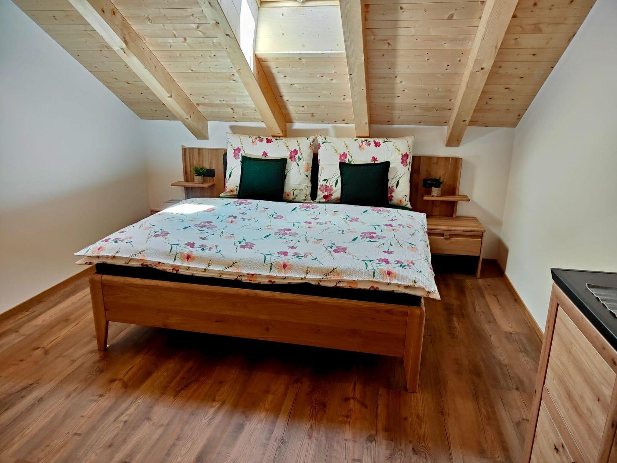 Auf der Ebene 2 läd der offene gemütliche Schlafbereich mit einem Doppelbett und einem weiteren erweiterbaren Bett zum träumen ein.