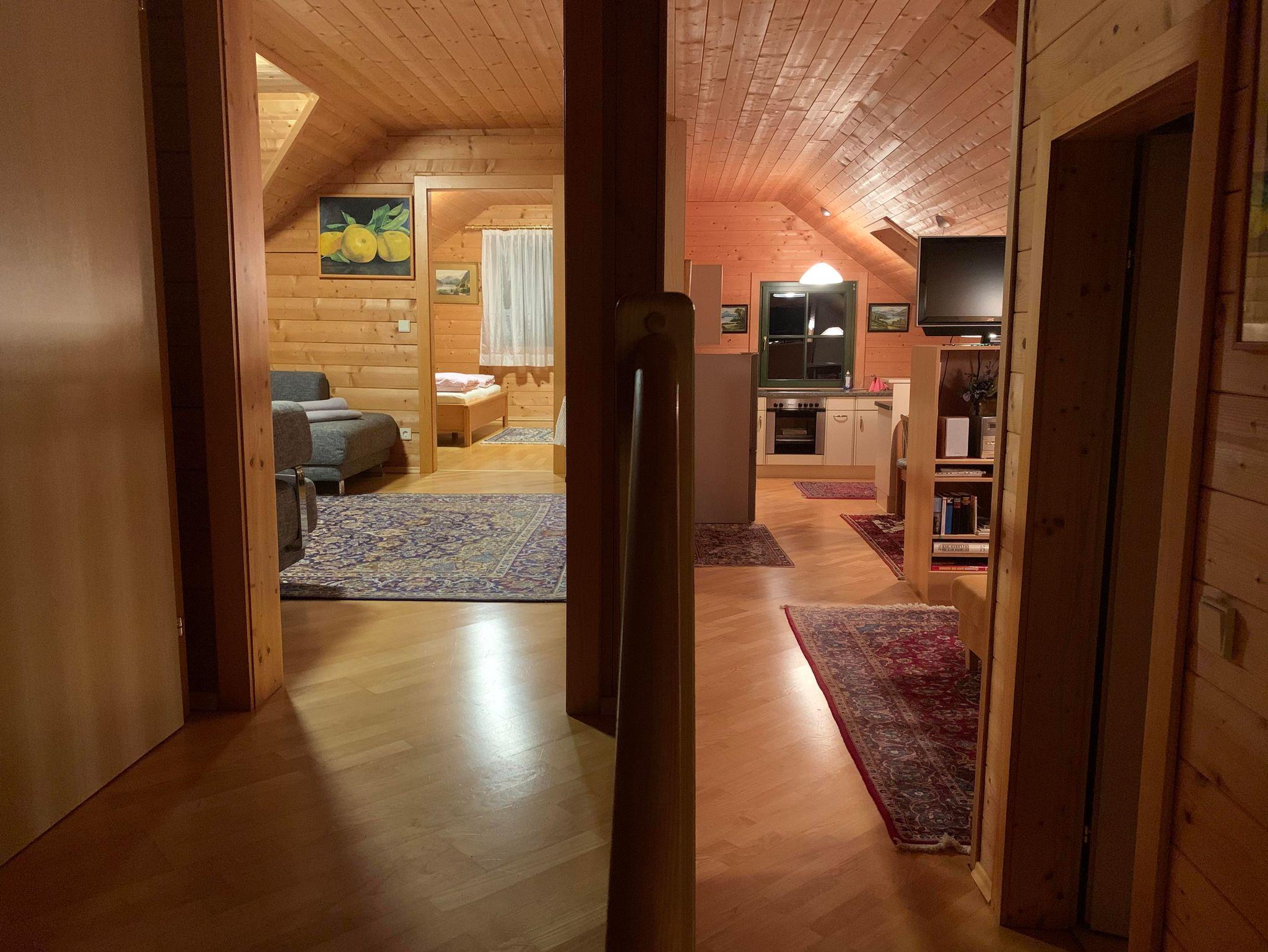 Diese Ferienwohnung wurde vollständig aus Holz errichtet. Lassen Sie sich von diesem natürlichen Baustoff begeistern – Holz schafft eine harmonische Atmosphäre, bietet Wärme und Behaglichkeit und vermittelt gleichzeitig Kraft, Geborgenheit und Ruhe.