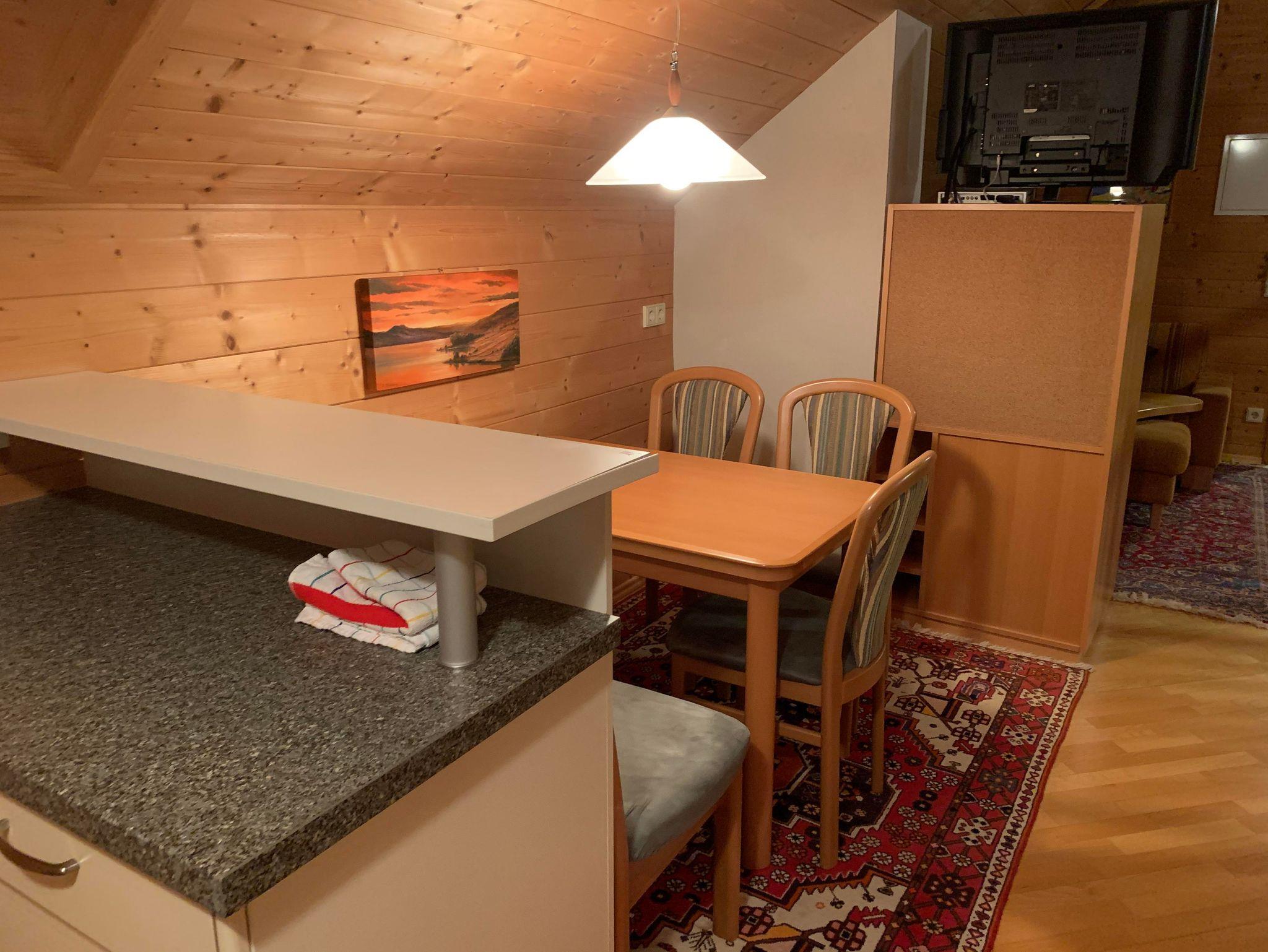 Die voll ausgestattete Küche verfügt über vier E-Platten, eine Kaffeemaschine, einen Kühlschrank und einen Geschirrspüler. Ein Esstisch und eine gemütliche Wohnecke mit Sofa, SAT-TV mit Großbildschirm und kostenlosem WLAN sorgen für Komfort. Parkettböden und zentrale Beheizung runden das Wohnambiente ab. Zur weiteren Ausstattung gehören die Nutzung einer Waschmaschine sowie bereitgestellte Bettwäsche und Handtücher. Ein Parkplatz steht ebenfalls zur Verfügung.