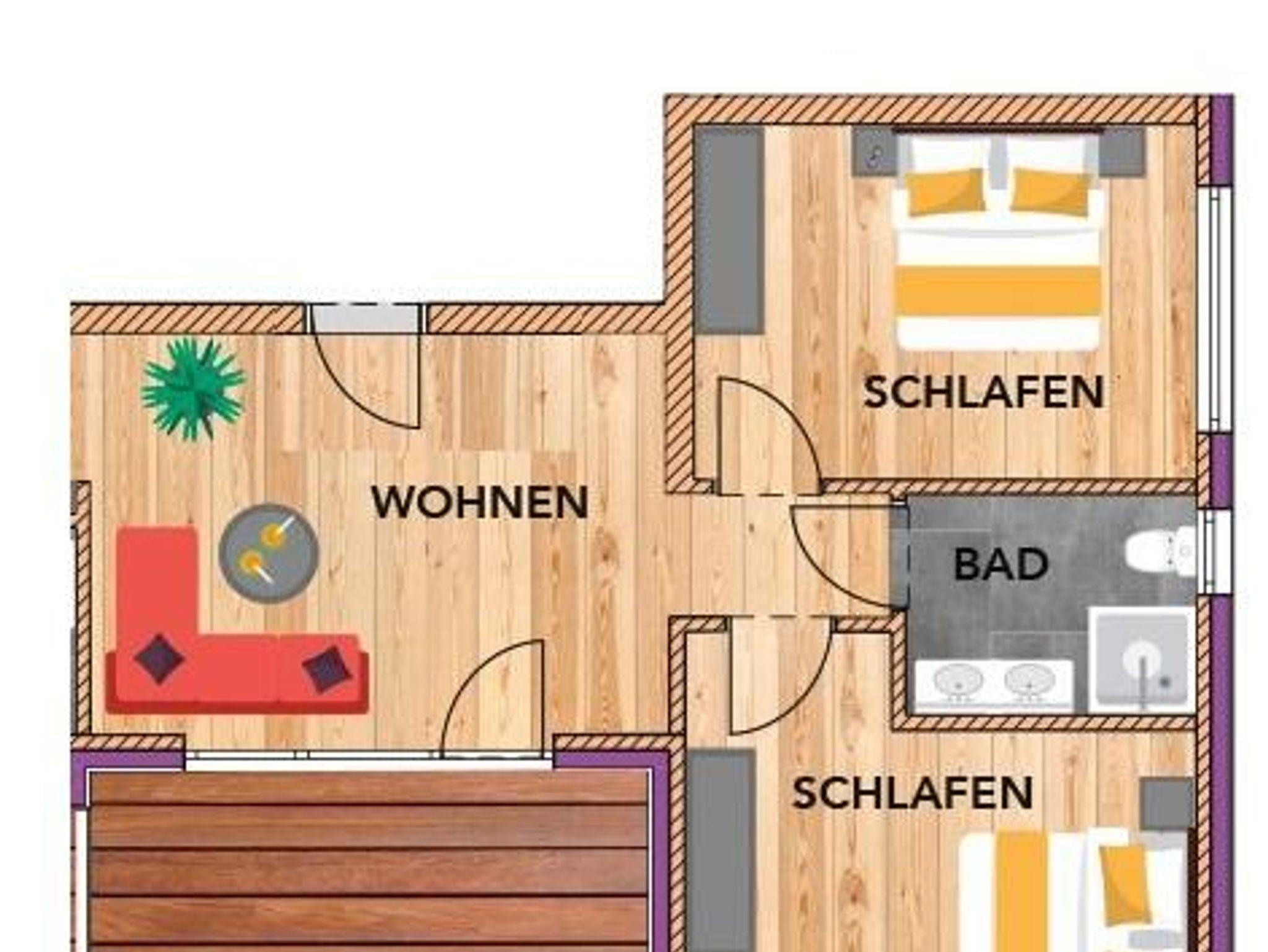 - einen gemütlichen Wohnbereich mit Couch bzw.