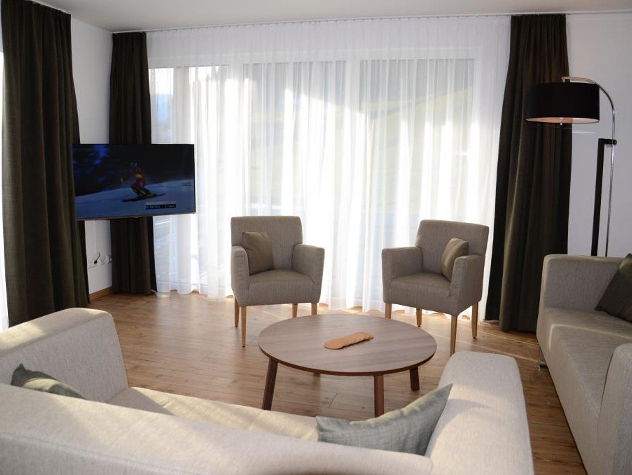 Ein sehr geräumigen Apartment von 135 m2, eignet sich sehr für zwei Familien! Das ebenerdige Apartment ist von Licht durchflutet dank der großen Fenster im Wohnraum mit eigener an den Garten grenzenden Terrasse! Das gemeinschaftliche Wohnzimmer hat eine reich ausgestattete offene Küche mit einem großen Esstisch um gemütlich mit einander zu speisen. Es gibt 4 Schlafzimmer, 2 Badezimmer und Toiletten. Bettwäsche und Handtücher sind vorhanden. Im Haus gibt eine erwärmten Skikeller und für die Mieter diese Apartments sind 2 Parkplätze auf dem eigenen Gelände reserviert.