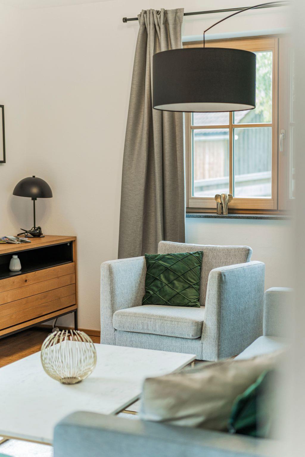 Inside the flat, underfloor heating in certain areas provides pleasant warmth and a cosy feeling. For coffee lovers, a capsule coffee machine is available to start the morning with an aromatic cup of coffee. A fully equipped kitchen with a dishwasher and kettle makes meal preparation easy, so you and your loved ones can enjoy meals together without sacrificing comfort.