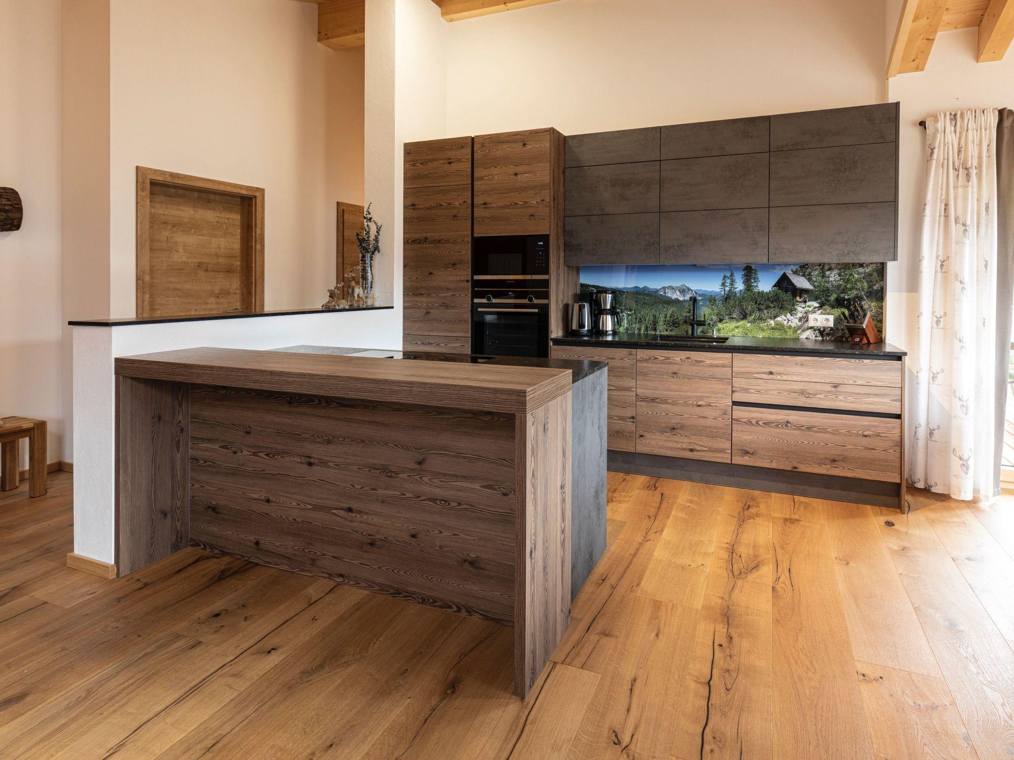 Our brand new Dachstein Chalet is located in a quiet and sunny residential area, directly adjacent to spacious grassland areas and with a magnificent view of mountains, green meadows, forests and in winter directly on the ski slope. The distance to the ski lift is around 900 metres. The village centre is around 350 metres away. In the winter season, the free shuttle bus to the lift stops right in front of the house and takes our guests to the lift and back.
