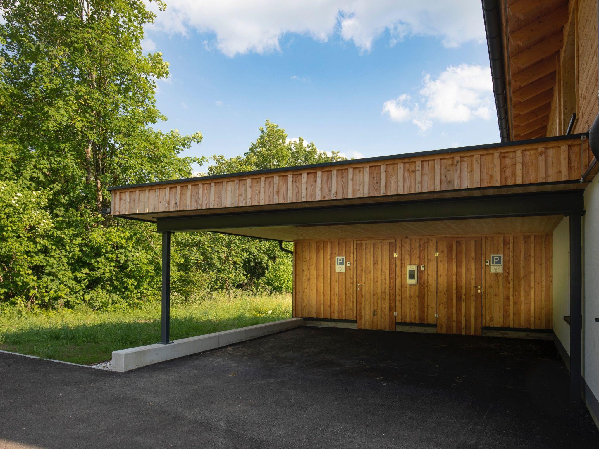 Each chalet has two large terraces and access to the garden. There are also two carport parking spaces, each with an electric charging point, and two lockable storage rooms for skis, bikes, etc.