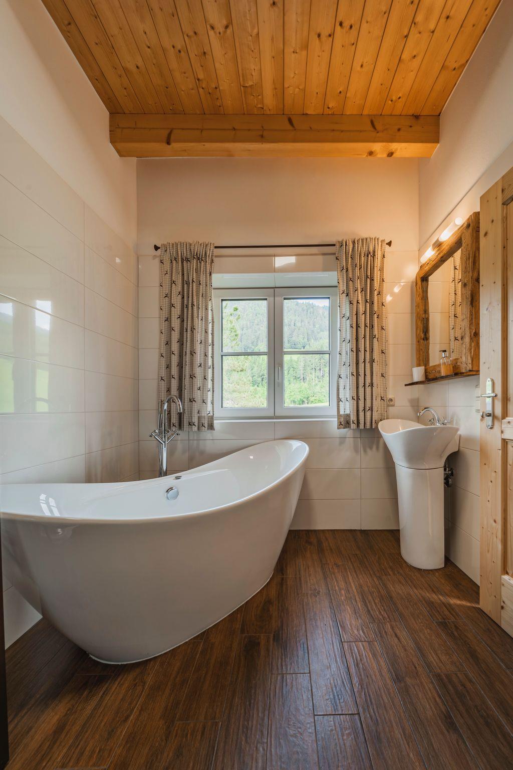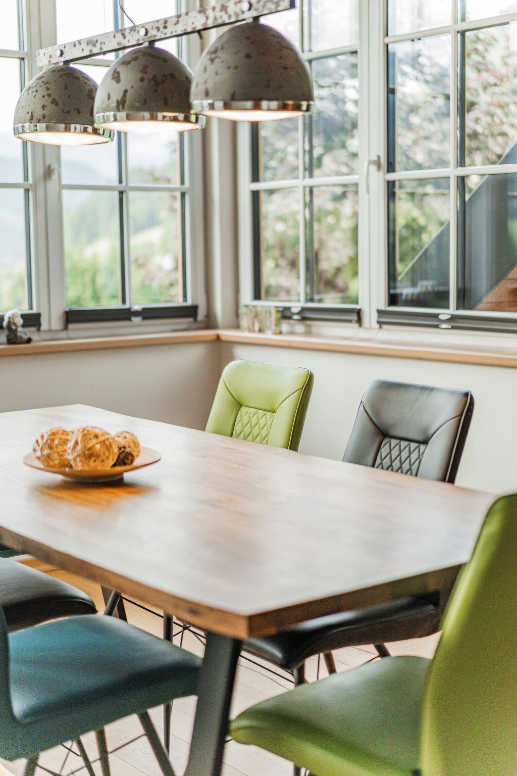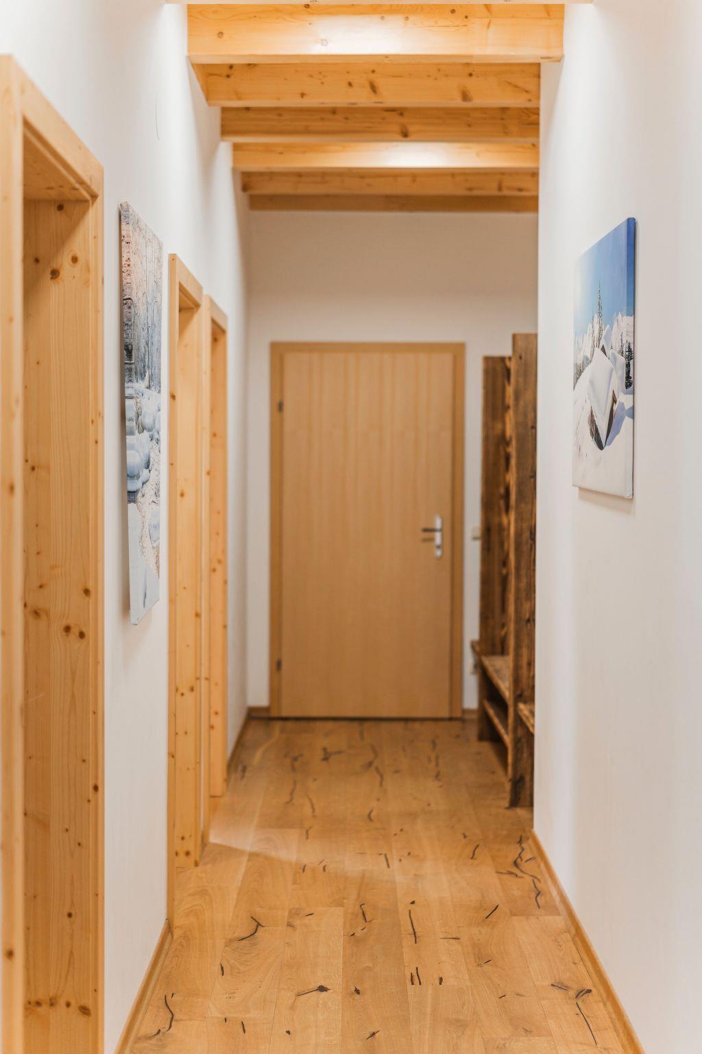 The penthouse holiday flat "Oberweiglhof" offers a top location in the middle of the Dachstein West ski area, a luxurious ambience with high-quality furnishings, state-of-the-art equipment and a rustic cosiness, with this accommodation you will always keep your holiday in good memory!!! The Oberweiglhof is a 350-year-old farmhouse, which was converted into six flats a few years ago with great effort and attention to detail. Architecturally, it was built according to the centuries-old Salzkammergut style and it was built largely in organic timber construction.the penthouse flat "Oberweiglhof" now offered for tourist rental will inspire you. With around 125 m2 of usable living space, it is not only very spacious but also extremely high quality and cosy. In addition, there is a balcony where you can enjoy your breakfast outdoors with a wonderful view of the mountains and meadows, as well as a carport for your cherished car and the lockable storage room right next to the carport, where you can store your skis, sledges or bikes. For your skis there is also a ski room with boot dryer in the house and with the guest card you will also receive a locker for 6 people in the lift building where you can store your skis, ski boots etc.. The flat itself not only impresses with its magnificent view, but also with its unique interior design. The exposed roof truss means that all the structural timbers are visible from the inside, giving the flat a special flair, and the living area consists of a great eat-in kitchen with dining area in the veranda and a large gallery area, which has been furnished with an extremely cosy Italian designer leather couch and a TV area. In addition to the sleeping area in the gallery, there are two extremely cosy bedrooms, one of which has access to the balcony and the other has its own bathroom with shower and free-standing bathtub, and since we want to offer you an unforgettable holiday, we have not skimped on the furnishings and equipment. All the furniture was made from solid wood by a Tyrolean company specialising in reclaimed wood. The bedroom furniture is made of sunburnt old wood or solid old wooden beams. The kitchen, on the other hand, was made from solid old oak and fitted with very expensive, high-quality appliances. Cookware from WMF, cutting knives from Zwilling, crockery and glasses from Ritzenhoff, Nespresso coffee machine with milk frother and much more is ready for you.