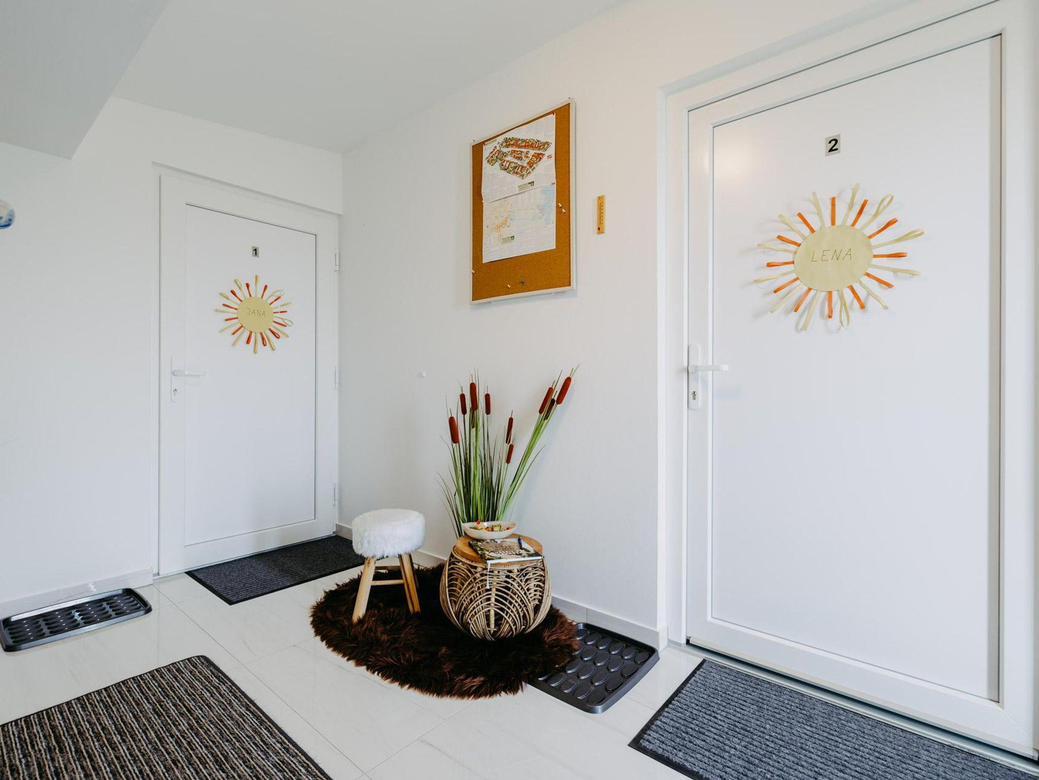 Liebevoll eingerichtete und voll ausgestattete Appartements “Jana” für 1-4 Personen und “Lena” für 1-3 Personen, mit Küchenzeile, Kühlschrank mit TK-Fach, Kaffeemaschine, Wasserkocher, Toaster, Eierkocher, sowie sämtliches Geschirr; Badezimmer mit Dusche, Waschbecken und WC; Garderobe, Esstisch; sehr hochwertigem Boxspringbett (Liegefläche verstellbar) und ein Schlafsofa 140x200 cm, großem Smart-TV mit Internet, gratis WLAN; Balkon mit Weingartenblick - Fahrrad und PKW Abstellplatz; ebenfalls vorhanden ist der Empfangsraum (Vorraum) mit Infopoint und Wäschezeile mit Waschmaschine!