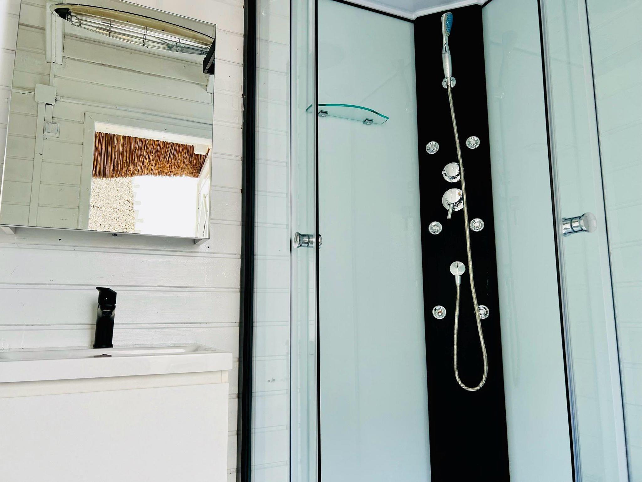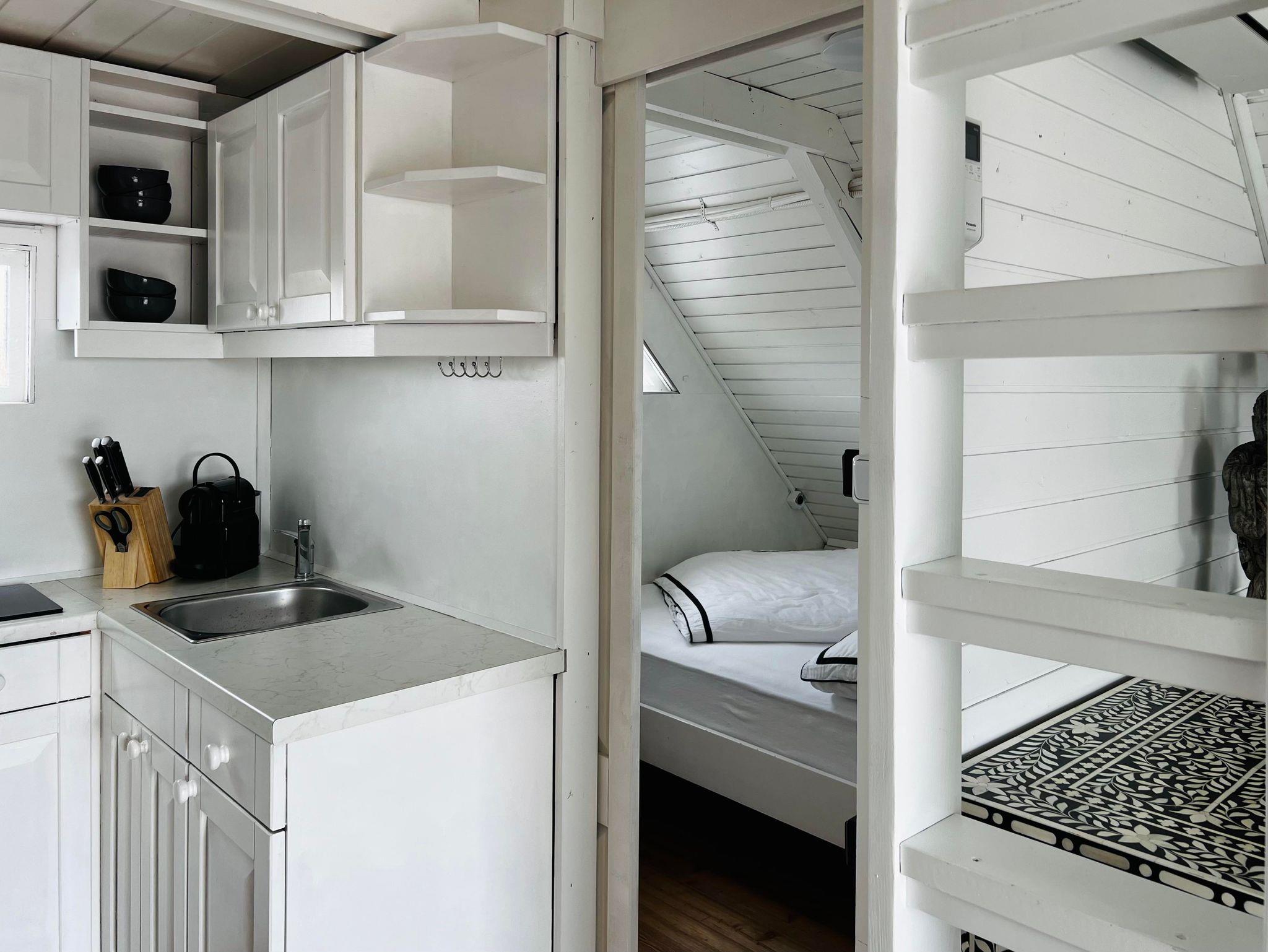 Klimaanlage für Kühlen und Heizen, eine kleine Küche, Geschirrspülmaschine, Kühlschrank und eine Nespresso Maschine sind vorhanden. WC mit Waschbecken befinden sich in der Hütte. Das Badezimmer befindet sich in einem Nebenhaus. Bitte beachten Sie, dass das Leben in einer Seehütte trotz allem, eher an einen Segel oder Camping Urlaub erinnert und das Platzangebot in der Hütte recht beschränkt ist.