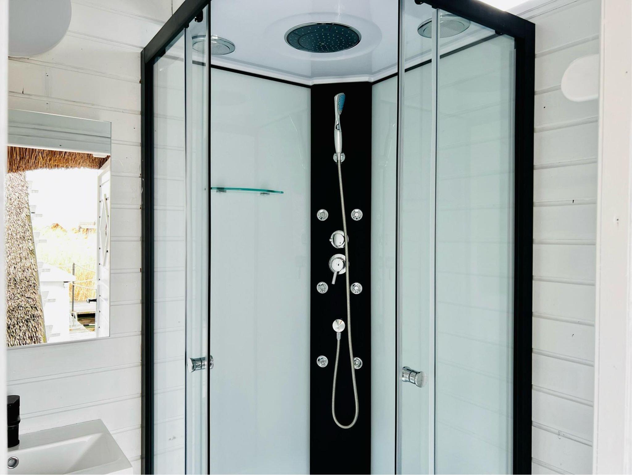 Klimaanlage für Kühlen und Heizen, eine kleine Küche, Geschirrspülmaschine, Kühlschrank und eine Nespresso Maschine sind vorhanden. WC mit Waschbecken befinden sich in der Hütte. Die Dusche finden Sie in einem extra Badehäuschen wo sich auch Kühlschrank, Geschirrspüler und die Waschmaschine befinden. Bitte beachten Sie, dass das Leben in einer Seehütte trotz allem, eher an einen Segel oder Camping Urlaub erinnert und das Platzangebot in der Hütte recht beschränkt ist.