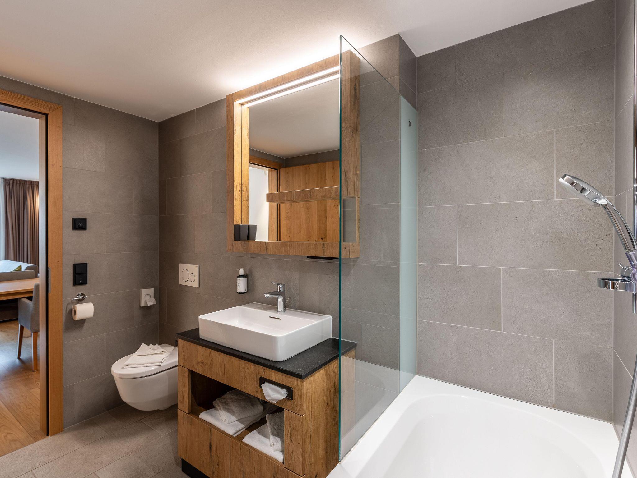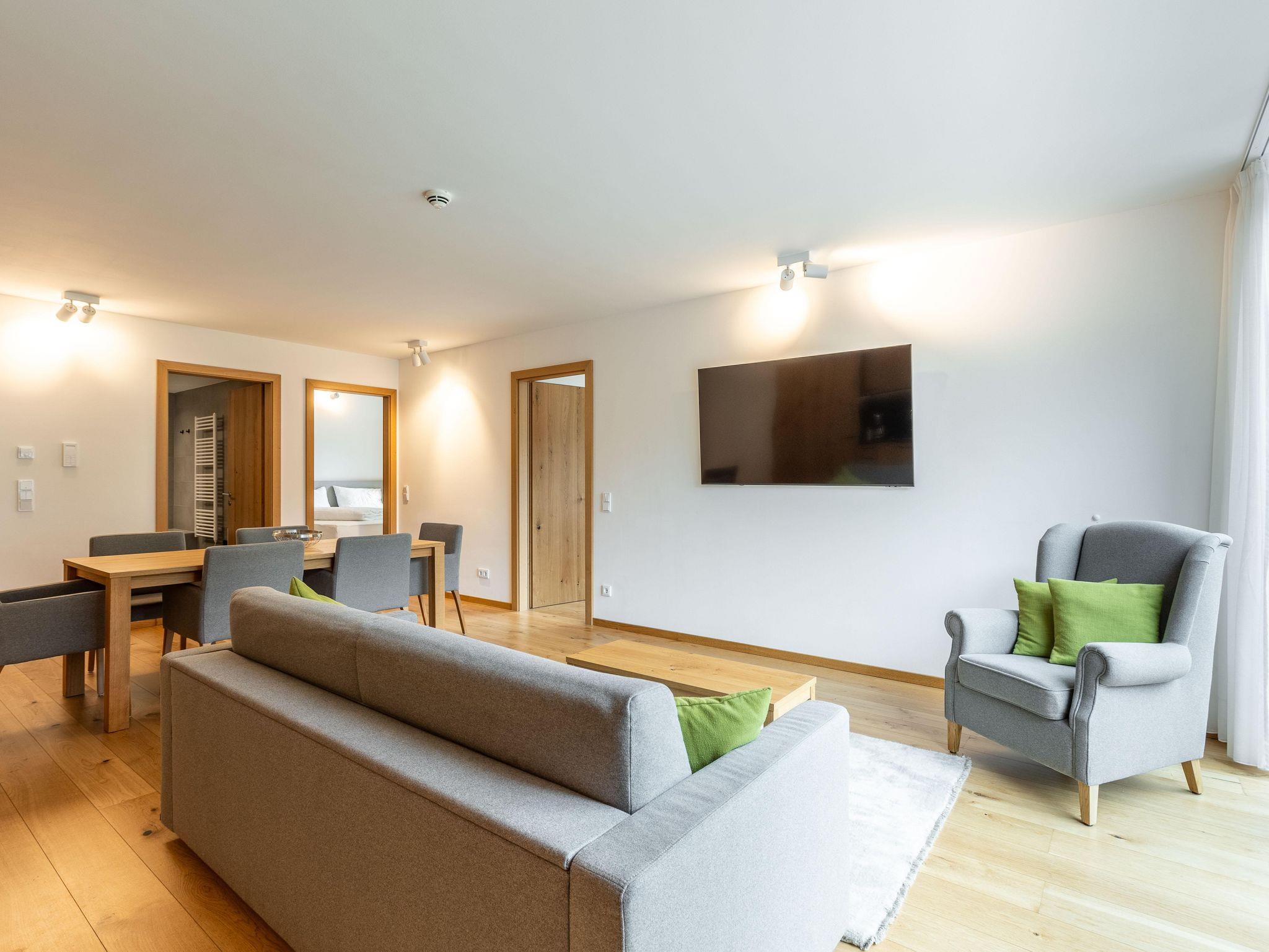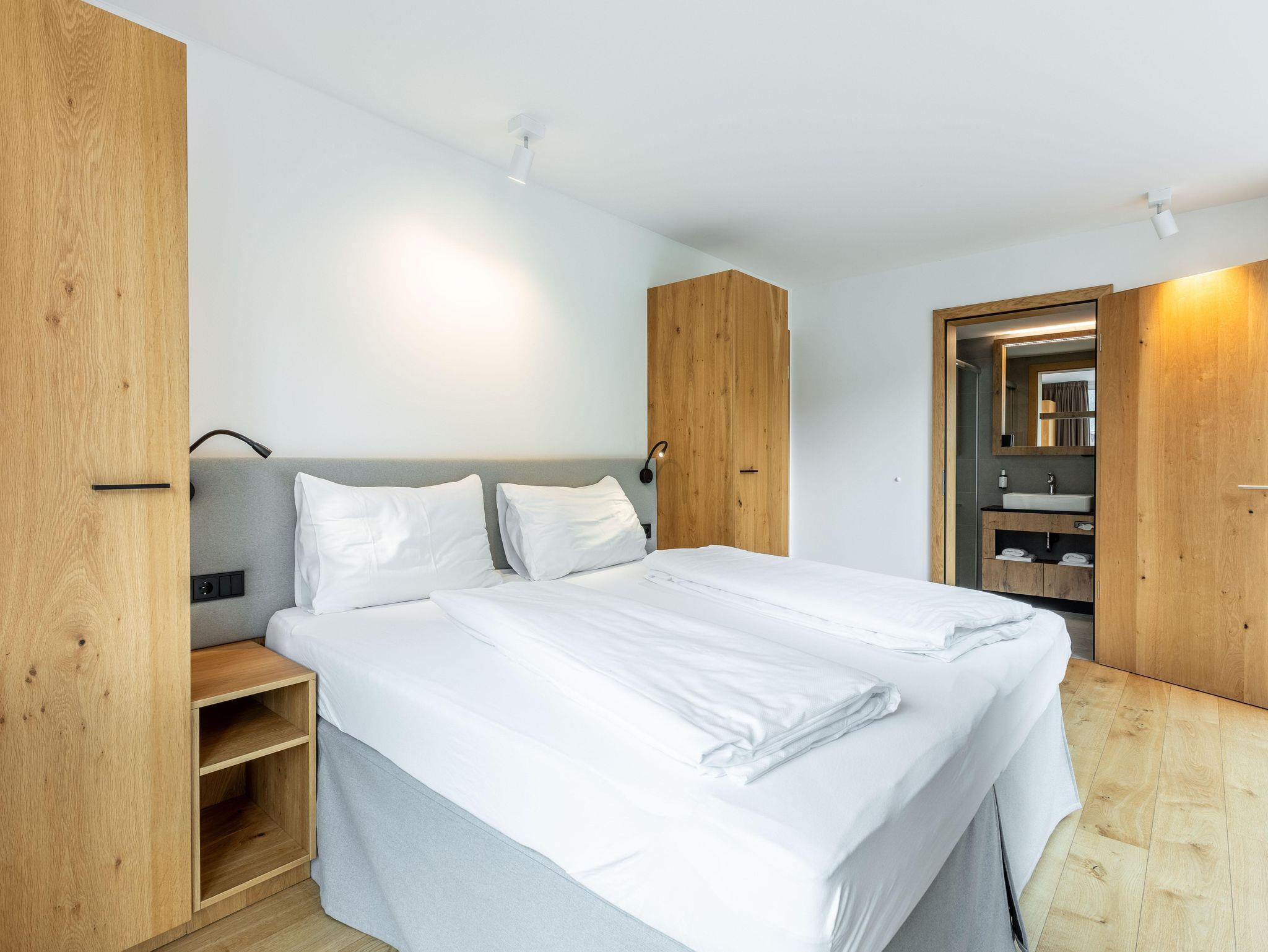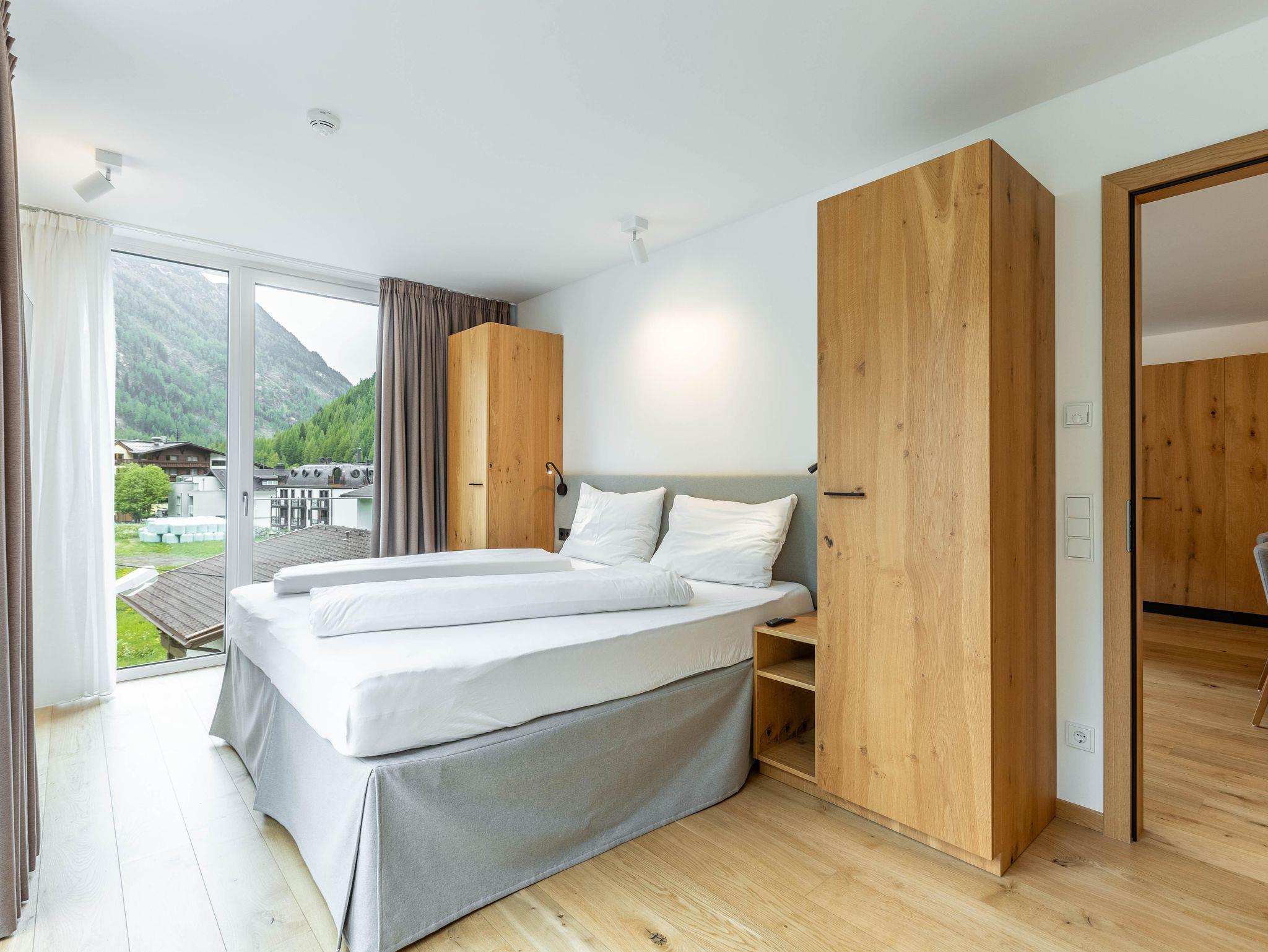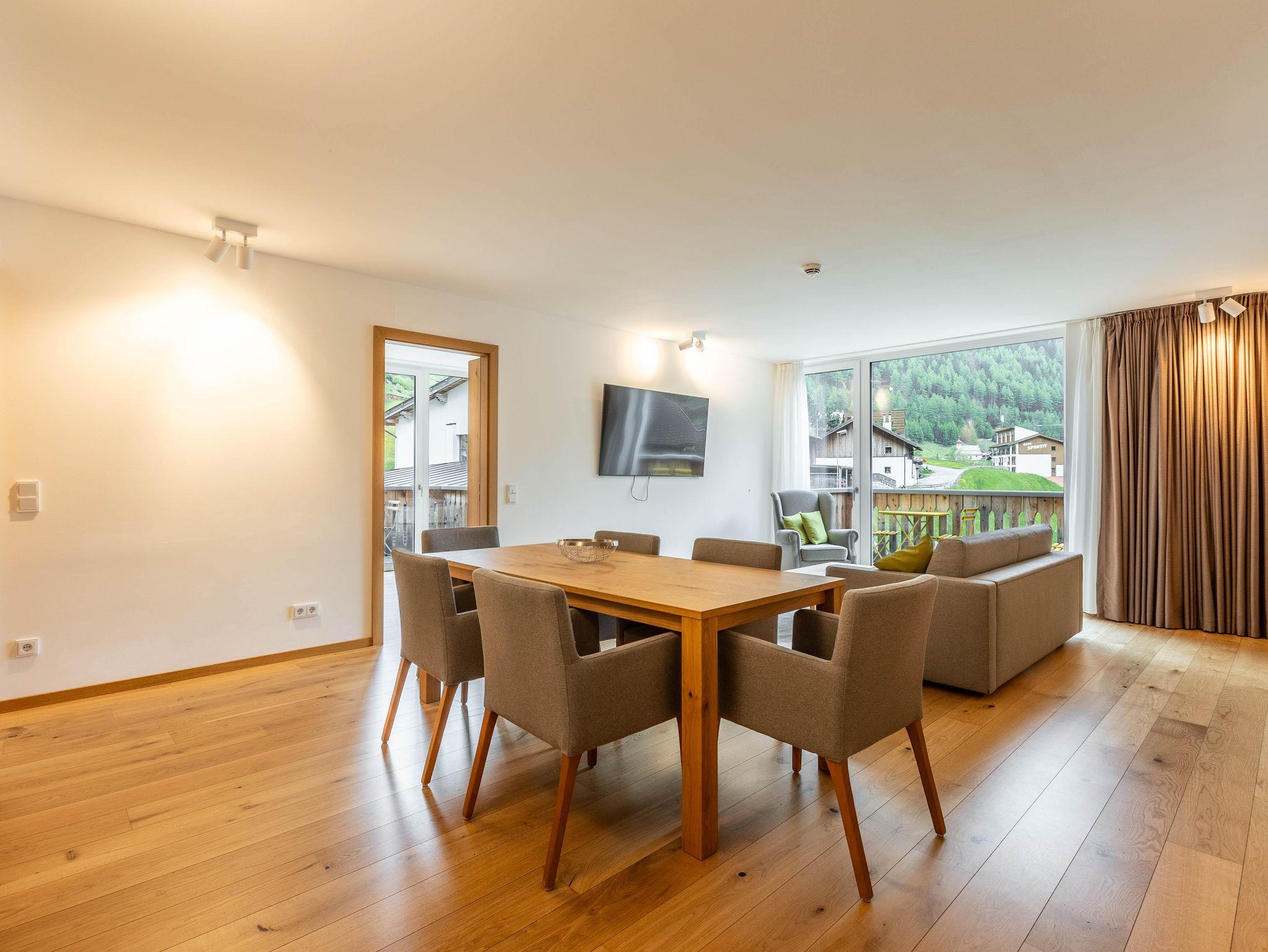 Willkommen in Ihrem Hotel-Apartment im Ötztal! Es bietet 2 Schlafzimmer mit Doppelbetten, eines mit Bad und WC. Zusätzlich gibt es ein separates WC und ein weiteres Bad mit Wanne. Wohnraum mit Balkon, Küche und Essbereich laden zum Verweilen ein.