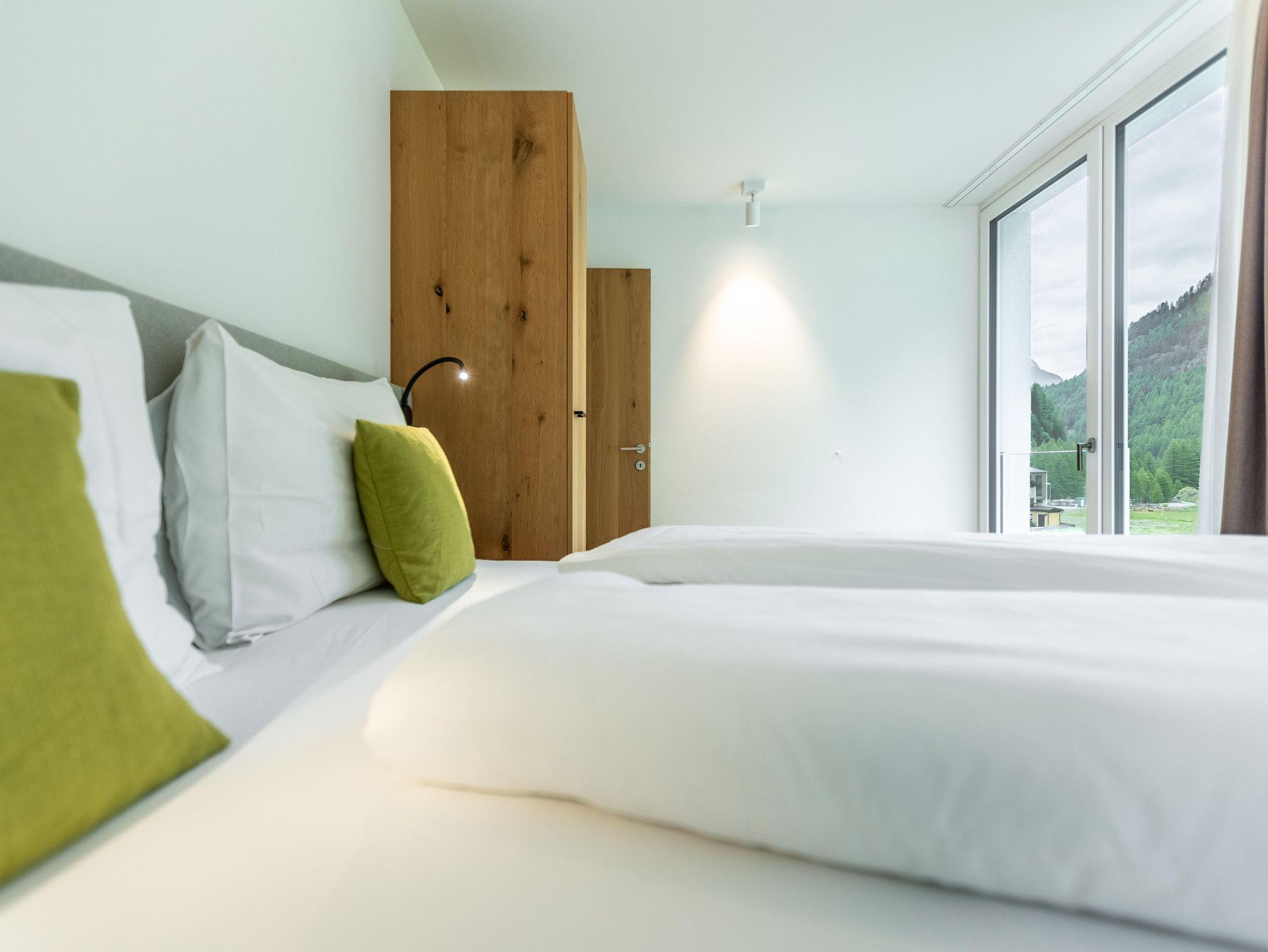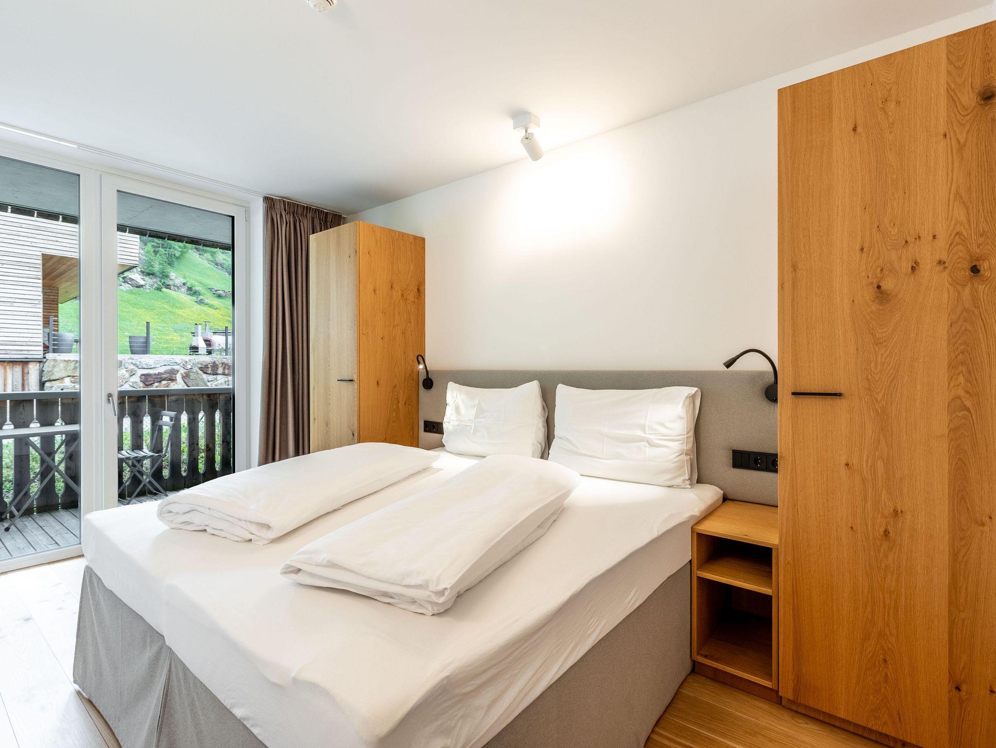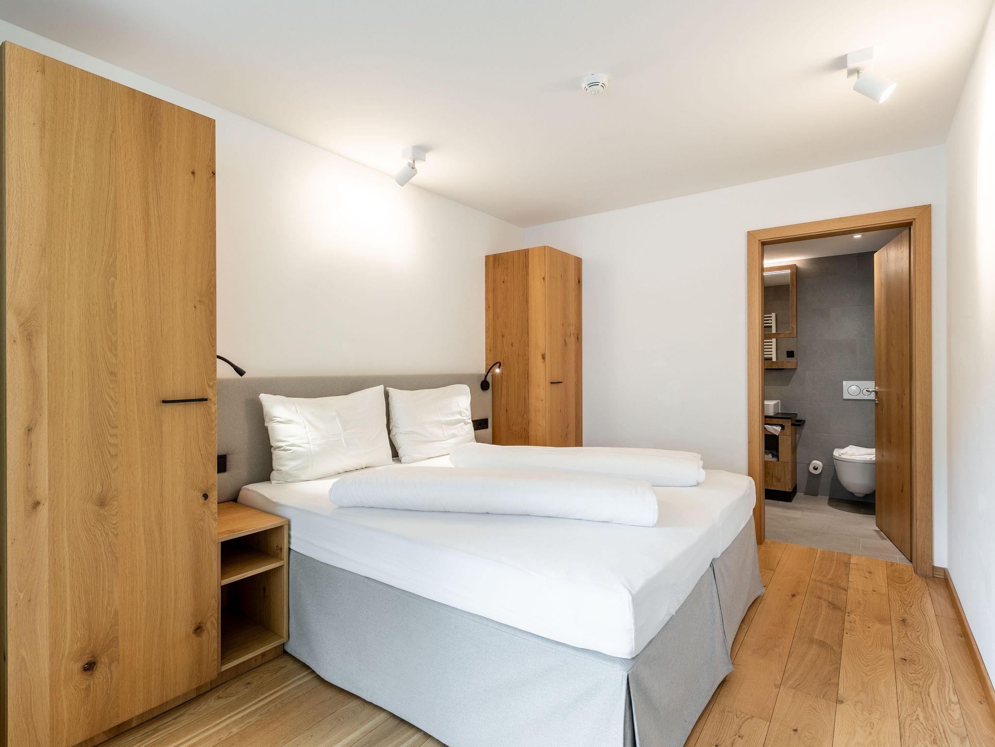 Willkommen in Ihrem Hotel-Apartment im Ötztal! Es bietet 2 Schlafzimmer mit Doppelbetten, eines mit Bad und WC. Zusätzlich gibt es ein separates WC und ein weiteres Bad mit Wanne. Wohnraum mit Balkon, Küche und Essbereich laden zum Verweilen ein.