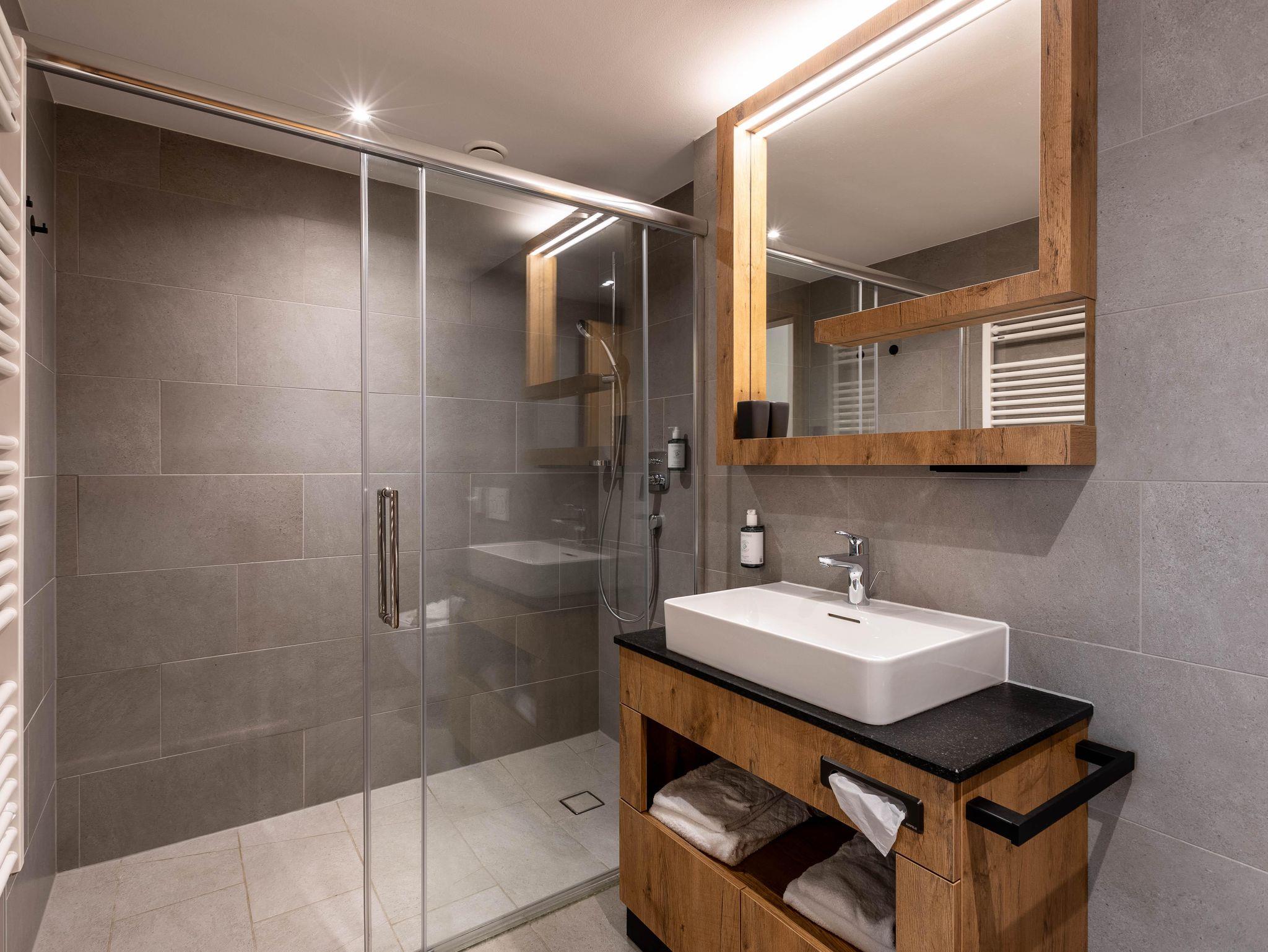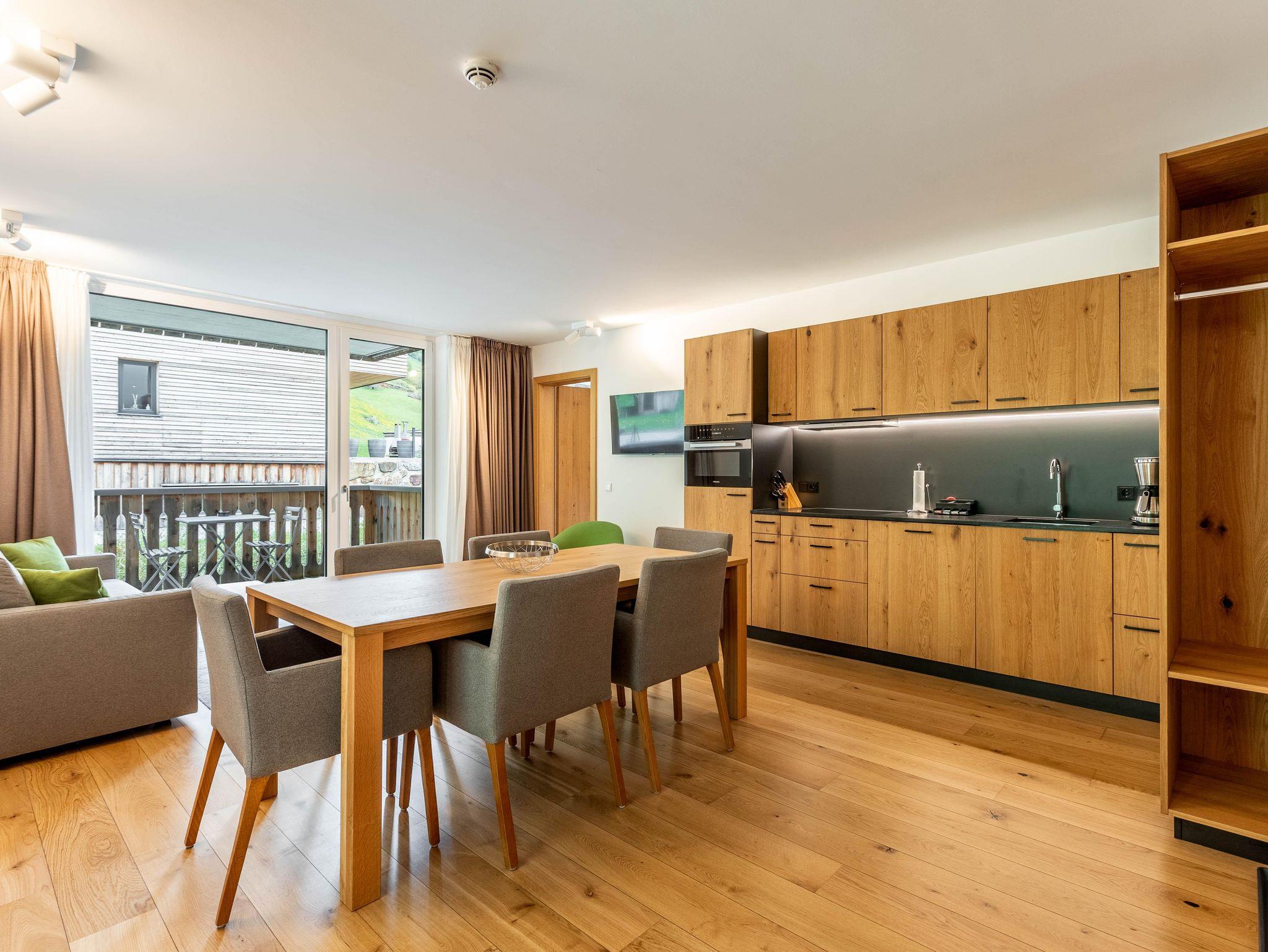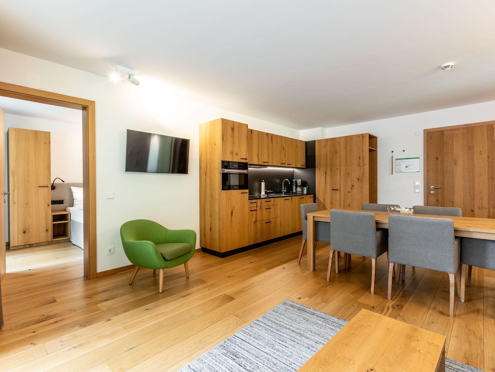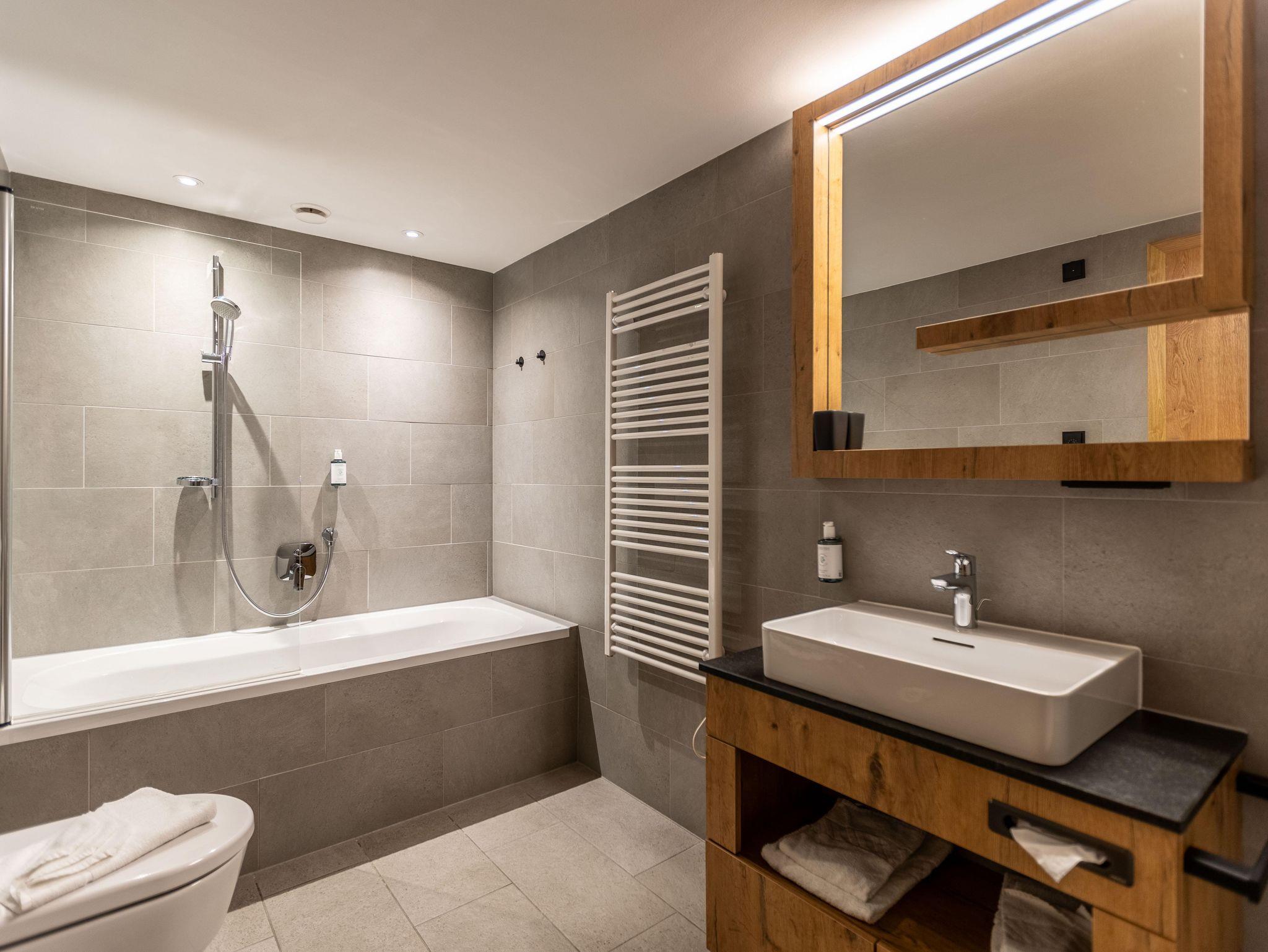 Willkommen in Ihrem Hotel-Apartment im Ötztal! Es bietet 2 Schlafzimmer mit Doppelbetten, eines mit Bad und WC. Zusätzlich gibt es ein separates WC und ein weiteres Bad mit Wanne. Wohnraum mit Balkon, Küche und Essbereich laden zum Verweilen ein.