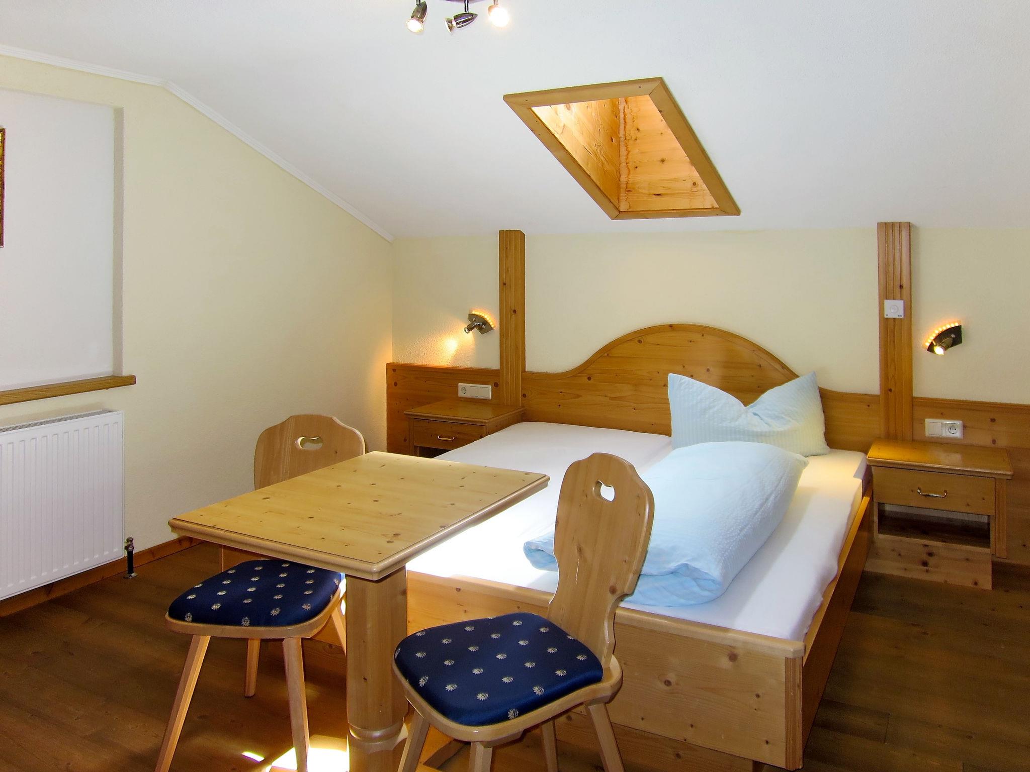 "Moosalm", 4-room apartment 95 m2 on 3rd floor. Practical and rustic furnishings: 1 room with 1 sofabed, 1 double bed, shower/WC, satellite TV and radio. 2 rooms with sloping ceilings with rooflight, each room with 1 double bed, bath/WC, satellite TV and radio. Kitchen-/living room (dishwasher, 4 ceramic glass hob hotplates, microwave, electric coffee machine) with dining table. Exit to the balcony. Oil heating. Wooden floors. Balcony. Balcony furniture, barbecue. Panoramic view. Facilities: children's high chair, baby cot for up to 2 year olds (extra). Internet (WiFi, free). Please note: non-smokers only. Smoke alarm. No internal connecting door between the separated properties. Access to all rooms via the staircase (no internal connection).