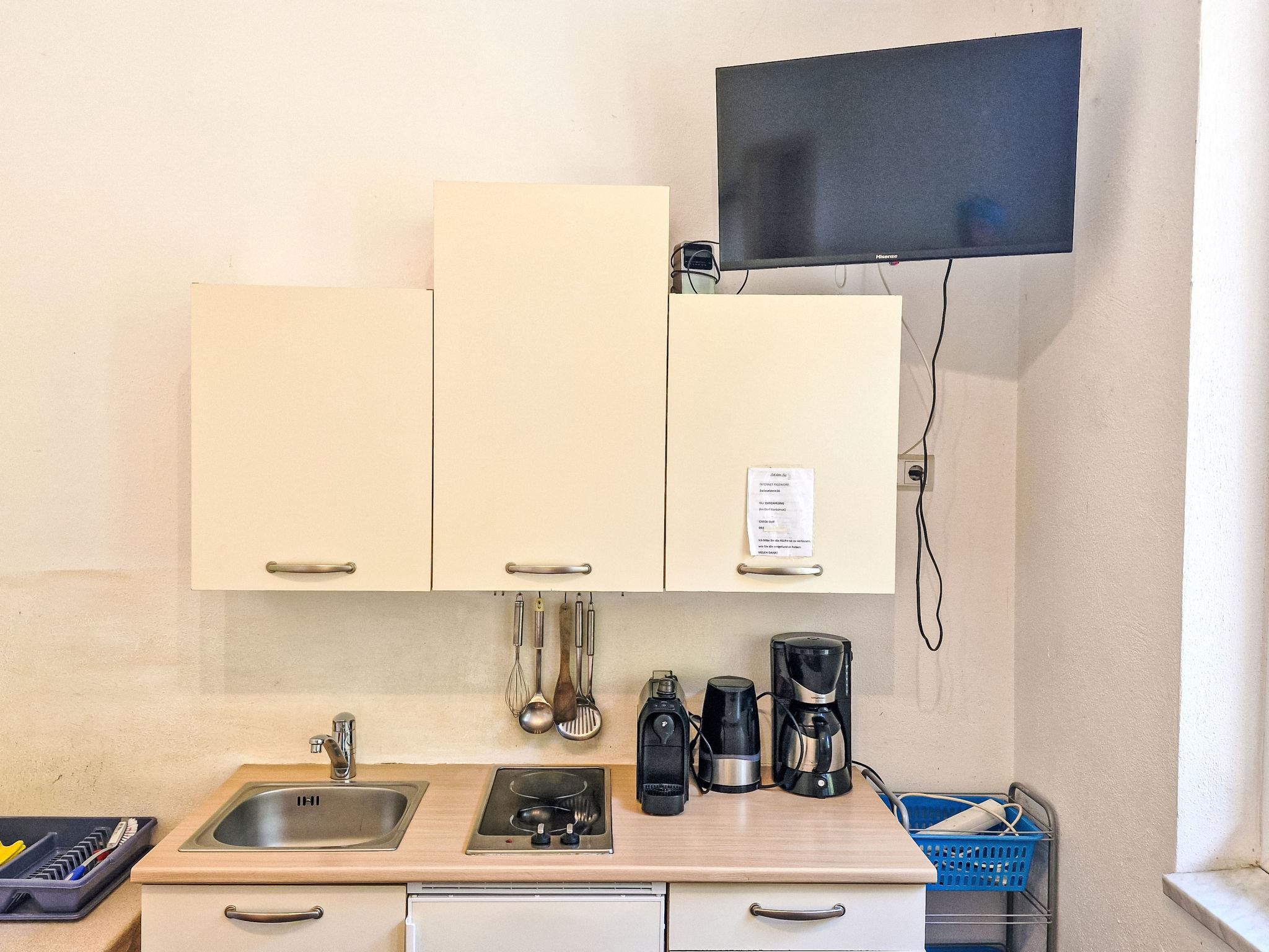 "Simone", 2-room apartment 35 m2 on 2nd floor. Practical furnishings: 1 room with 1 double bed, shower/WC and satellite TV. Kitchen-/living room (mini-oven, 2 ceramic glass hob hotplates, electric coffee machine) with dining table, 1 double sofabed and satellite TV. Oil heating. Facilities: children's high chair, baby cot for up to 2 year olds. Internet (WiFi, free). Please note: maximum 1 pet/ dog allowed. Private entrance. The door to the shower//WC is only medium-high. When there are less than the maximum number of guests staying at the property, not all of the housing units will be available for use.