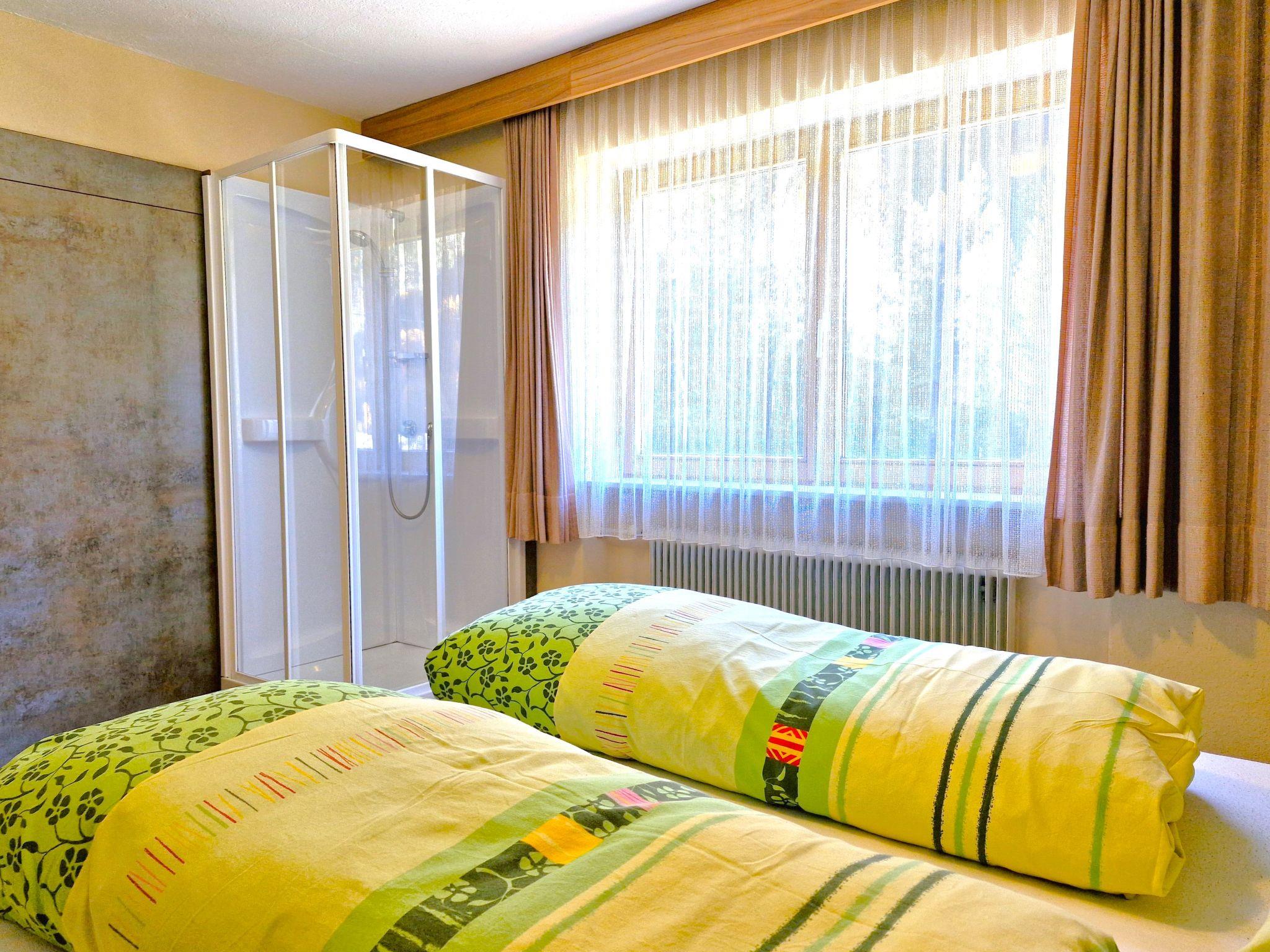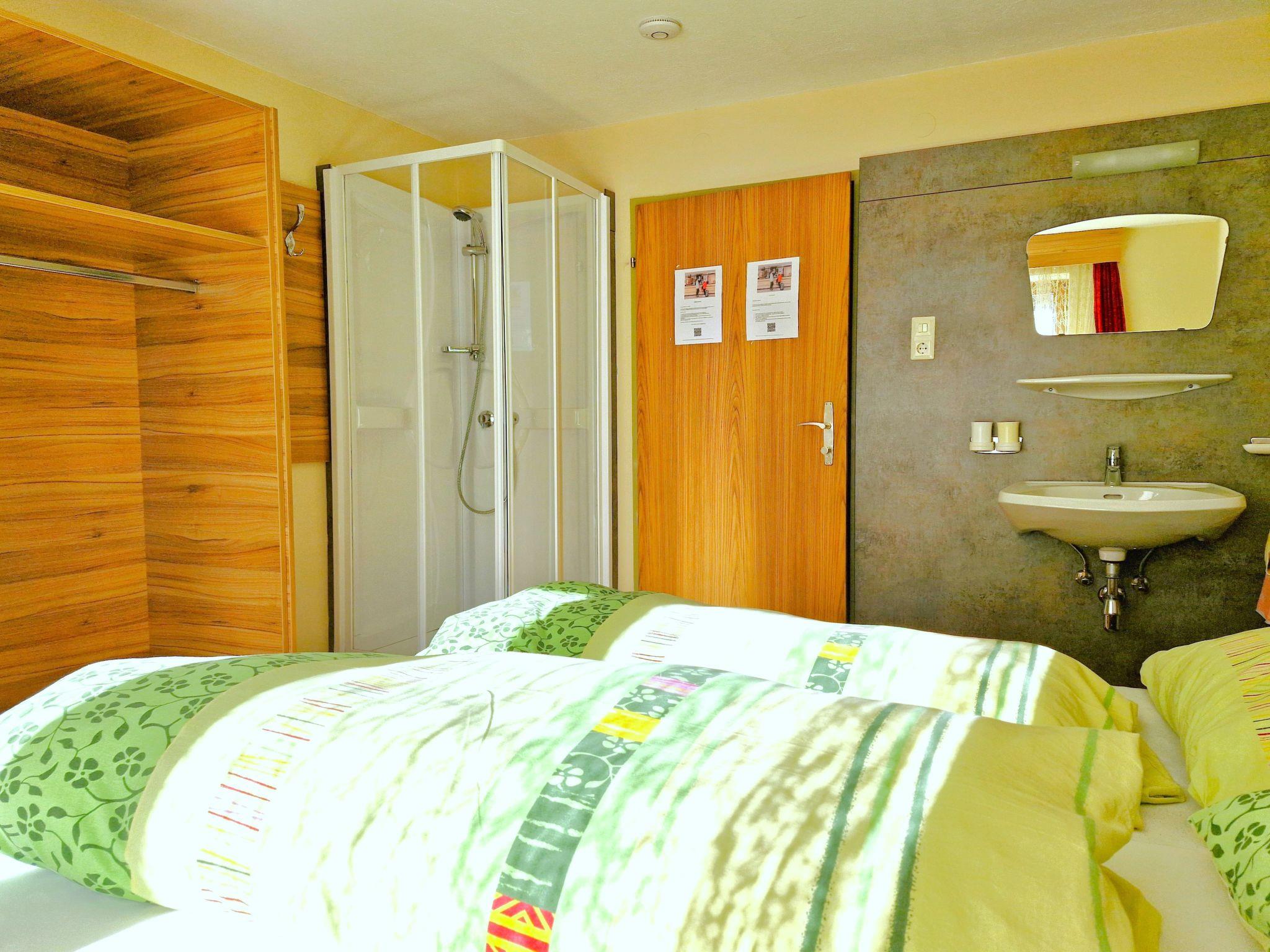 "Waldhof", 17-room house 300 m2 on 3 levels. Spacious, partly renovated in 2020, simple and cosy furnishings: living/dining room with dining table, dining nook and satellite TV. 1 room with 1 bed, hand-basin and shower. 1 room with 1 double bed, hand-basin and shower. Kitchen (4 hot plates, oven, dishwasher, toaster, kettle, electric coffee machine) with dining table. 2 sep. WC's. Upper floor: 2 rooms, each room with 1 bed and hand-basin. Exit to the balcony. 4 rooms, each room with 1 double bed, hand-basin and shower. Exit to the balcony. 1 room with 1 double bed, hand-basin and shower. Bathroom, 3 sep. WC's. 2nd upper floor: 2 rooms with sloping ceilings, each room with 1 bed and hand-basin. 3 rooms with sloping ceilings, each room with 1 double bed, hand-basin and shower. Exit to the balcony. 2 rooms with sloping ceilings, each room with 1 double bed, hand-basin and shower. Shower, 3 sep. WC's. Oil heating. Wooden floors, carpet. 2 balconies. Facilities: children's high chair, baby cot for up to 2 year olds (extra). Internet (WiFi, free). Please note: maximum 2 pets/ dogs allowed. Smoke alarm. When booking at the rate for 10 persons not available: 9 bedrooms. When booking at the rate for 18 persons not available: 5 bedrooms. When there are less than the maximum number of guests staying at the property, not all of the bedrooms will be available for use.