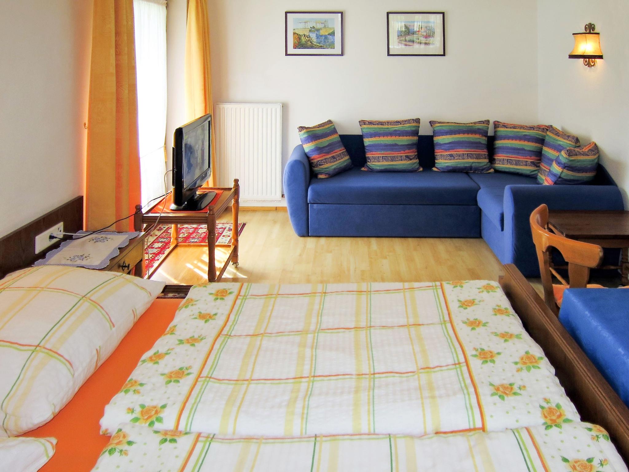 "Anemone", 4-room apartment 100 m2 on 1st floor. Practical furnishings: living/dining room with dining table, cable TV, radio and tiled stove. Exit to the balcony. 1 room with 1 double sofabed and 1 double bed. Exit to the balcony. 1 room with 1 double bed. Exit to the balcony. 1 room with 1 double bed. Kitchen (oven, dishwasher, 4 ceramic glass hob hotplates, electric coffee machine). 2 showers/WC, sep. WC. Oil heating. Balcony, south facing position. Balcony furniture. Facilities: children's high chair, baby cot for up to 2 year olds. Internet (WiFi, free). Please note: smoke alarm. Attention: no lockable storage facilities for bicycles.