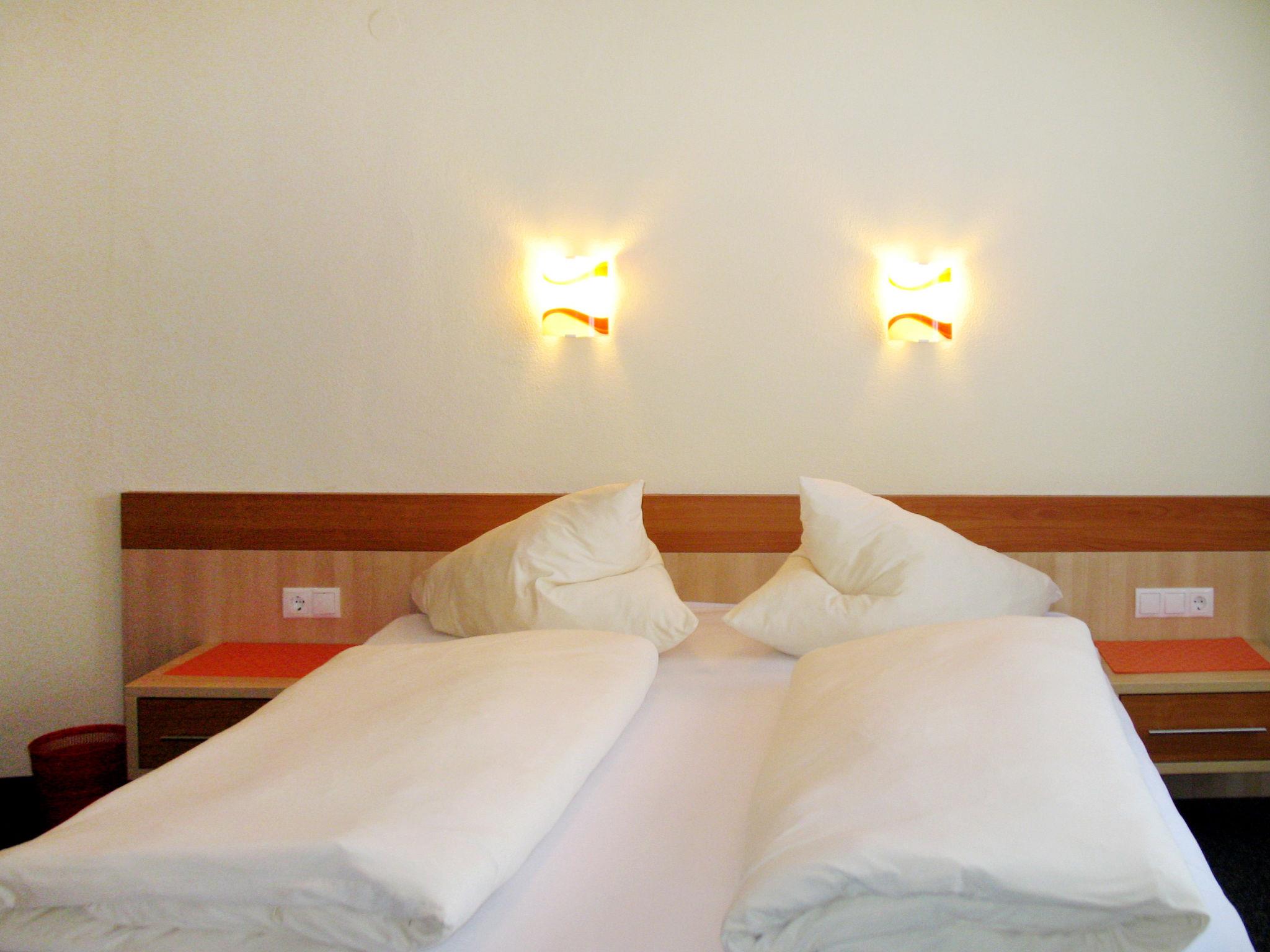 "Birkenheim", 4-room apartment 80 m2 on 1st floor. Practical furnishings: 1 room with 1 bed, 1 double bed and shower/WC. Walk-through room with 1 double bed and shower/WC. Exit to the balcony. Interconnecting room with 1 double bed and shower/WC. Exit to the balcony. Kitchen-/living room (4 hot plates, oven, dishwasher, kettle, microwave, electric coffee machine) with dining table, satellite TV. Exit to the balcony. Oil heating. Carpet. Balcony. Facilities: children's high chair, baby cot for up to 2 year olds (extra). Internet (WiFi, free). Access to the apartment via one of the bedrooms.