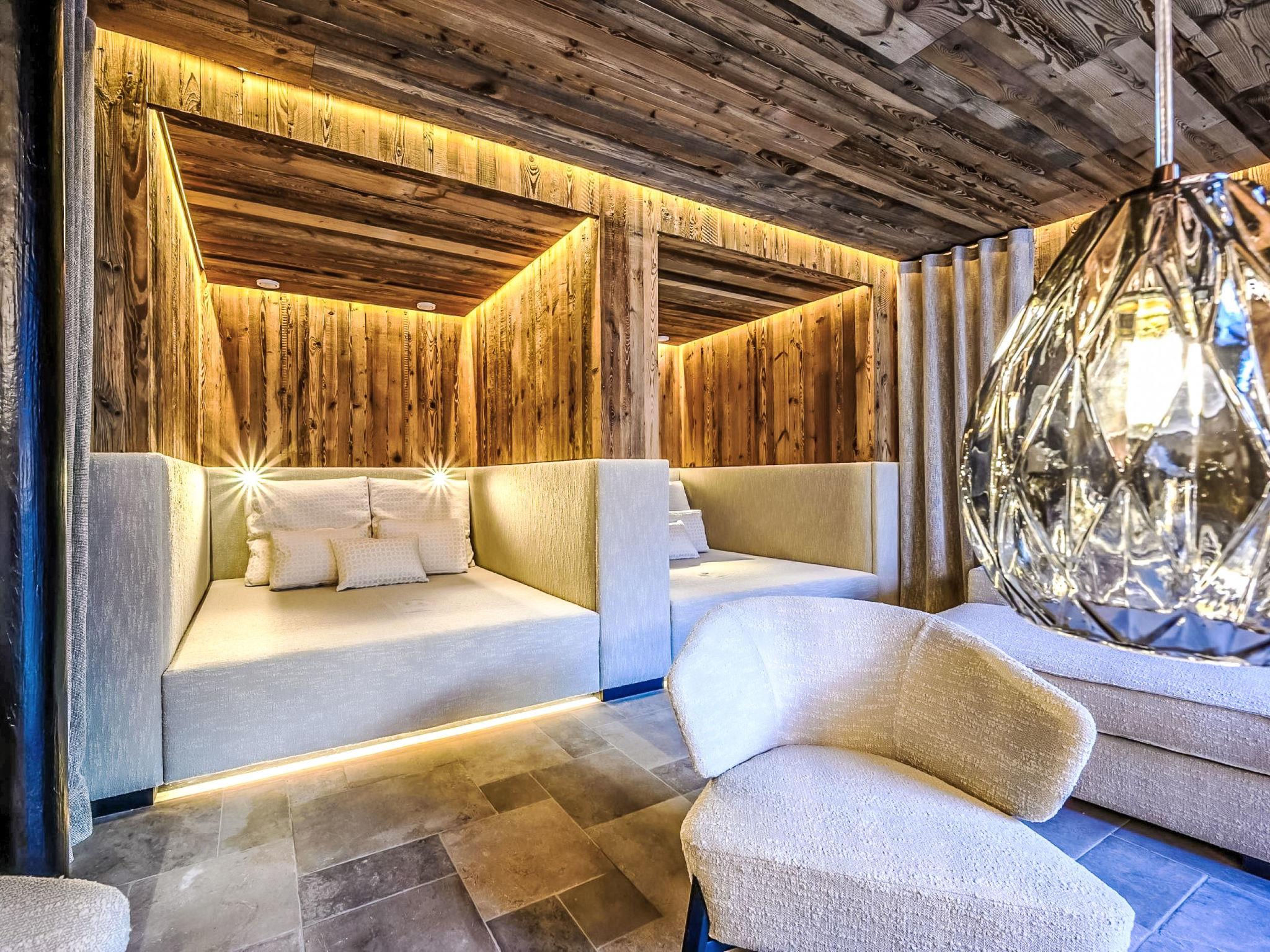 "Jagd - Chalet", 4-room chalet 115 m2 on 2 levels. Very modern and wooden furniture furnishings: entrance hall. 1 double bedroom with shower/WC and satellite TV (flat screen). Large kitchen-/living room (oven, dishwasher, 4 ceramic glass hob hotplates, freezer, electric coffee machine) with dining nook and satellite TV (flat screen). Exit to the terrace. Upper floor: 1 room with 1 bed, 1 double bed and satellite TV (flat screen). Bath/shower/WC, double hand-basin. Large terrace. Balcony furniture, deck chairs. Marvellous panoramic view of the mountains and the resort. Facilities: sauna, hair dryer. Internet (WiFi, free). Please note: maximum 1 pet/ dog allowed. Smoke alarm. The infrared cabin and bath tub are in the bathroom on the 1st floor. Others use this bathroom trough the separate balcony access. When there are less than the maximum number of guests staying at the property, not all of the housing units will be available for use.
