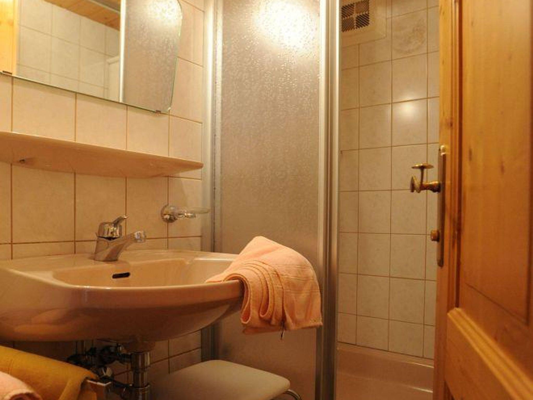 Doppelzimmer mit Dusche u. WC in umliegender Bergwelt in ruhiger Lage. Neu eingerichtet mit SAT-TV und Sitzgruppe.