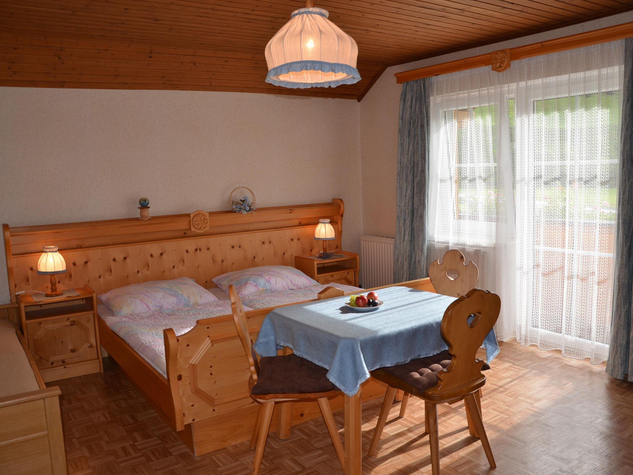 Entspannen Sie sich in unseren freundlich eingerichteten Zimmern. Wir bieten ein gemütliches Appartement mit Küche, zwei Badezimmern, einem Dreibettzimmer und einem Doppelzimmer. Im Fichtenvollholz Familienzimmer für 1-3 Personen mit Balkon mit Blick ins Grüne, genießen Sie einen traumhaften Tag in der Urlaubsregion Schladming-Dachstein mit Freunden und Familie. Unser Doppelzimmer besteht aus Eichemöbeln und ist rustikal und gemütlich eingerichtet. Unsere Zimmer sind mit Fernseher, SAT TV und W-Lan ausgestattet. Die Badezimmer verfügen über Dusche, WC. Selbstverständlich haben Sie auch einen eigenen Auto-Abstellplatz. Der Garten darf gerne mitbenützt werden.