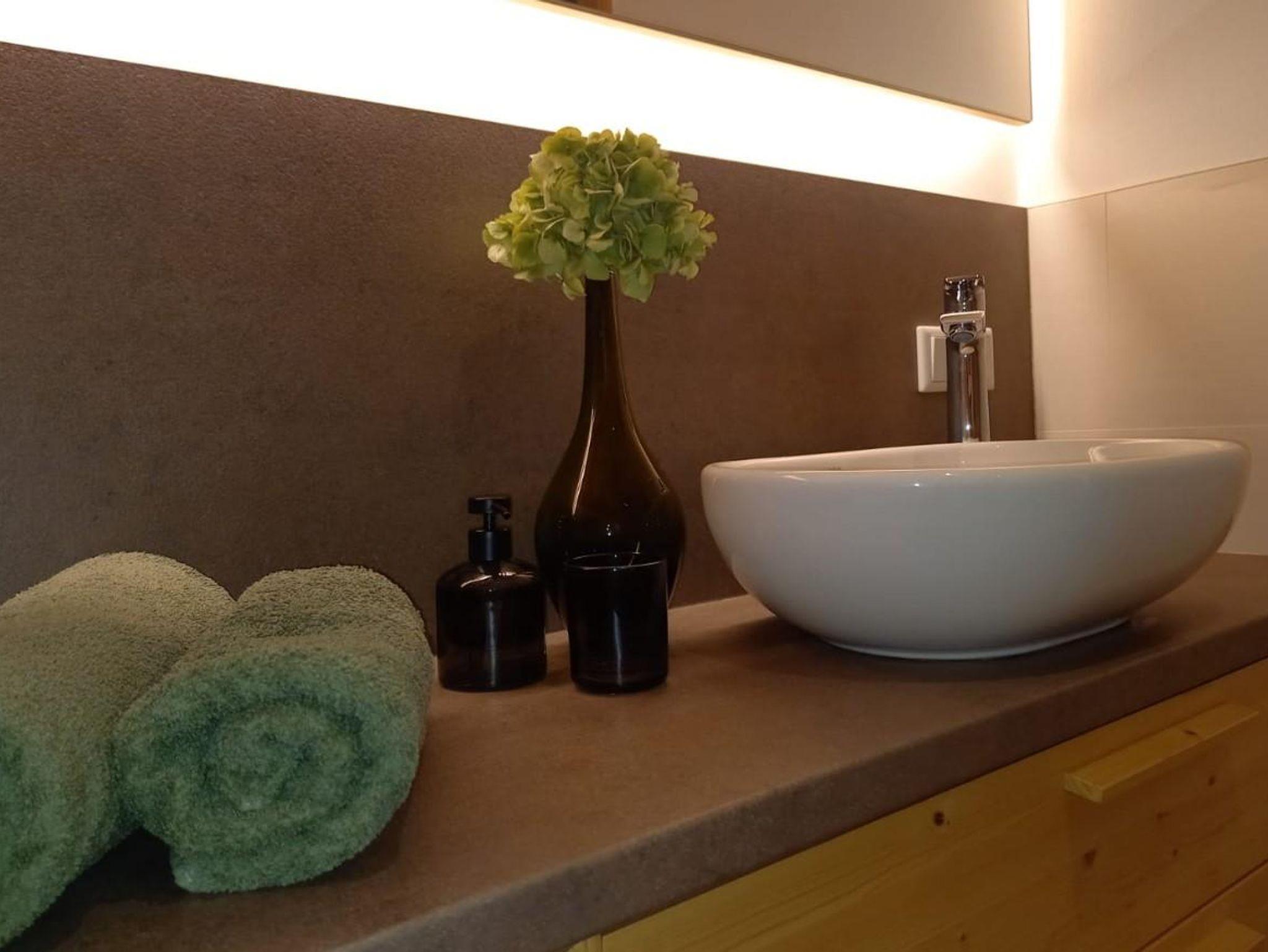 Unser Apartment verfügt über 2 Schlafzimmer.Jedes Schlafzimmer hat einen eigenen Balkon mit Bergblick und einen Flachbild-TV. Um die Ruhe am Balkon genießen zu können, ist auch ein kleiner Tisch mit Sessel vorhanden. Weiteres gibt es einen großen Wohn-Eßbereich. Im Wohnbereich befindet sich auch noch ein großer Flachbild-TV. Die Küche ist voll ausgestattet. Auch mit einem Kühlschrank mit Gefrierfach, einem Backofen und einer Mikrowelle. Natürlich gibt es auch ein Badezimmer mit Doppelwaschbecken, einer Dusche und einer Waschmaschine. Das WC ist ein eigener Bereich . Handtücher und Bettwäsche werden im Apartment gestellt.