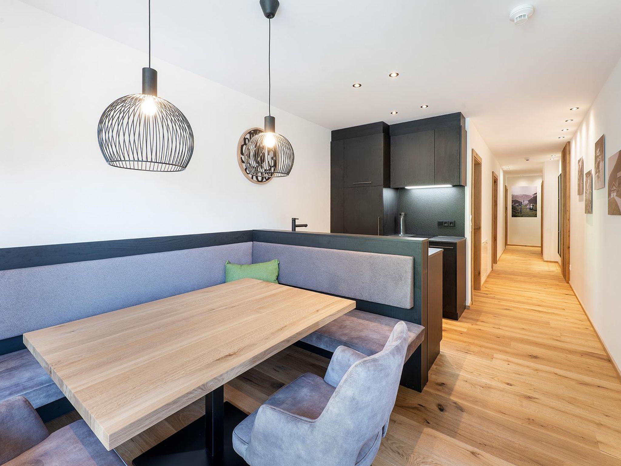 Der nordseitige Balkon ist ein perfekter Ort, um den Urlaubstag zu beginnen oder ausklingen zu lassen. Lehnen Sie sich zurück, atmen Sie die frische Bergluft ein und genießen Sie den Panoramablick auf die Bergwelt.